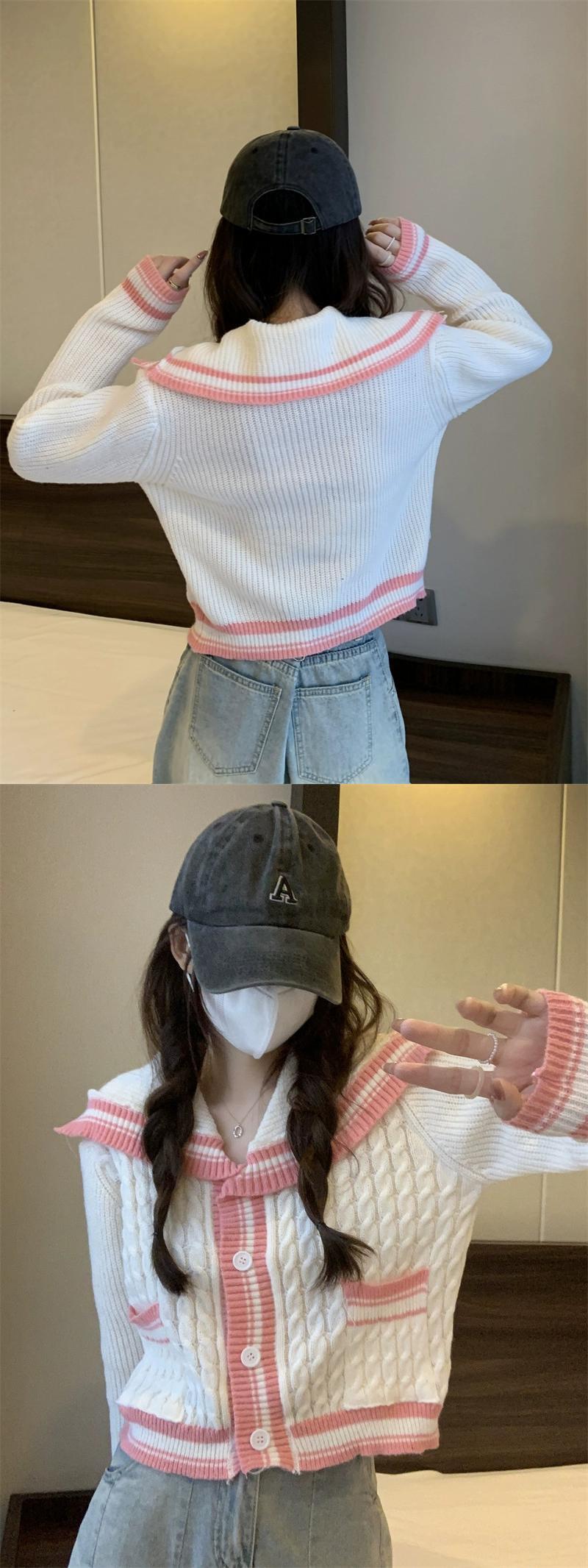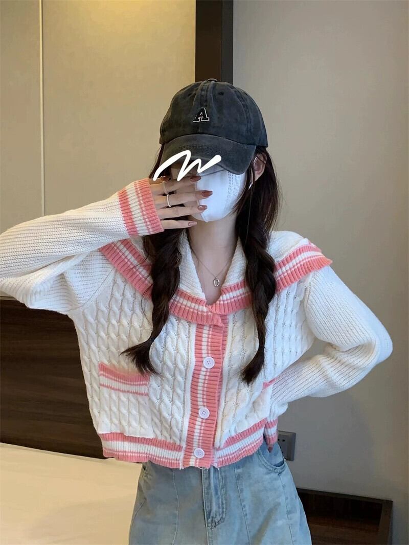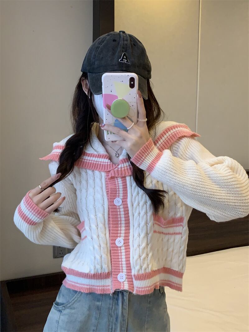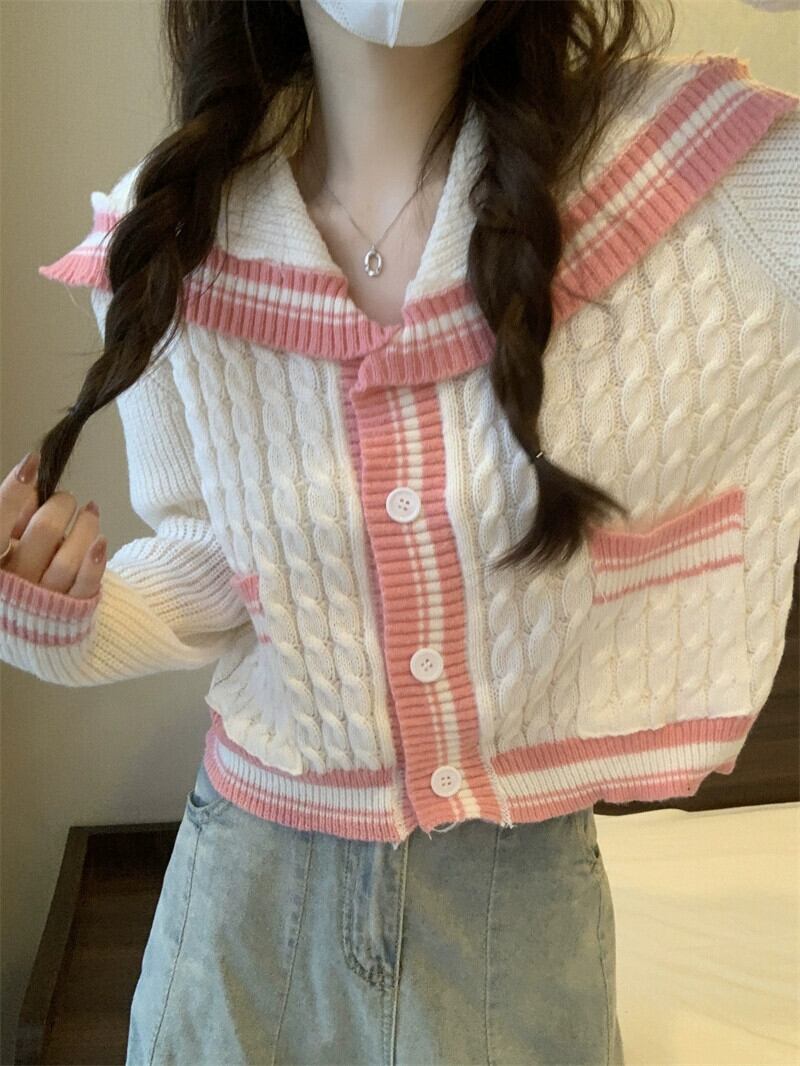 ネイビーカラーセーターカーディガンコート女性秋と冬 2023 新しいカレッジスタイルアウタールーズショートツイストニットウェア オータム 秋物 ウィンター 冬物 7460010872490746 | framboise21