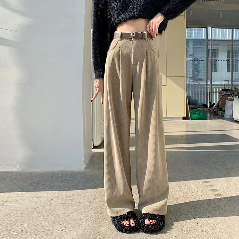 シェニールワイドレッグパンツレディース、秋と冬のハイウエストドレープスーツパンツ、ルーズストレートカジュアルフロアモッププラスベルベット肥厚パンツ オータム 秋物 ウィンター 冬物 7460086720656058 | framboise21