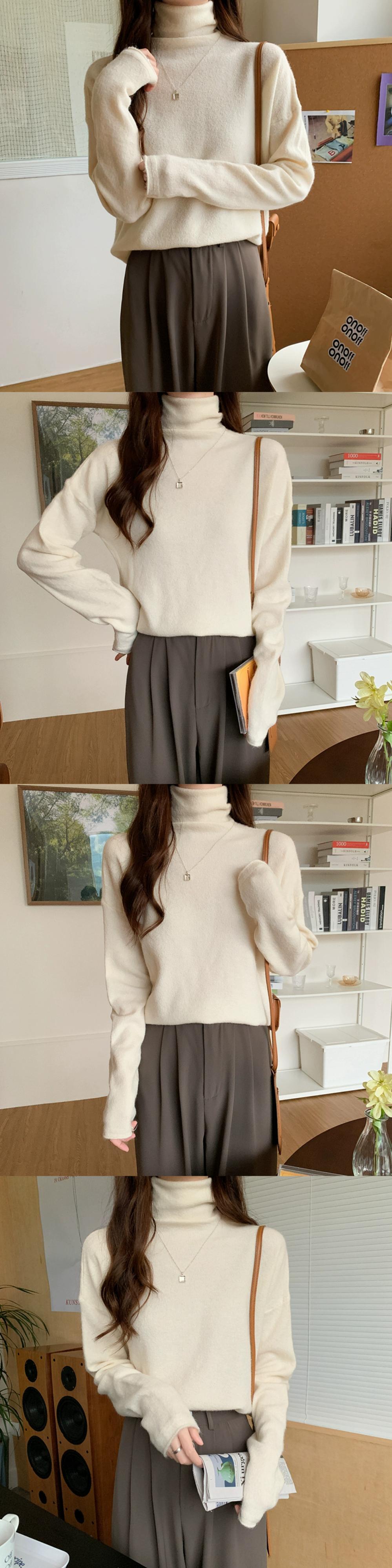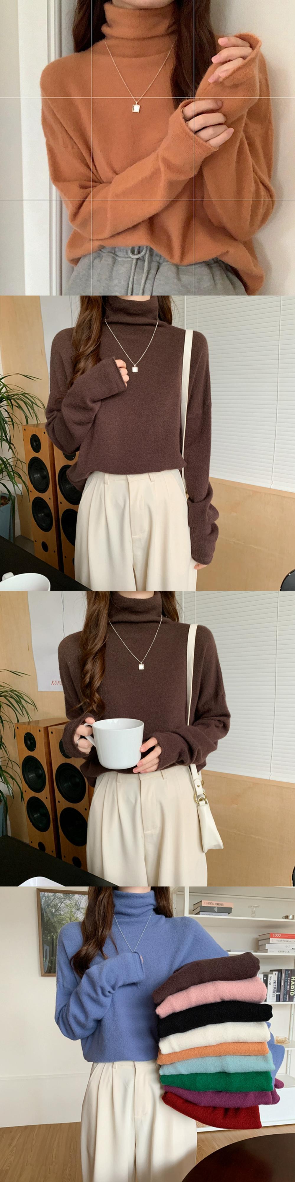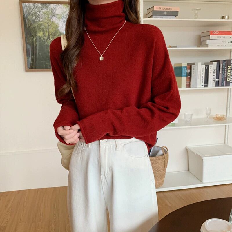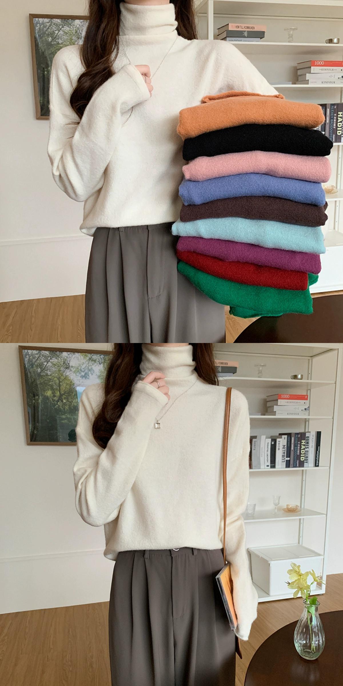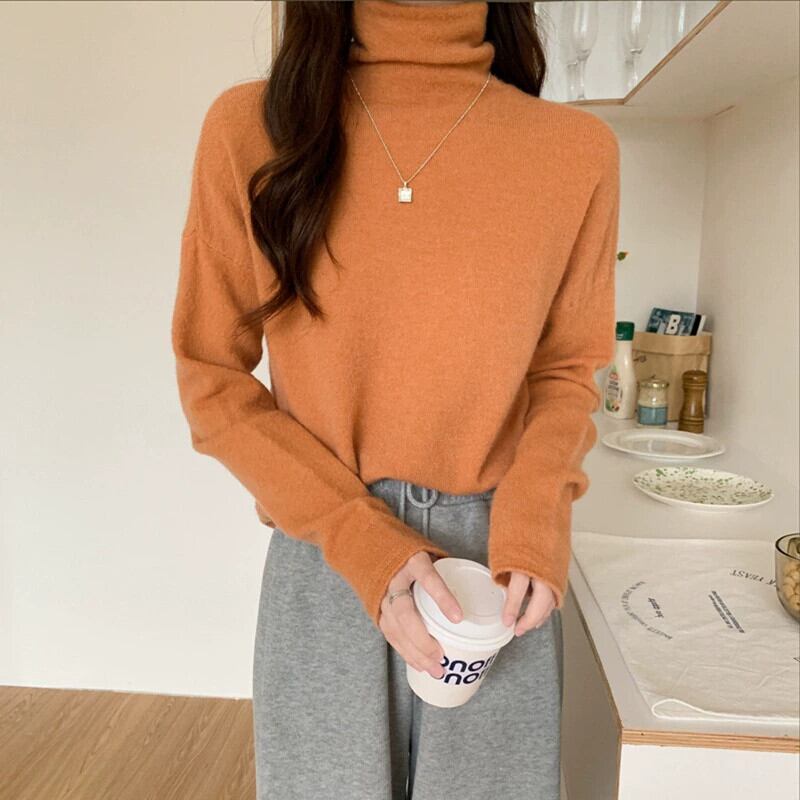 秋冬のパイルカラー起毛ボトムシャツレディース、ファッショナブルでエインスタイルのインナーレイヤー、ゆったり痩身ハイネック長袖ニットセーター ロング オータム 秋物 ウィンター 冬物 7460050492202204 | framboise21