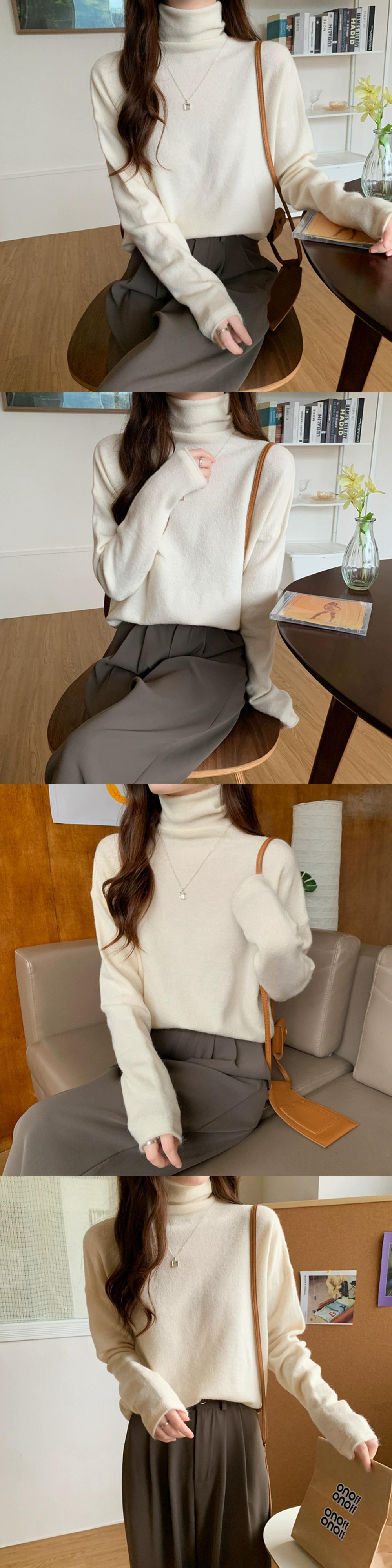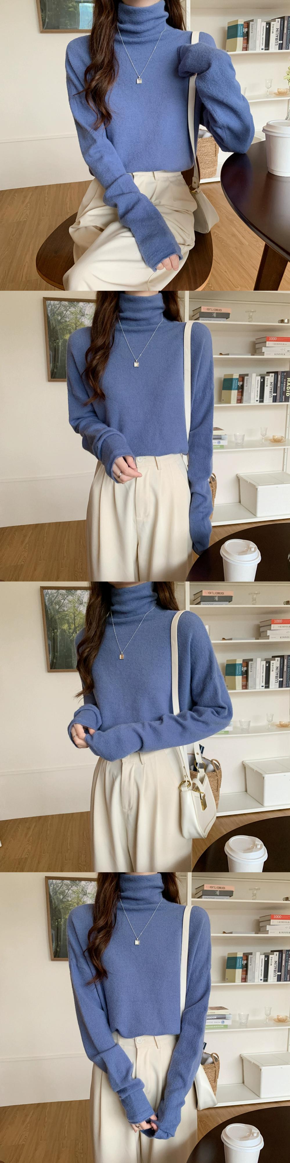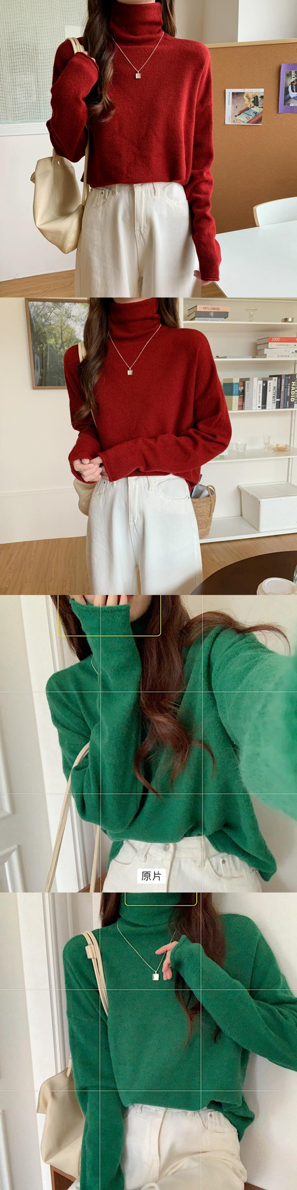 秋冬のパイルカラー起毛ボトムシャツレディース、ファッショナブルでエインスタイルのインナーレイヤー、ゆったり痩身ハイネック長袖ニットセーター ロング オータム 秋物 ウィンター 冬物 7460050492202204 | framboise21
