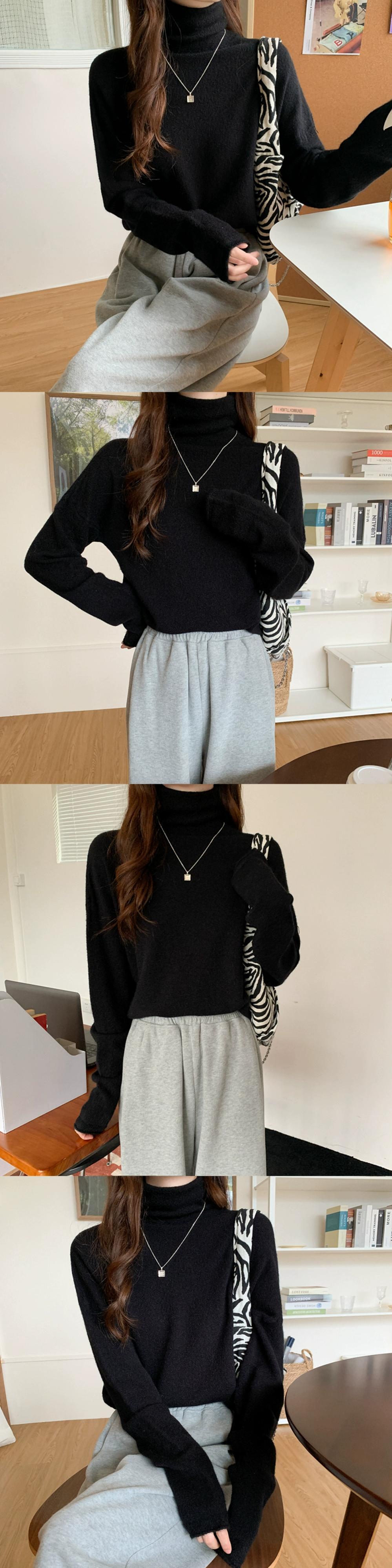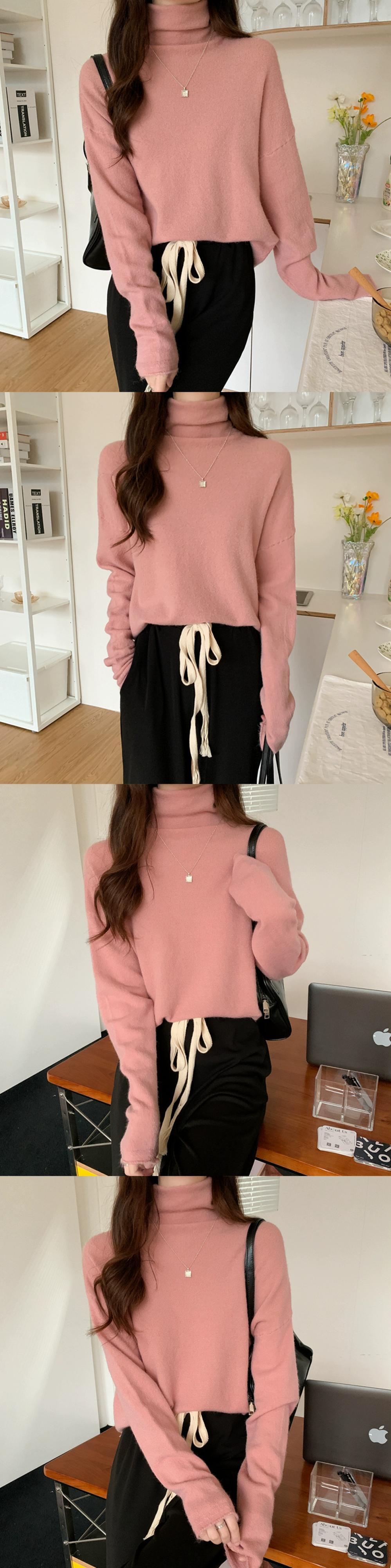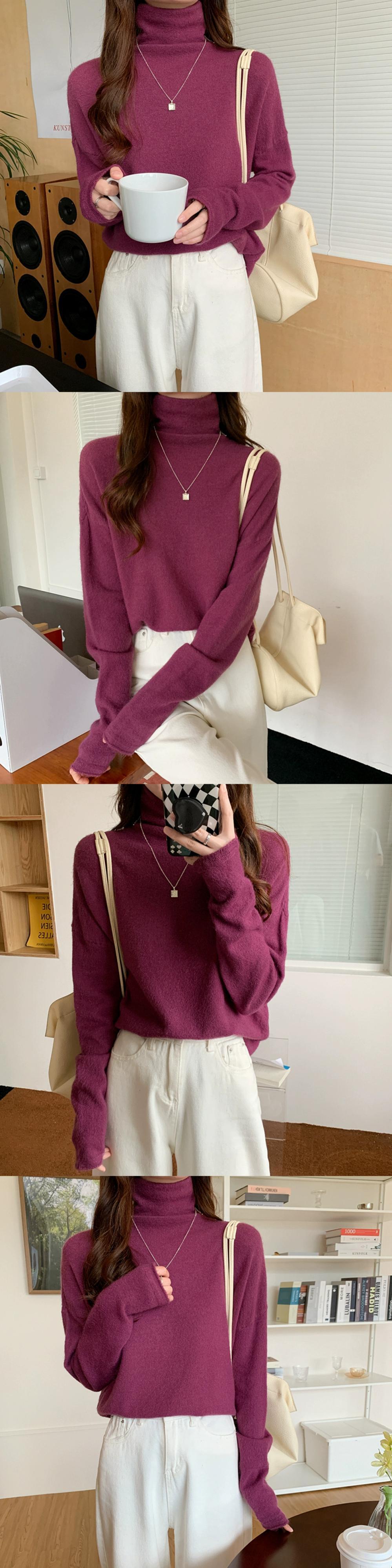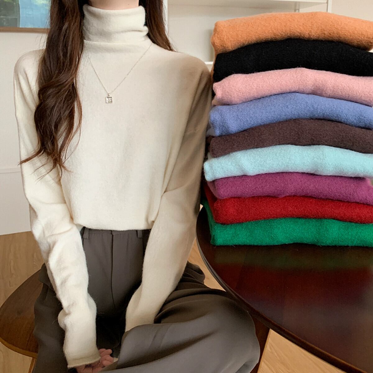 秋冬のパイルカラー起毛ボトムシャツレディース、ファッショナブルでエインスタイルのインナーレイヤー、ゆったり痩身ハイネック長袖ニットセーター ロング オータム 秋物 ウィンター 冬物 7460050492202204 | framboise21