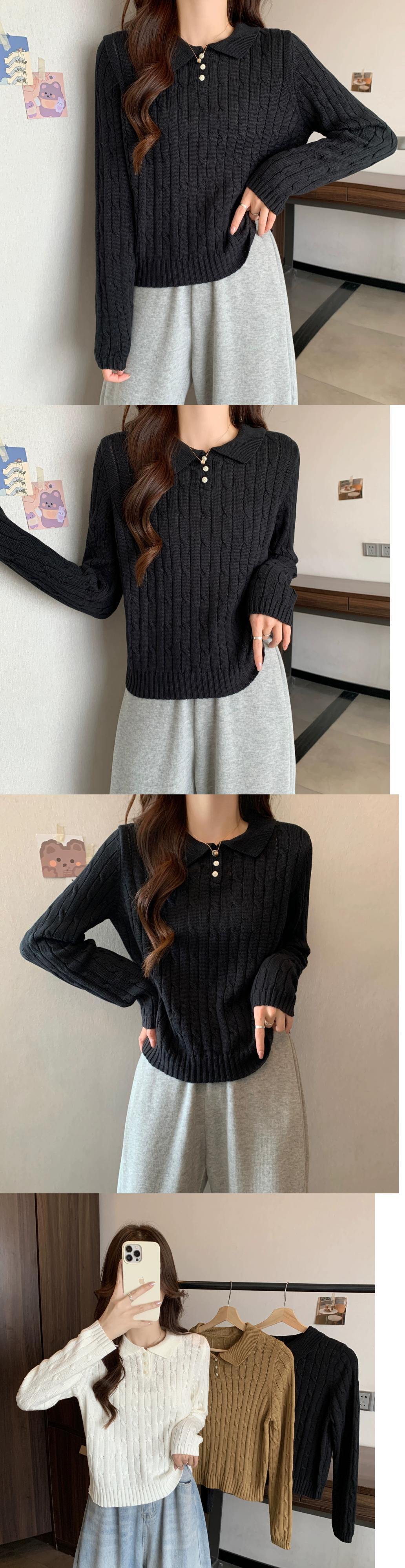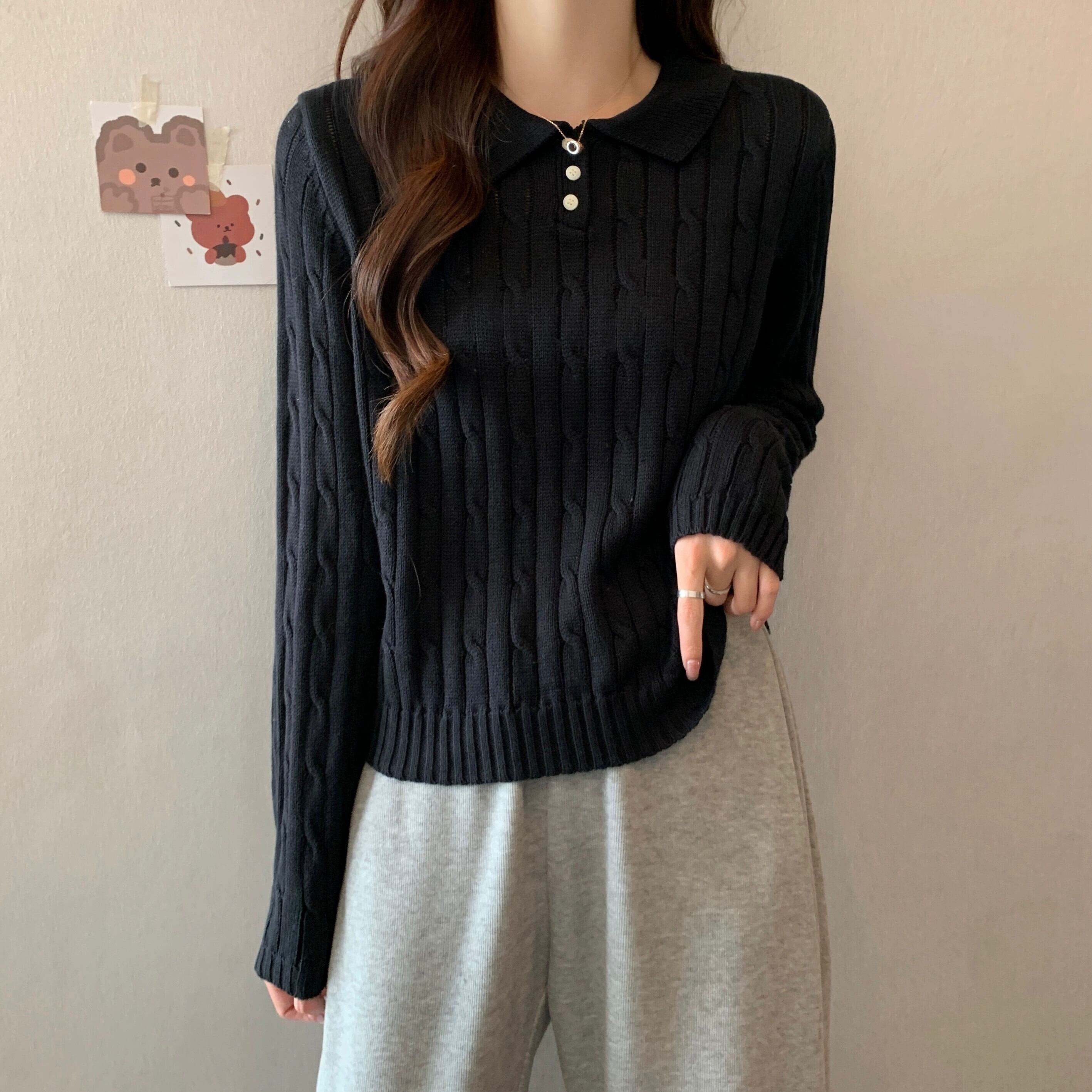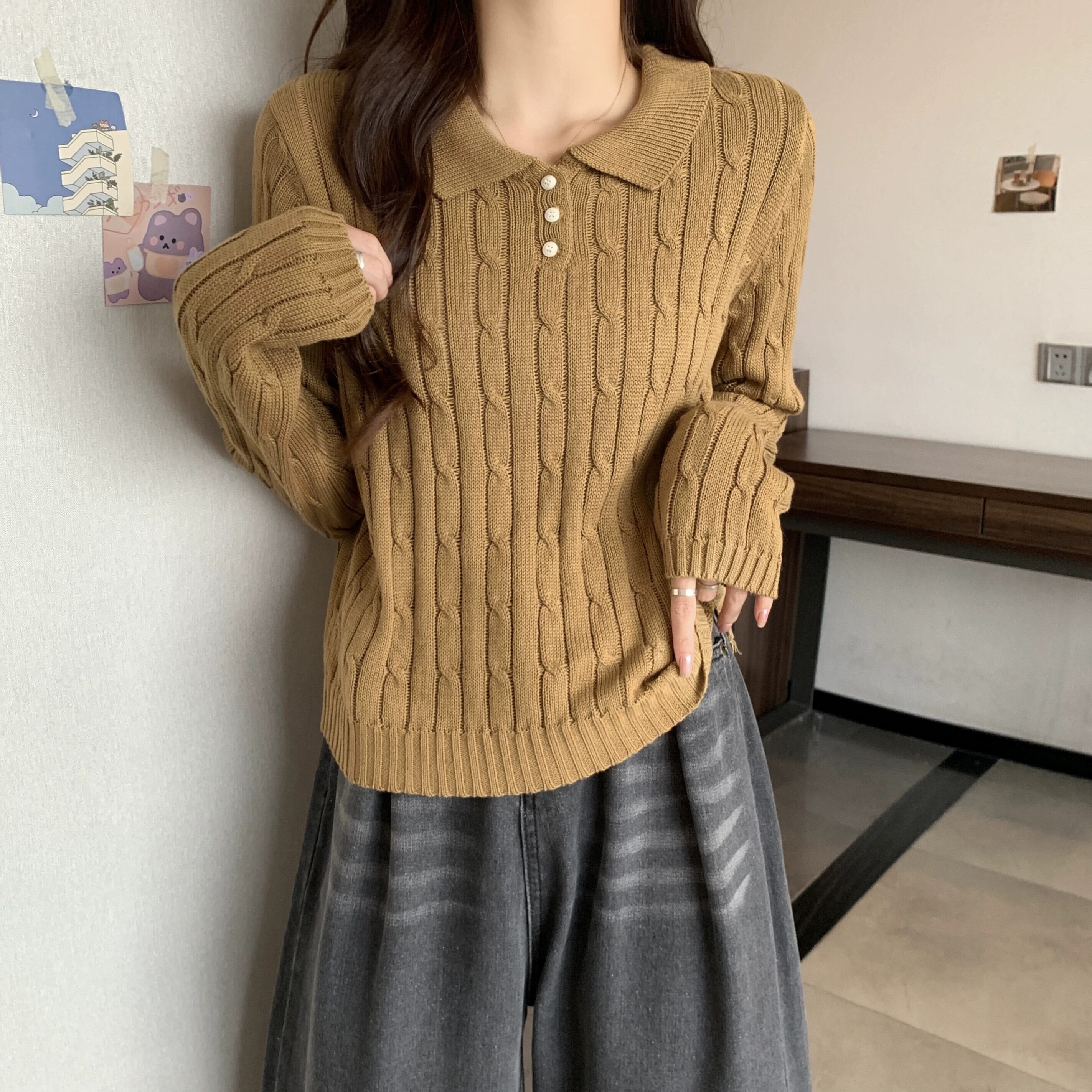 秋冬のソフトワックスプルオーバーツイストセーターレディース、レトロなデザイン、ゆったりとしたアウターウェア、厚みのあるポロカラー長袖セーター ロング オータム 秋物 ウィンター 冬物 7460061630964182 | framboise21