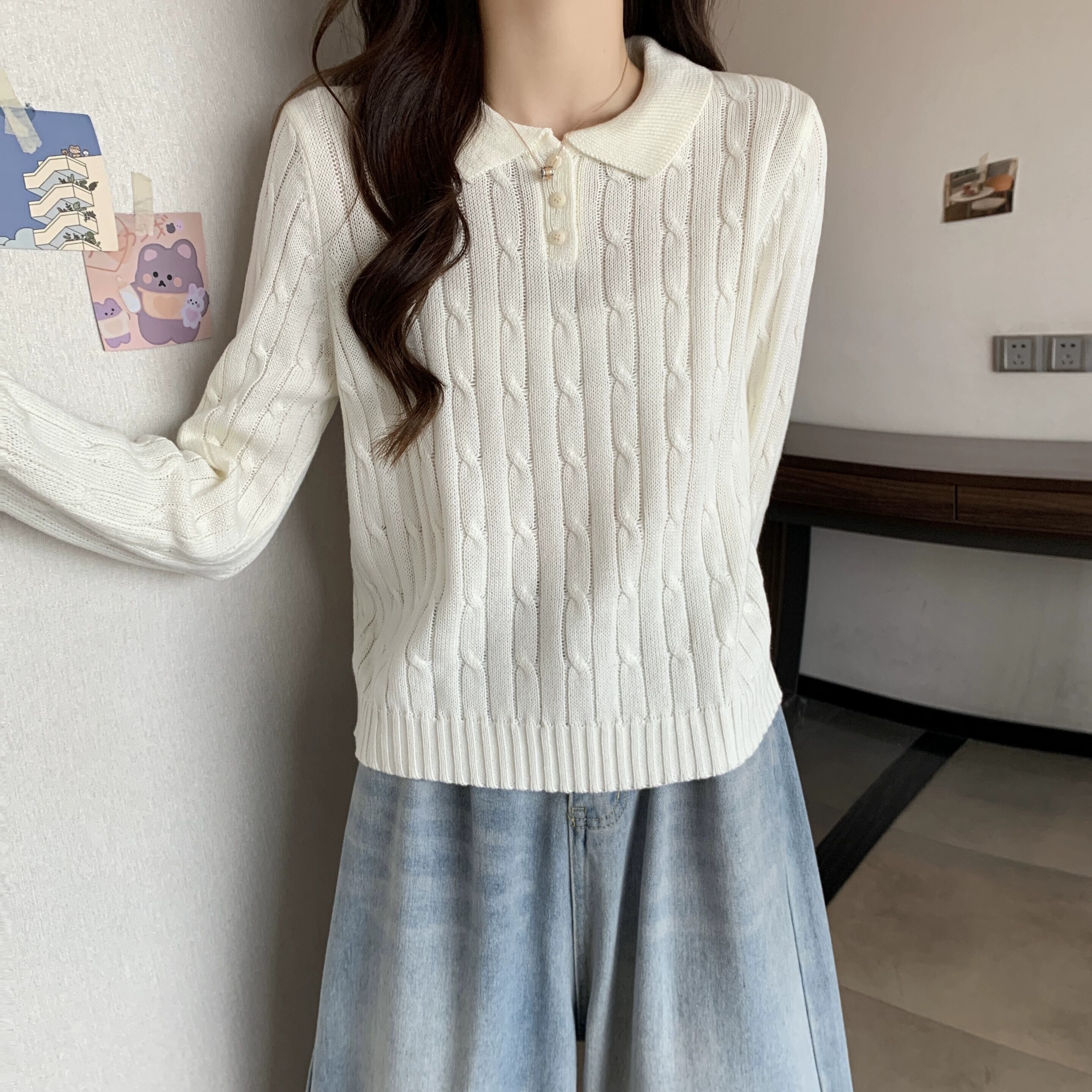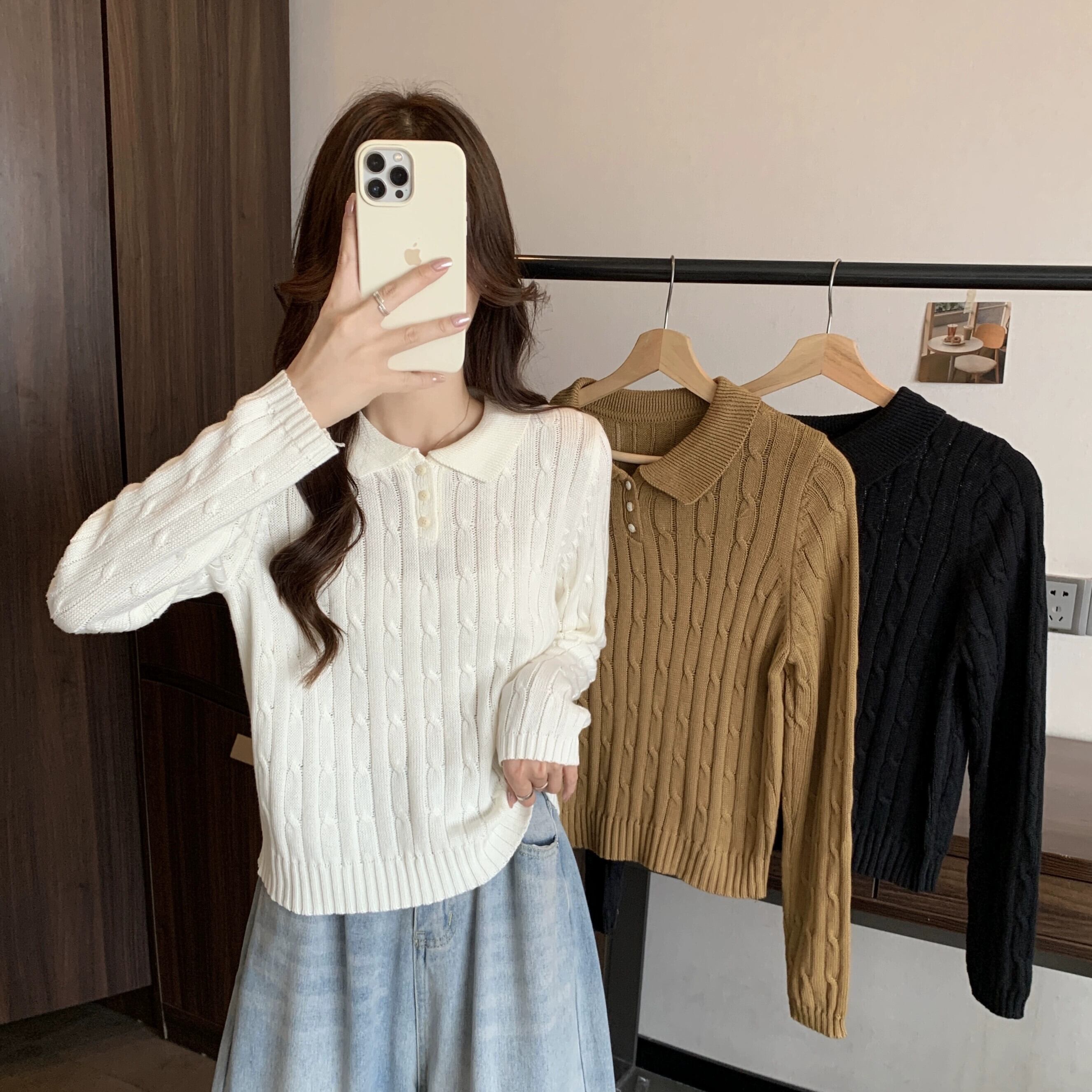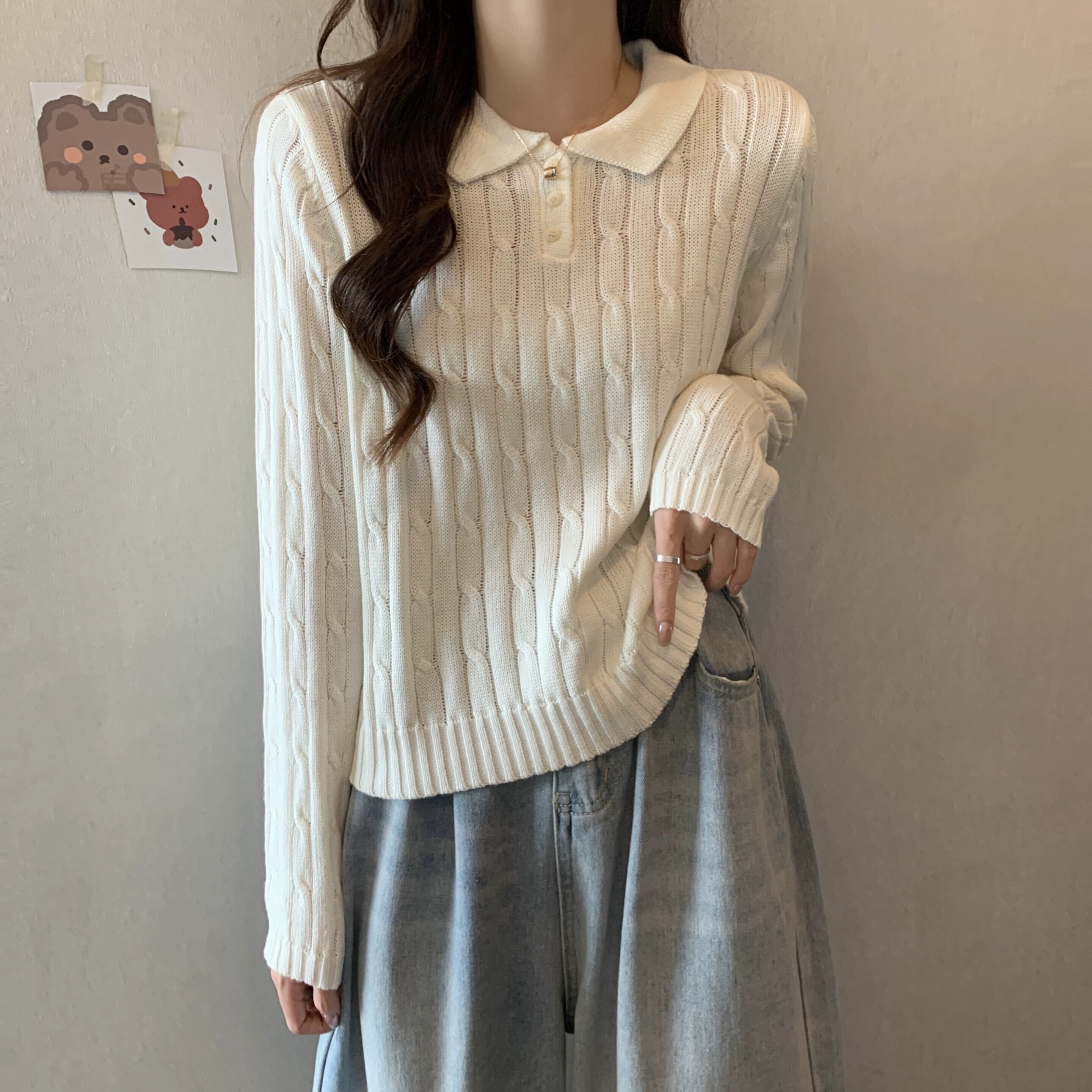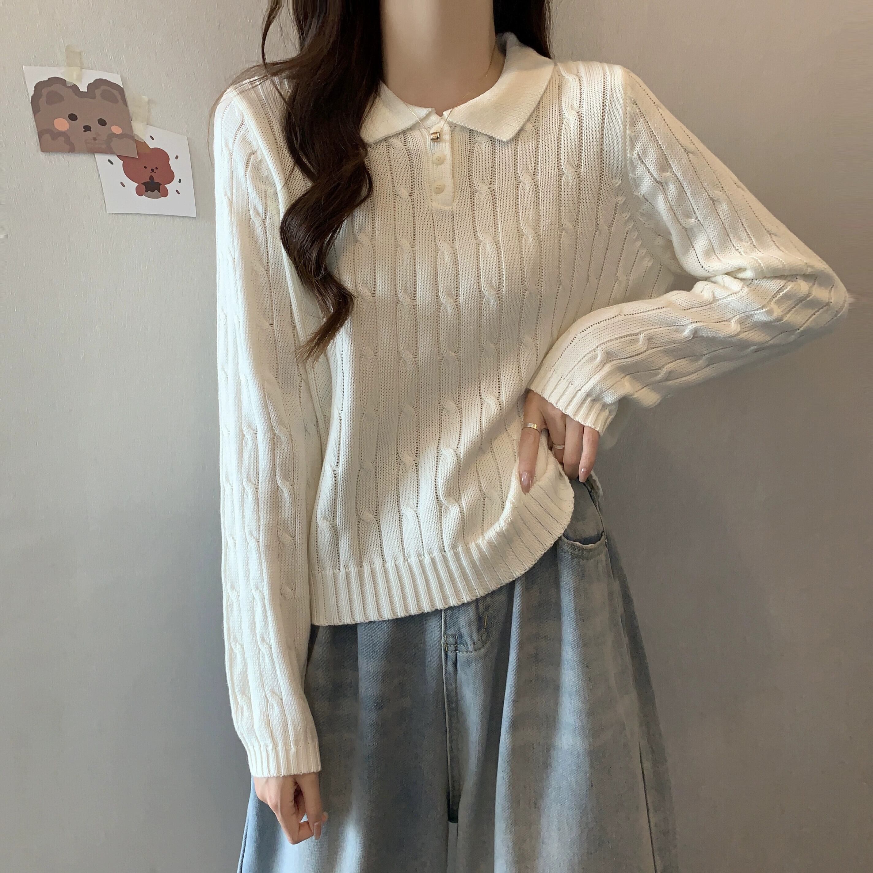 秋冬のソフトワックスプルオーバーツイストセーターレディース、レトロなデザイン、ゆったりとしたアウターウェア、厚みのあるポロカラー長袖セーター ロング オータム 秋物 ウィンター 冬物 7460061630964182 | framboise21