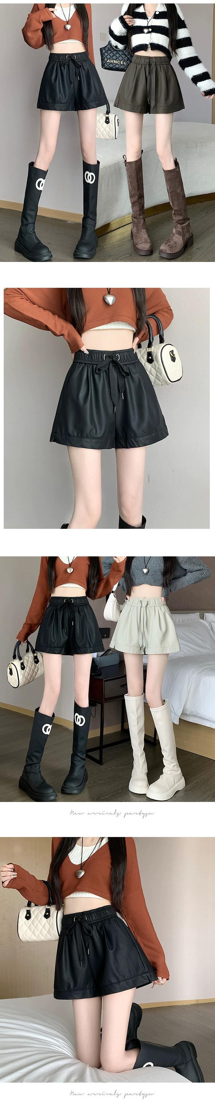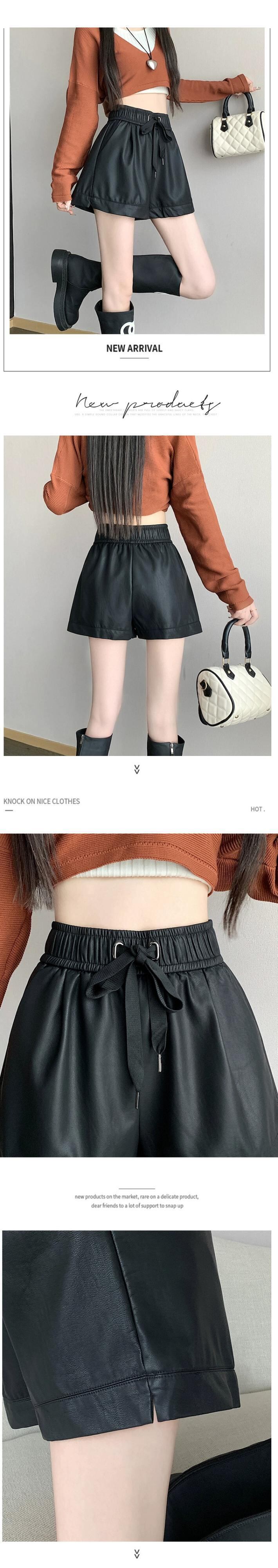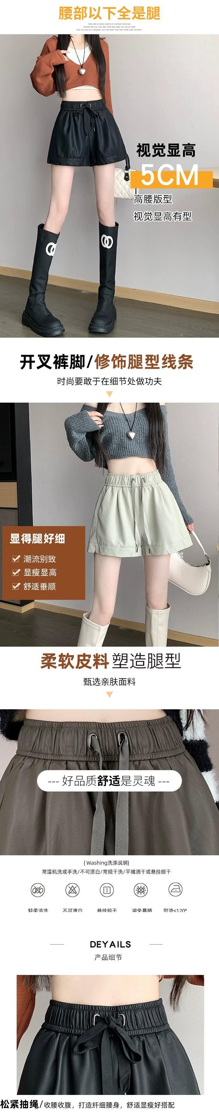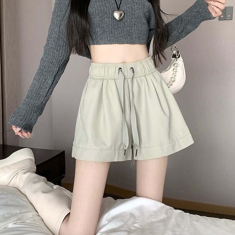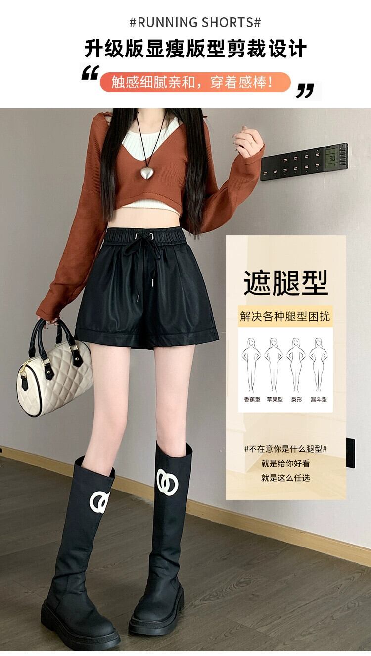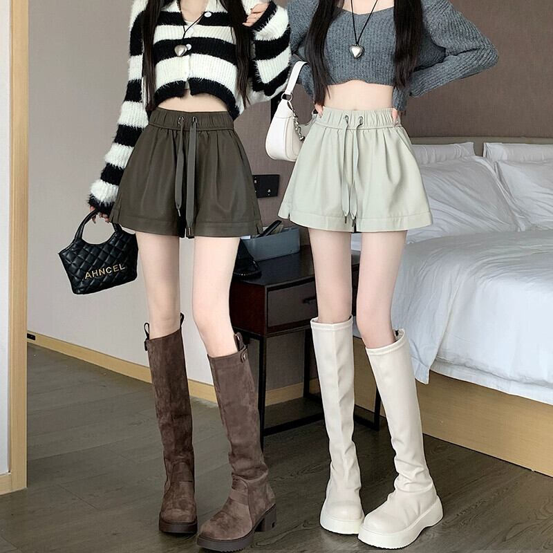ブラウン pu レザーショートパンツ女性 2023 新しい秋冬スタイルスーパーソフトワイドレッグレザーパンツアウターウェア痩身ハイウエスト a ラインブーツパンツ オータム 秋物 ウィンター 冬物 ショーツ ブルマー Aライン 746008113684926 | framboise21