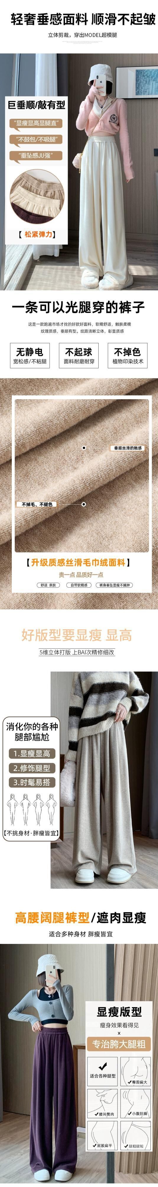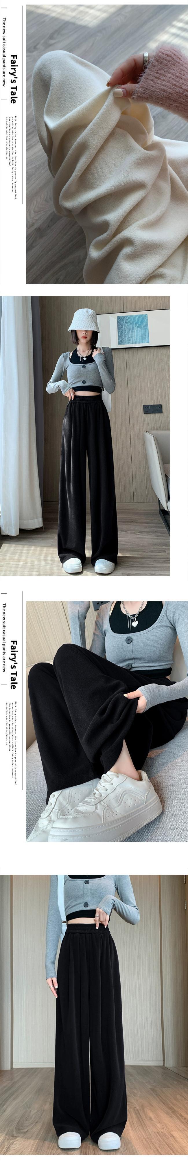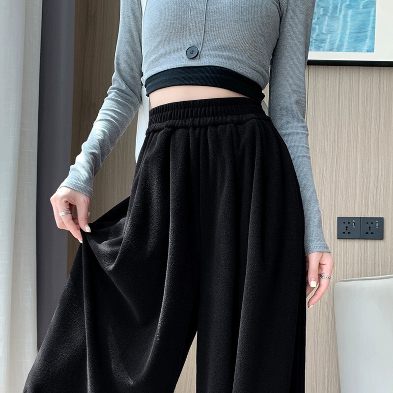 黒カシミヤタオルワイドレッグパンツ女性の秋と冬の怠惰なスタイルウエストドレープパンツルーズストレートレッグフロアモップパンツ ブラック オータム 秋物 ウィンター 冬物 ワイドパンツ 7460028932633699 | framboise21