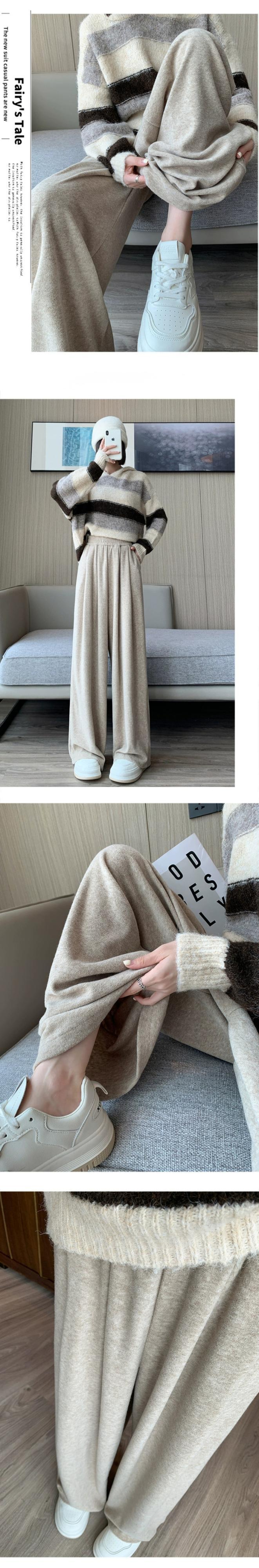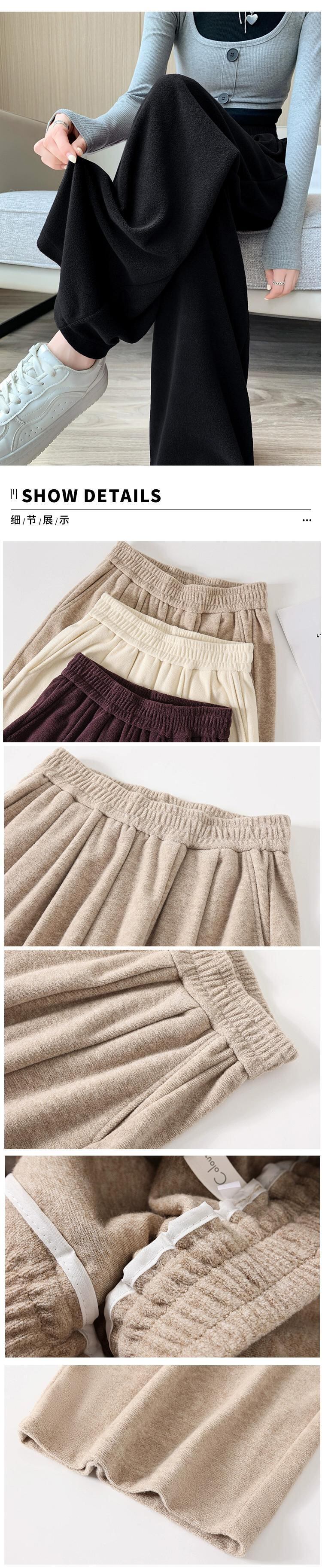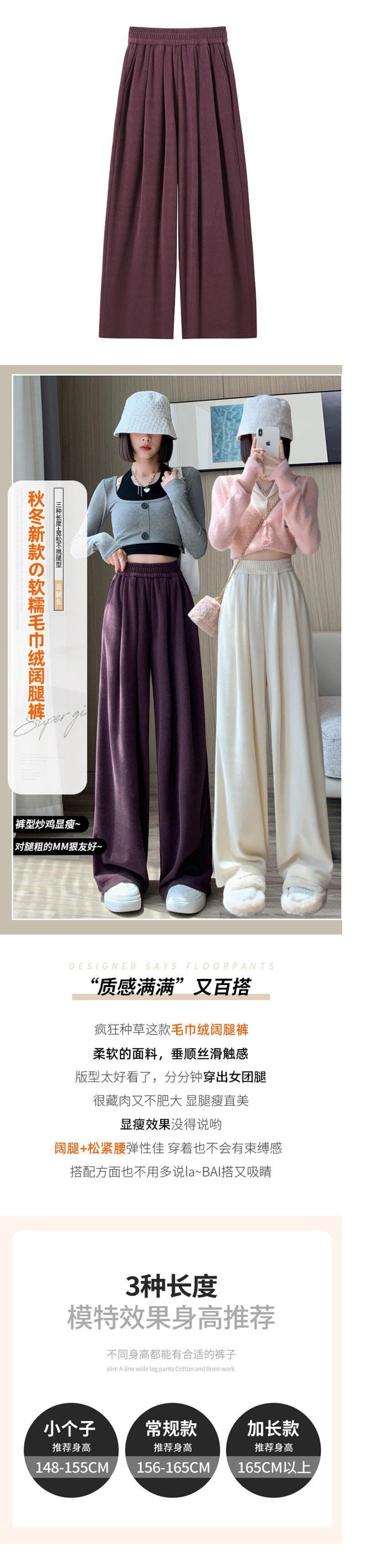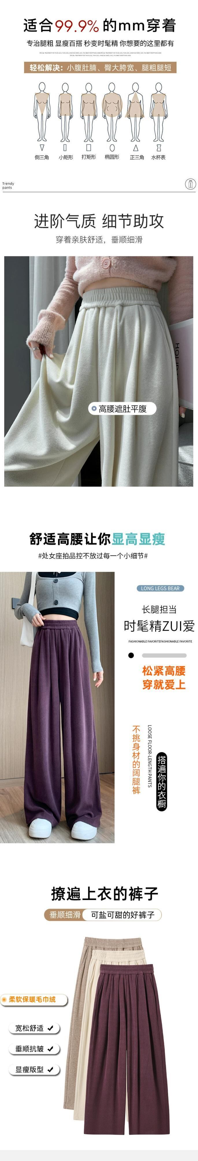 黒カシミヤタオルワイドレッグパンツ女性の秋と冬の怠惰なスタイルウエストドレープパンツルーズストレートレッグフロアモップパンツ ブラック オータム 秋物 ウィンター 冬物 ワイドパンツ 7460028932633699 | framboise21