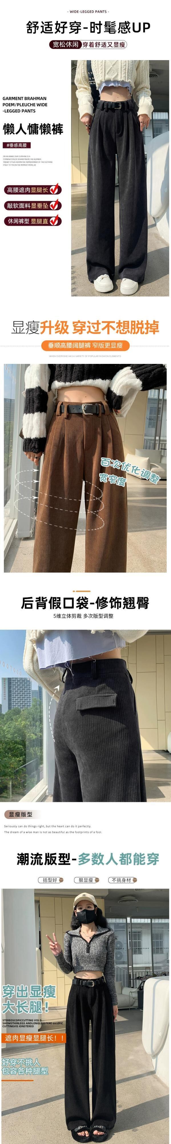 ナローシェニールワイドレッグパンツレディース、秋冬ストレートスーツパンツ、ハイエンドドレープカジュアルプラスベルベットコーデュロイパンツ オータム 秋物 ウィンター 冬物 7460045222877412 | framboise21