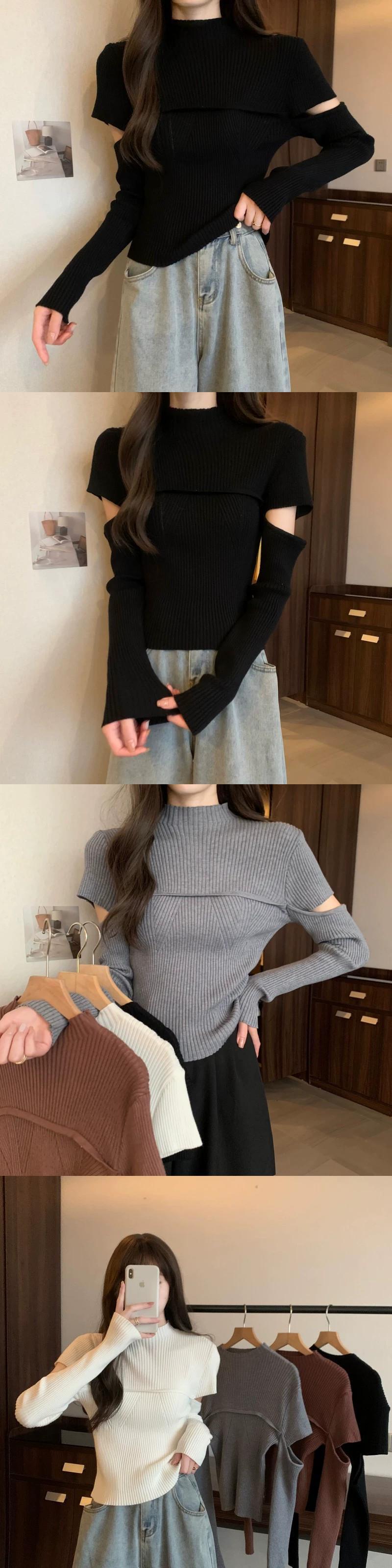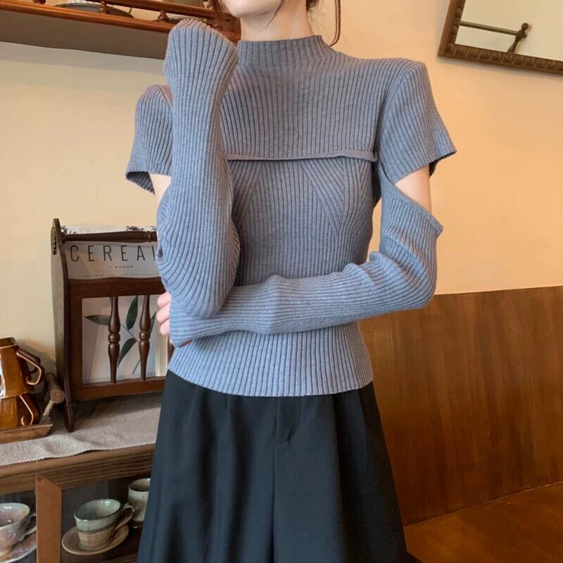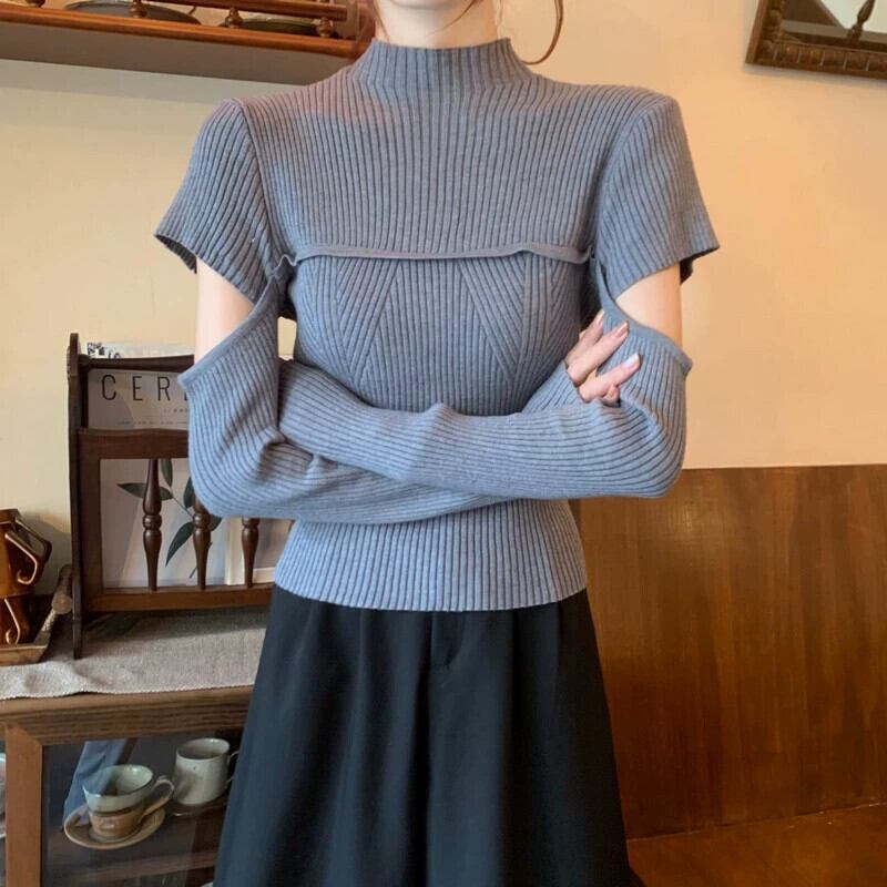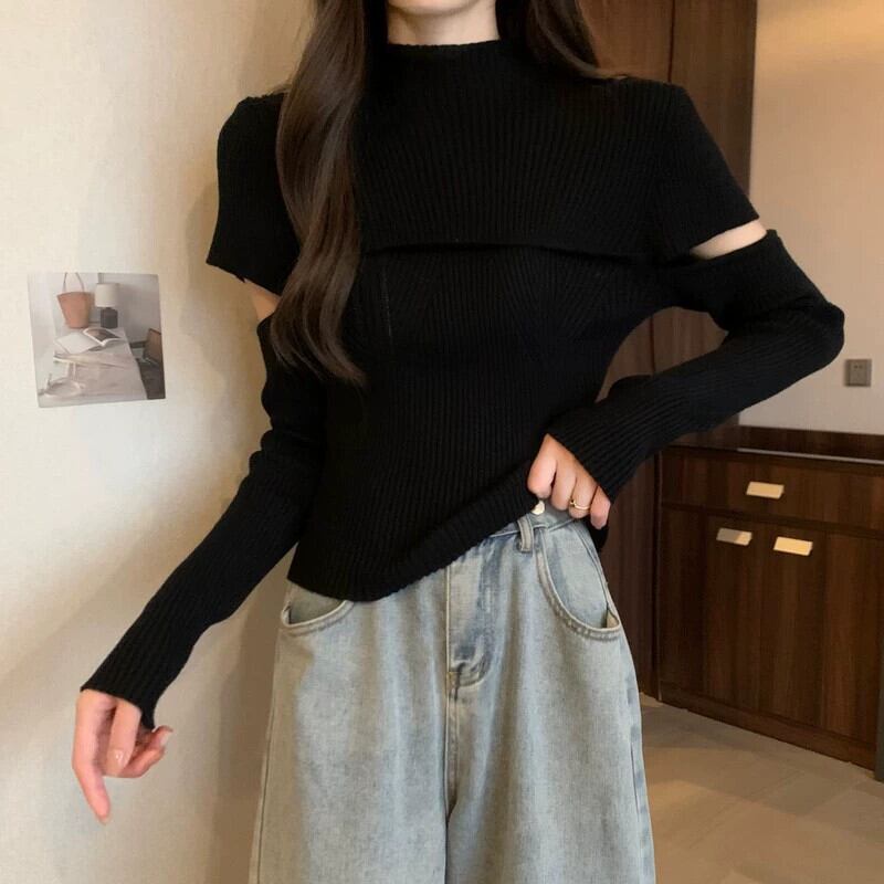 秋と冬のハーフタートルネックボトムシャツの女性、ファッショナブルでファッショナブル、スリムでスリム、中空の長袖ニットセーター付き ロング オータム 秋物 ウィンター 冬物 746003638842386 | framboise21