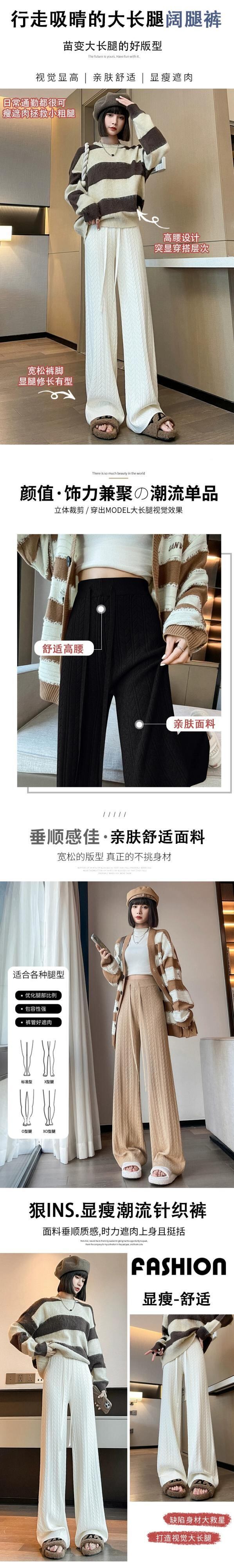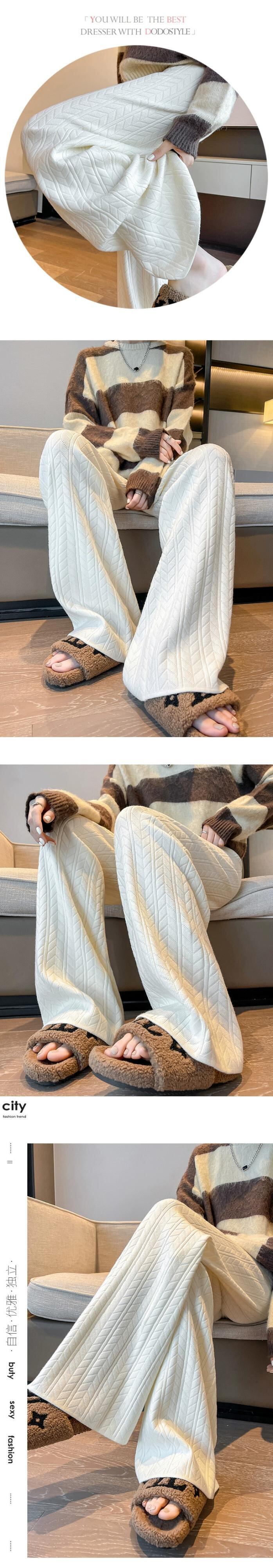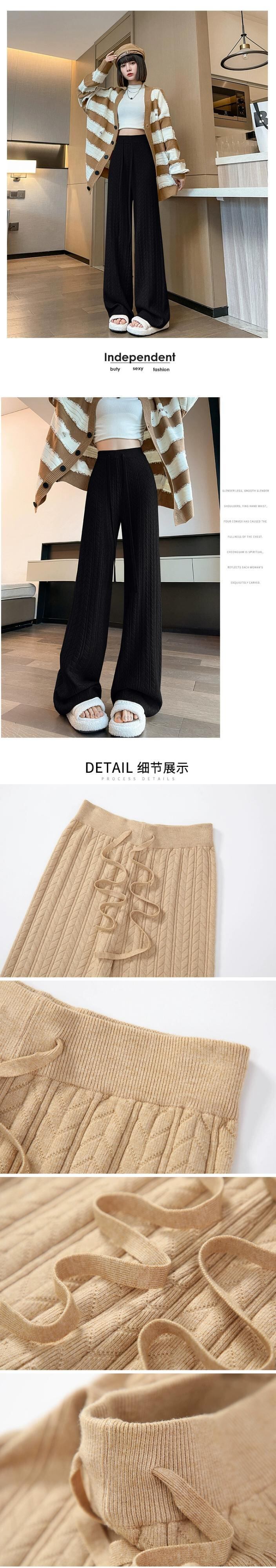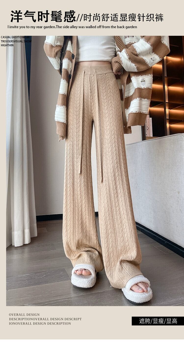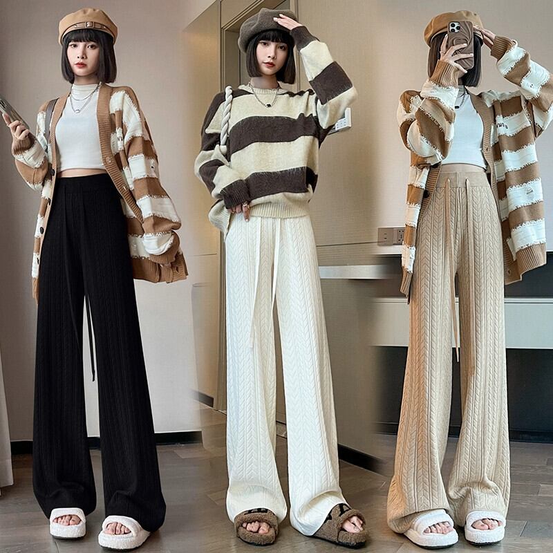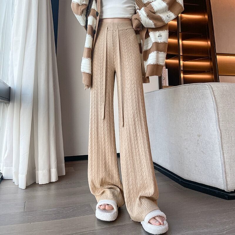 怠惰なスタイルのニットワイドレッグパンツの女性の秋と冬のハイウエストソフトもち麦の耳パンツルーズカジュアルストレートレッグフロアモップパンツ ウィンター 冬物 7460020656894045 | framboise21