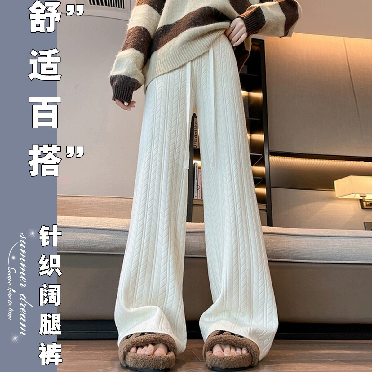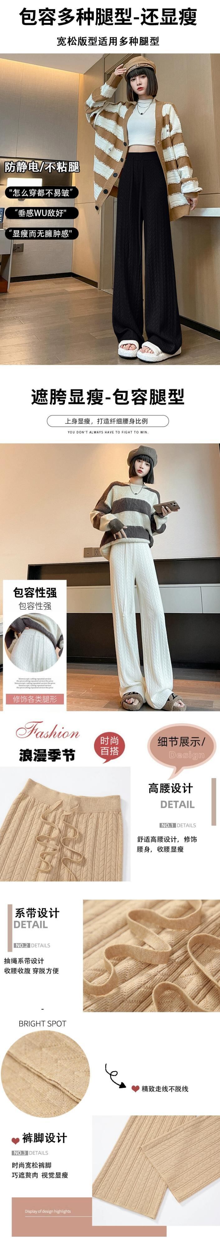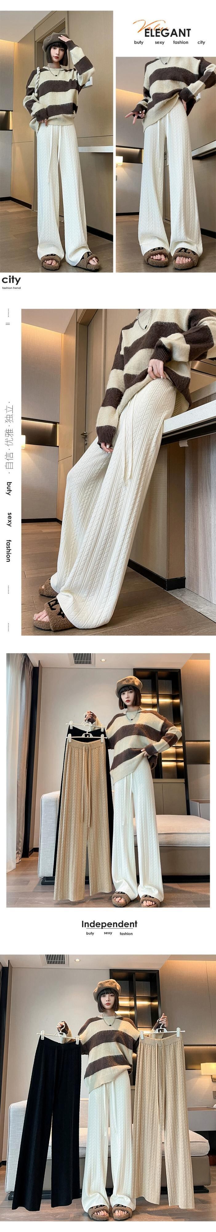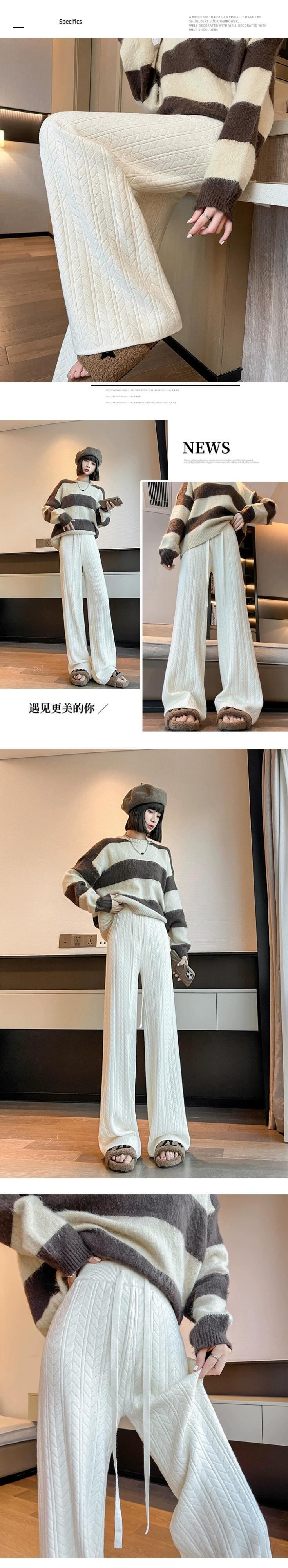 怠惰なスタイルのニットワイドレッグパンツの女性の秋と冬のハイウエストソフトもち麦の耳パンツルーズカジュアルストレートレッグフロアモップパンツ ウィンター 冬物 7460020656894045 | framboise21