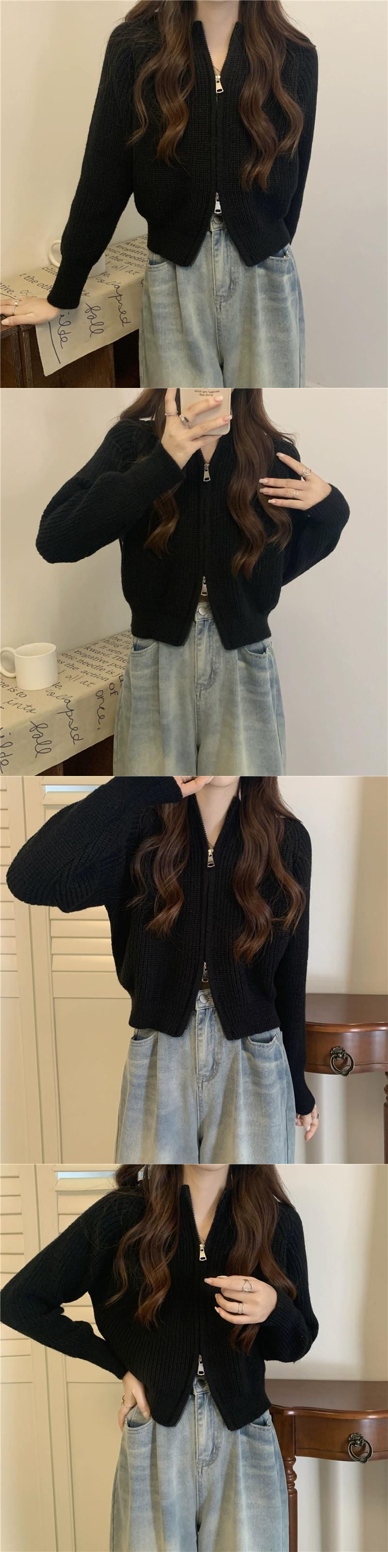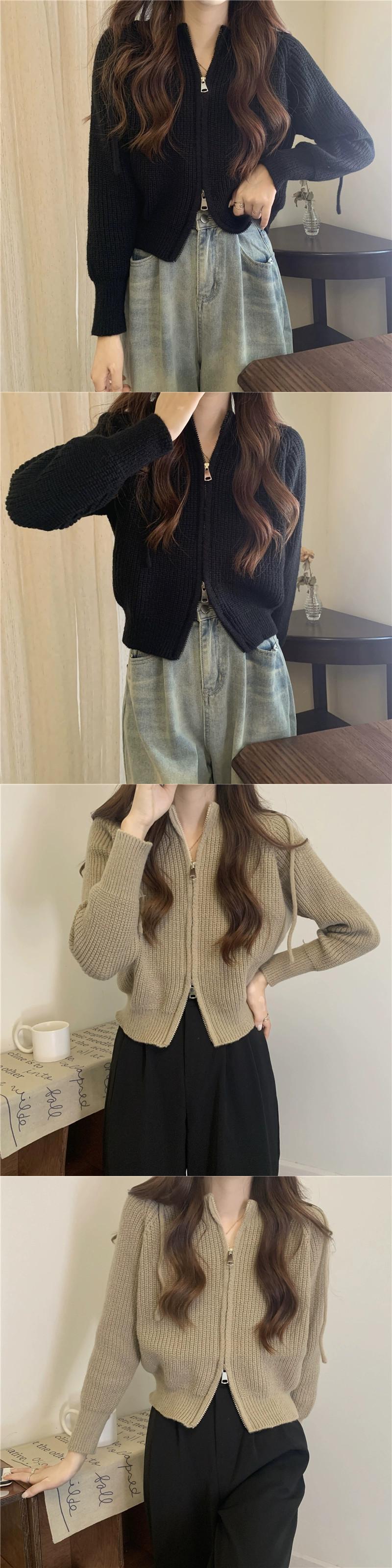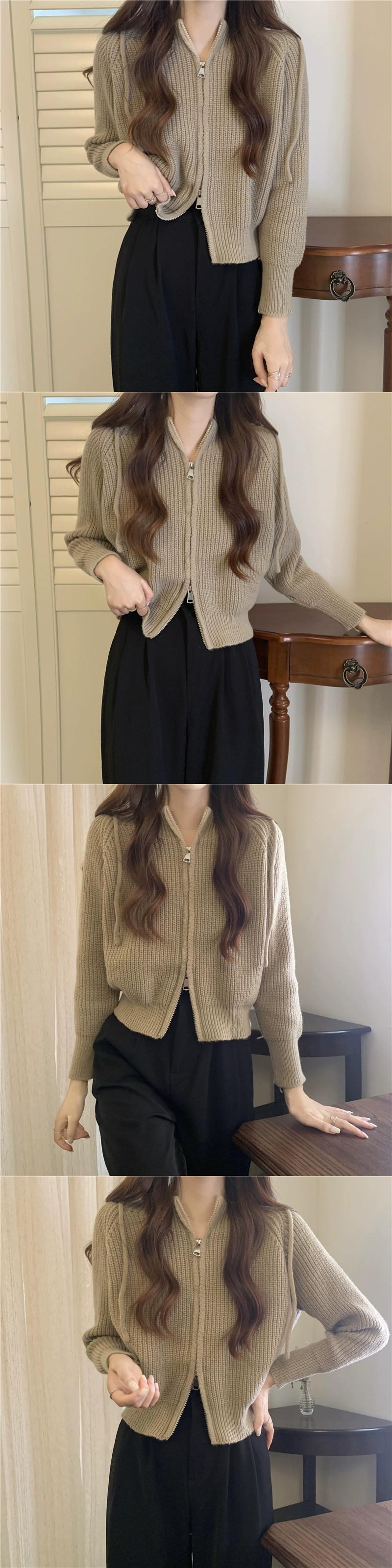 秋と冬のダブルジッパーフード付きセータージャケットの女性、ルーズ、スリム、怠惰なスタイル、ショート長袖ニットカーディガン ロング オータム 秋物 ウィンター 冬物 7460028711377143 | framboise21
