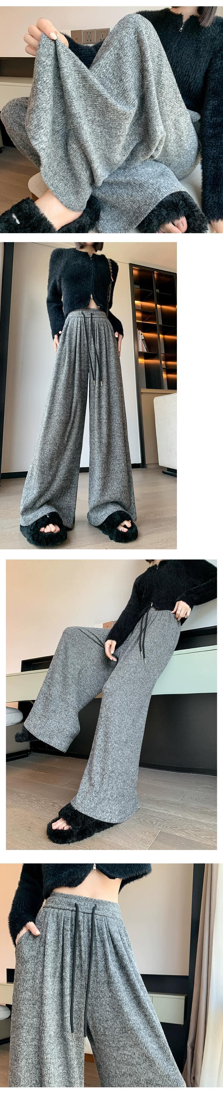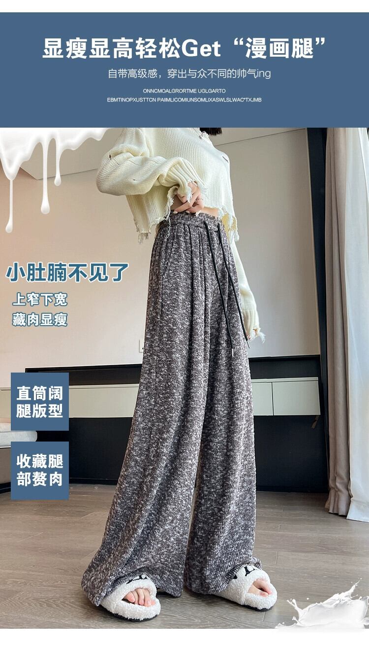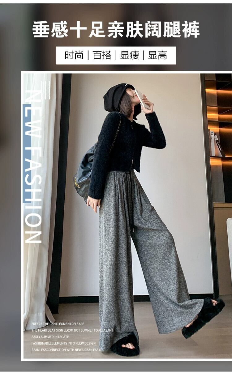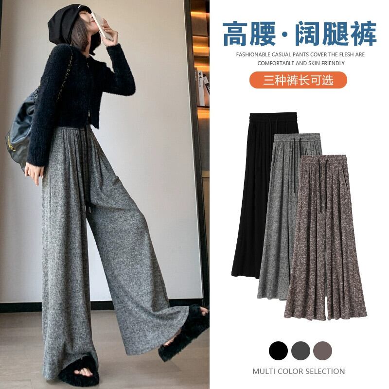 秋と冬の厚みのあるニットワイドレッグパンツの女性、ハイウエストのドレープパンツ、ルーズストレートカジュアルフロアレングスのモップナローバージョンもち米パンツ オータム 秋物 ウィンター 冬物 7460053077275326 | framboise21