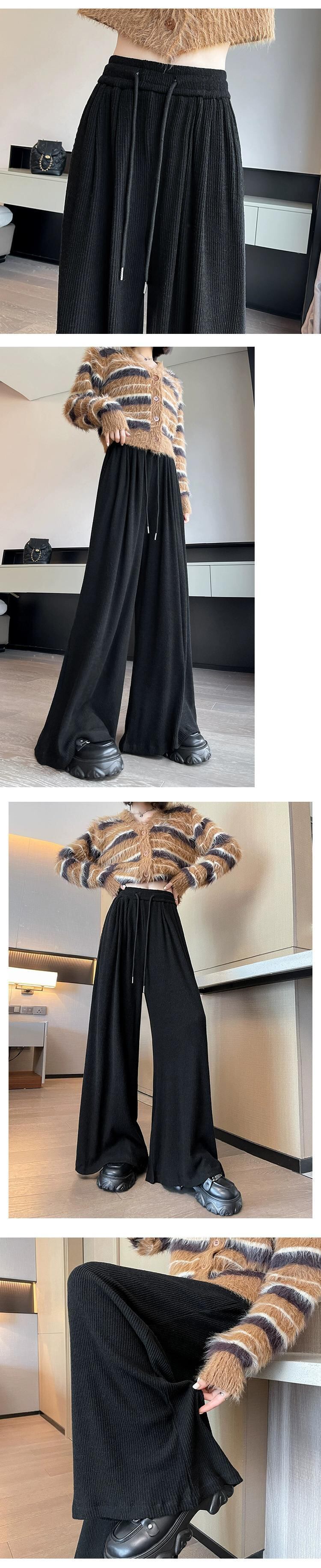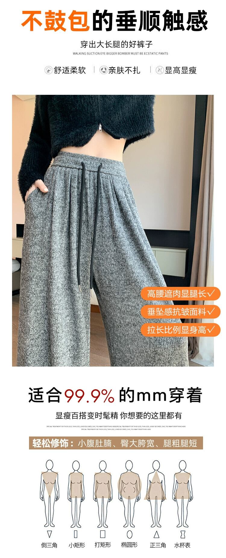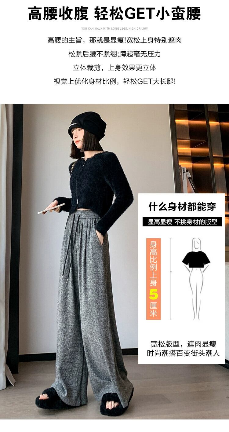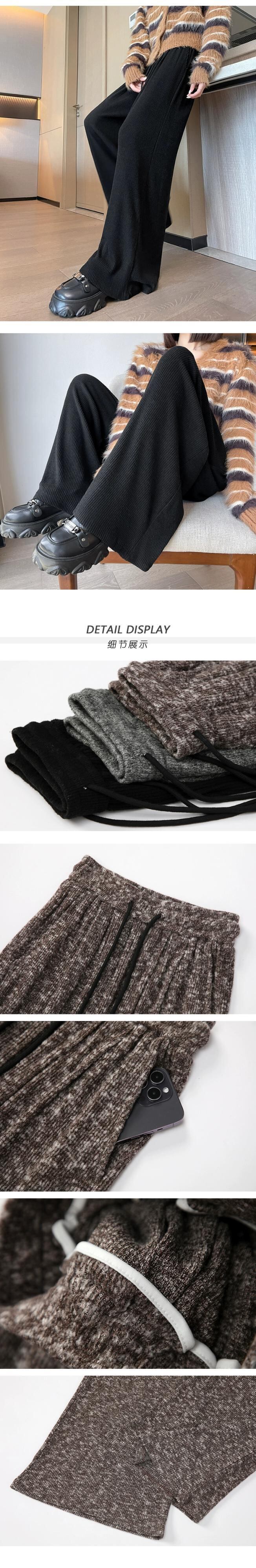 秋と冬の厚みのあるニットワイドレッグパンツの女性、ハイウエストのドレープパンツ、ルーズストレートカジュアルフロアレングスのモップナローバージョンもち米パンツ オータム 秋物 ウィンター 冬物 7460053077275326 | framboise21