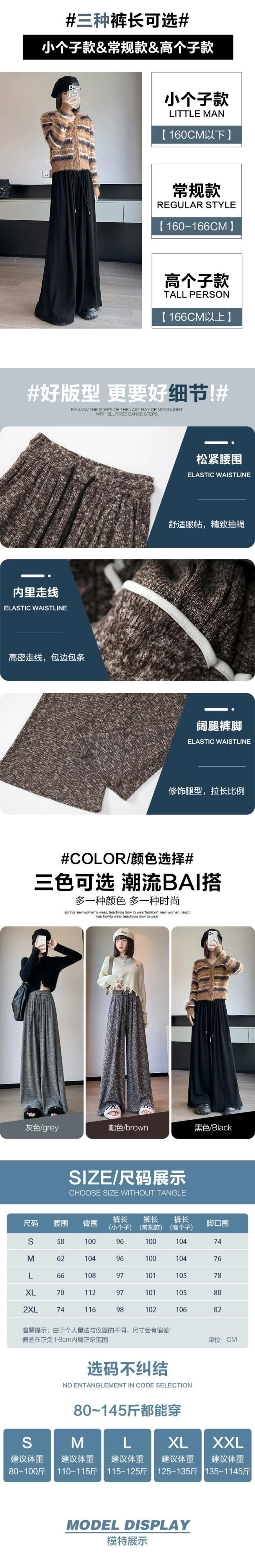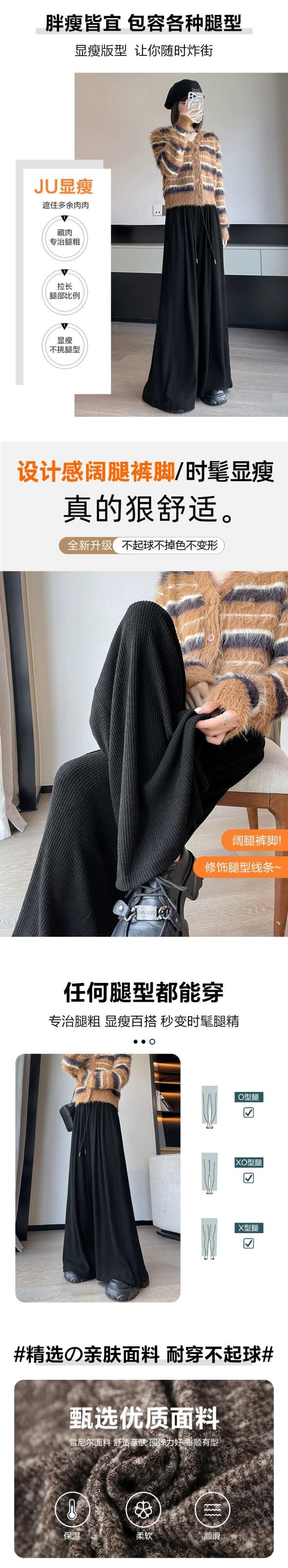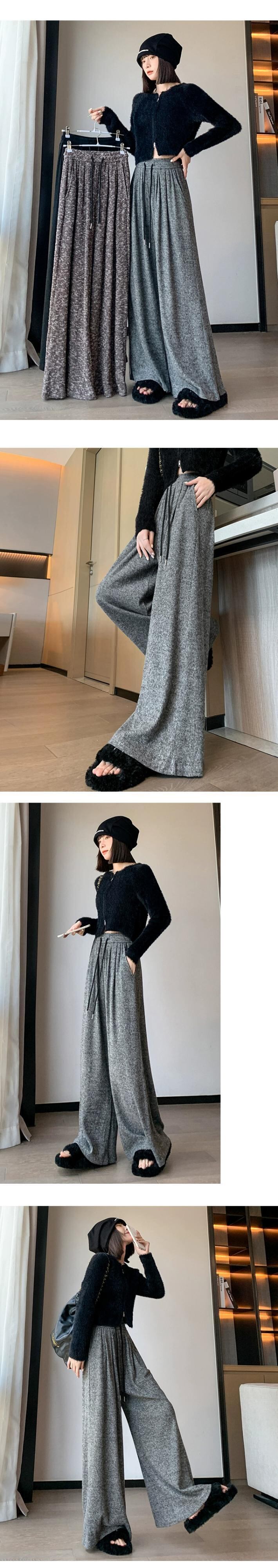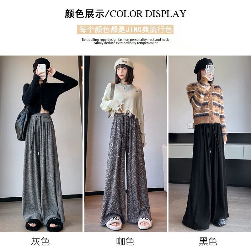 秋と冬の厚みのあるニットワイドレッグパンツの女性、ハイウエストのドレープパンツ、ルーズストレートカジュアルフロアレングスのモップナローバージョンもち米パンツ オータム 秋物 ウィンター 冬物 7460053077275326 | framboise21