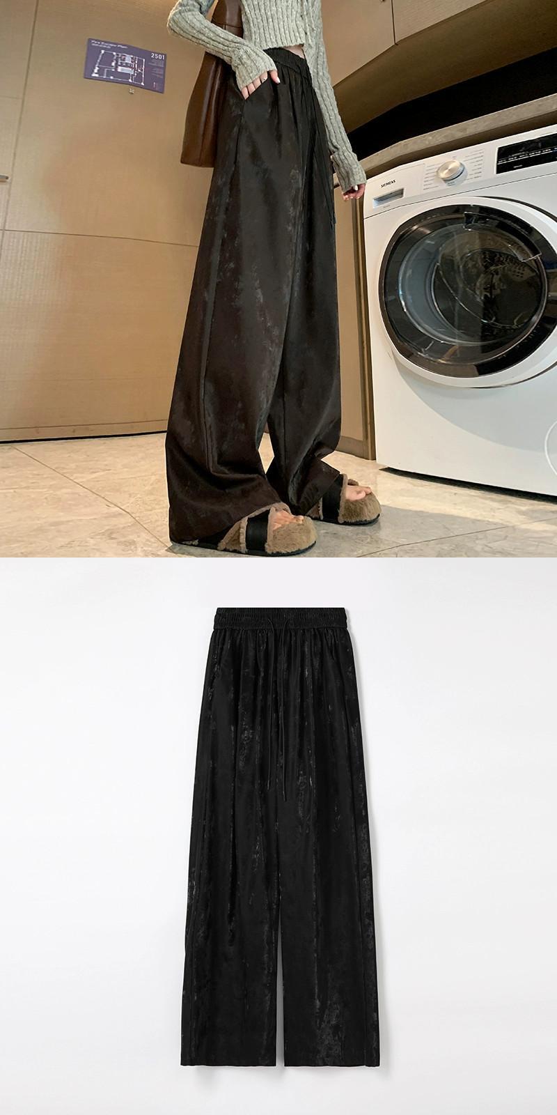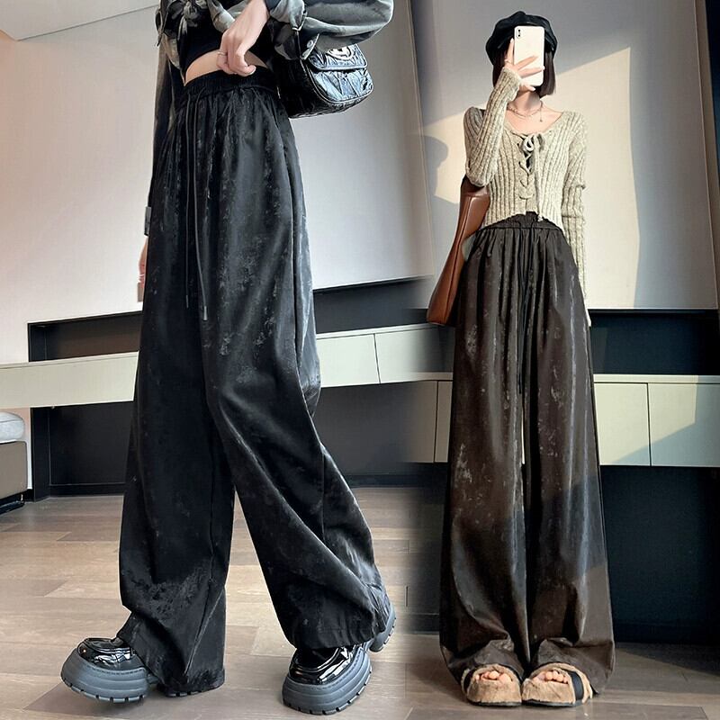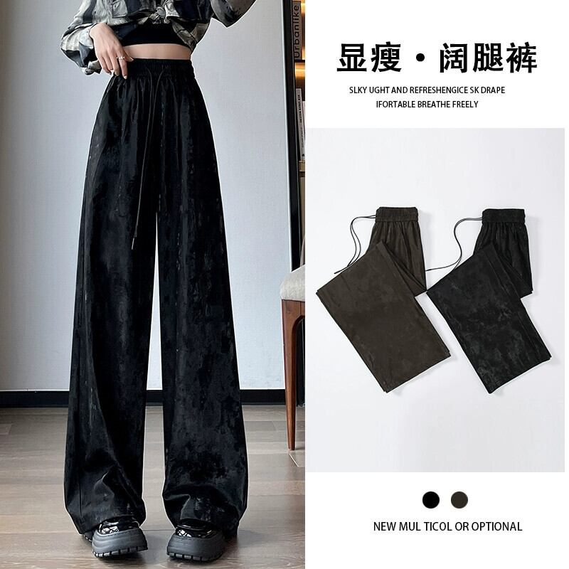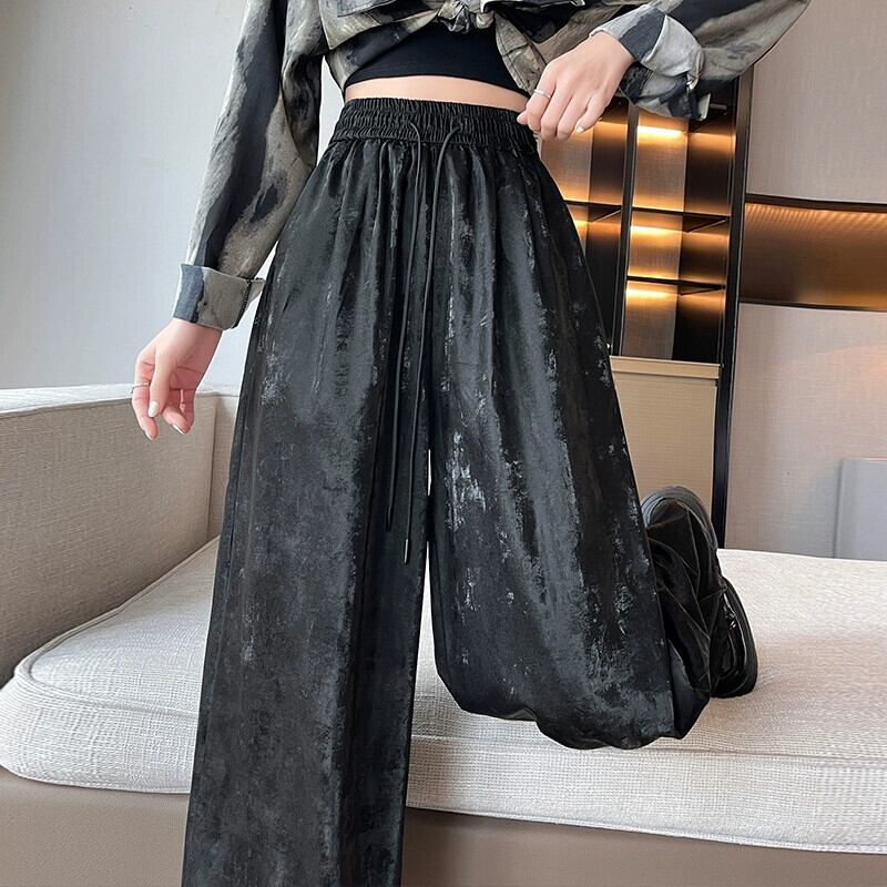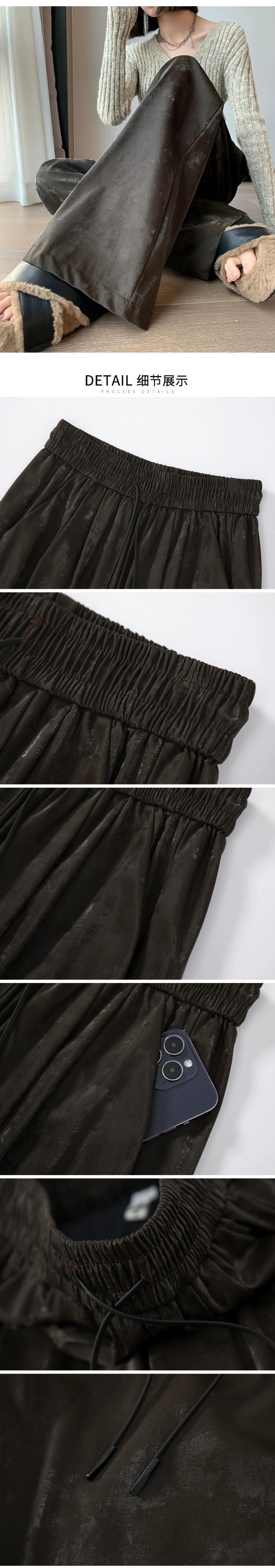黒 pu レザーパンツワイドレッグパンツ女性秋冬 2023 新スタイル怠惰なスタイルハイウエストドレープストレートプリーツカジュアルパンツ ハイウェスト ブラック オータム 秋物 ウィンター 冬物 ワイドパンツ 7460090339478663 | framboise21