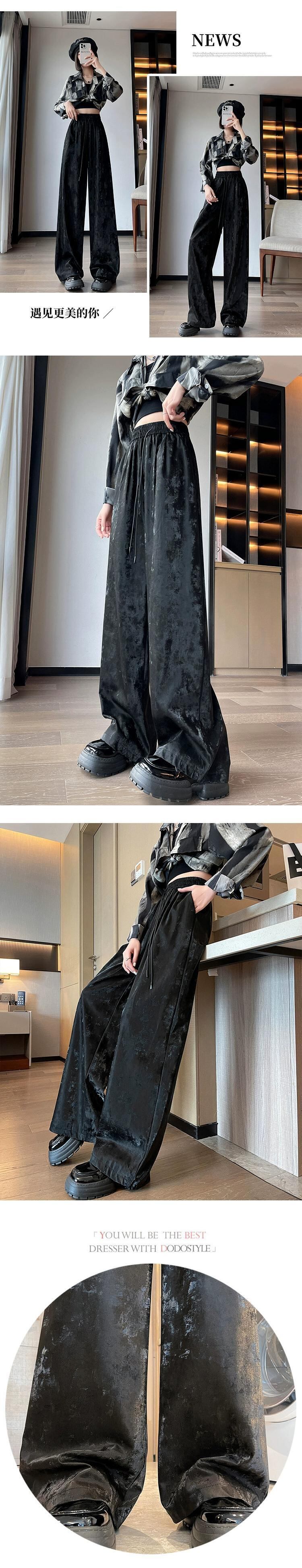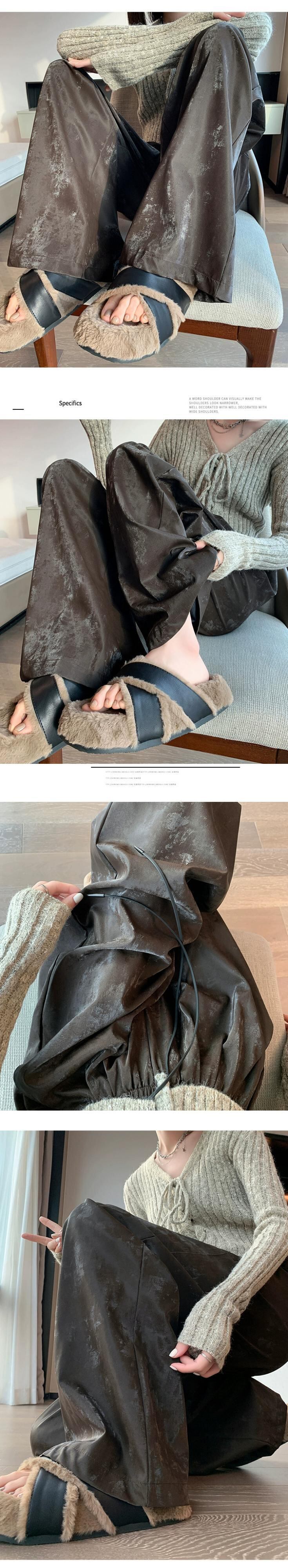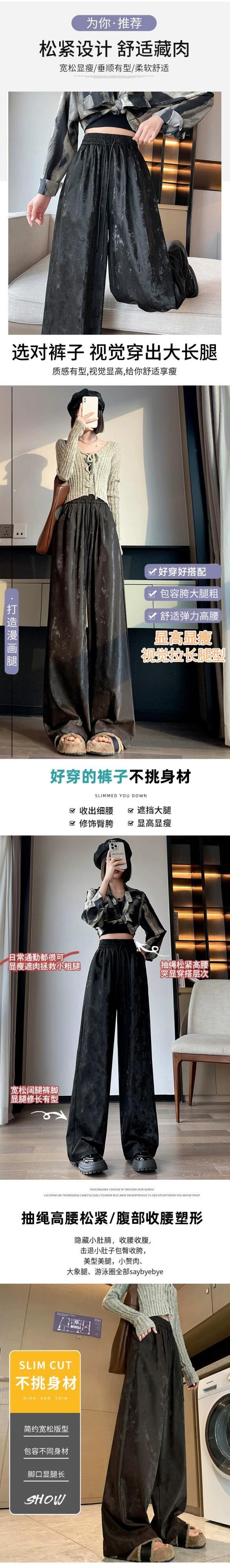 黒 pu レザーパンツワイドレッグパンツ女性秋冬 2023 新スタイル怠惰なスタイルハイウエストドレープストレートプリーツカジュアルパンツ ハイウェスト ブラック オータム 秋物 ウィンター 冬物 ワイドパンツ 7460090339478663 | framboise21