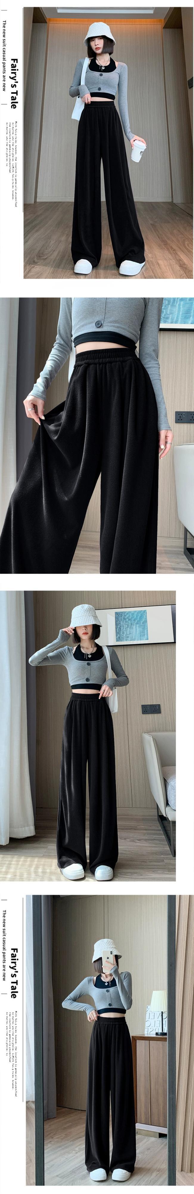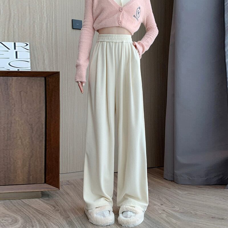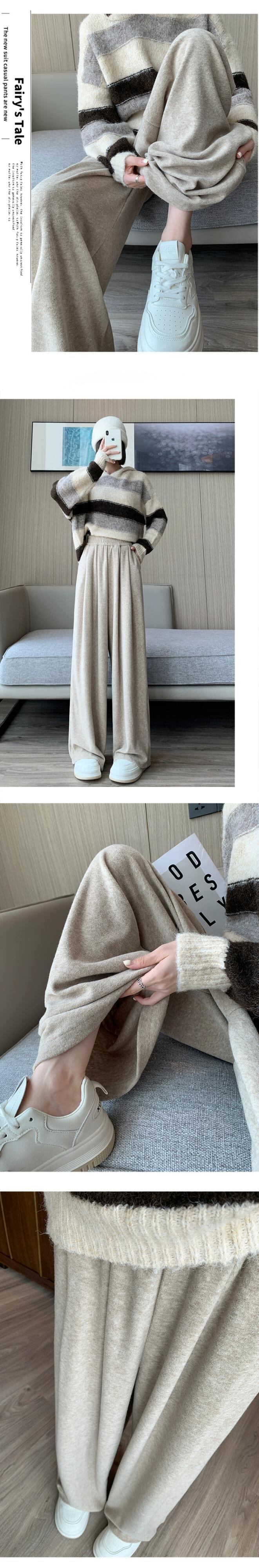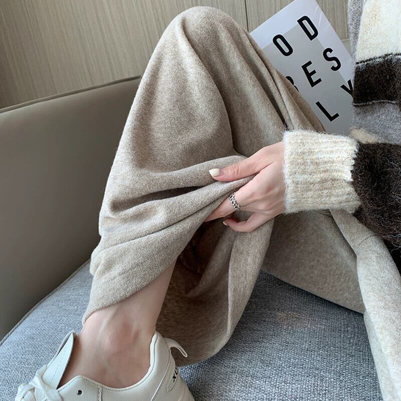 カシミヤニットワイドレッグパンツレディース、秋と冬のハイウエスト、ソフトでワックス状のパンツ、レイジースタイル、ルーズ、スリミング、ストレートレッグカジュアルパンツ オータム 秋物 ウィンター 冬物 7460050398866646 | framboise21