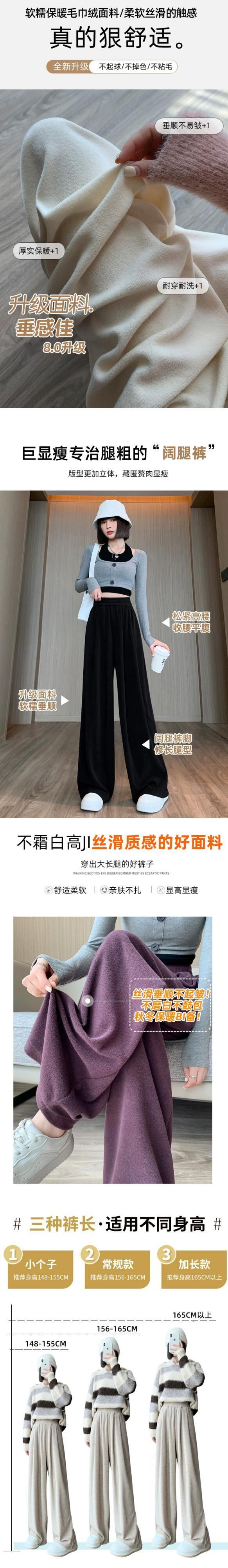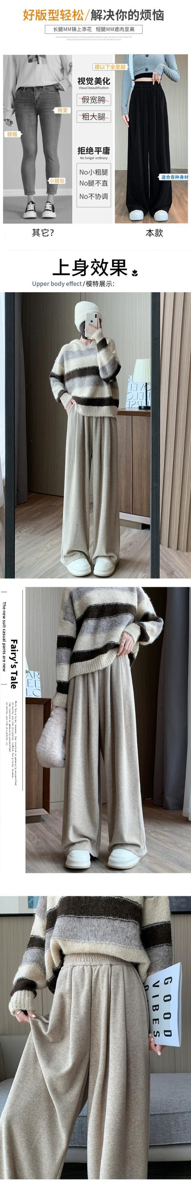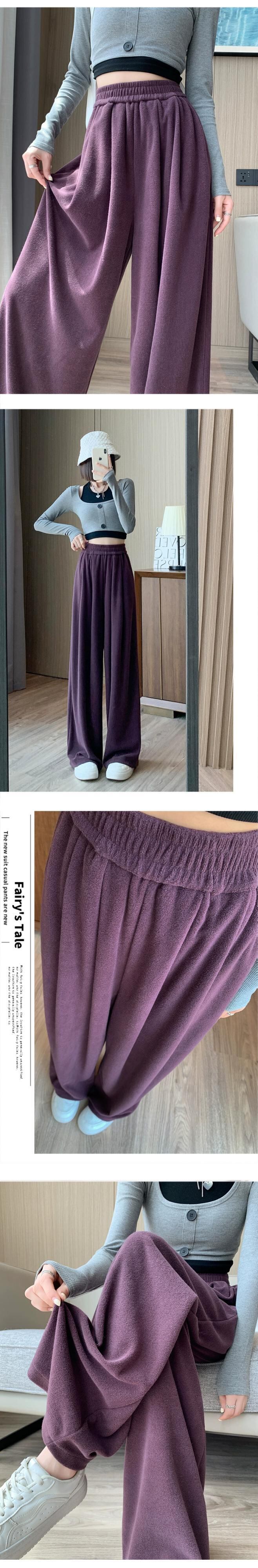 カシミヤニットワイドレッグパンツレディース、秋と冬のハイウエスト、ソフトでワックス状のパンツ、レイジースタイル、ルーズ、スリミング、ストレートレッグカジュアルパンツ オータム 秋物 ウィンター 冬物 7460050398866646 | framboise21