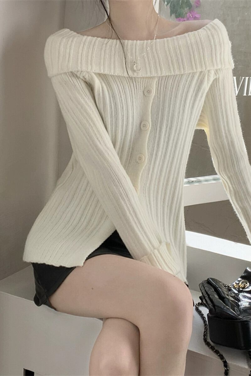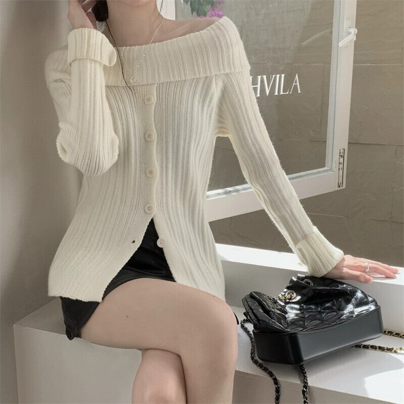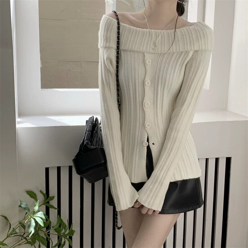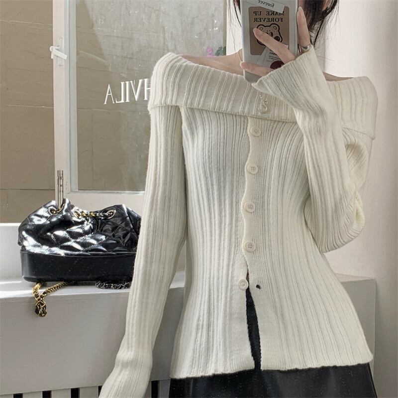 秋冬のワンショルダーニットボトムシャツレディース、ファッショナブルでスタイリッシュなインナーレイヤー、スリムフィット、ショート長袖オフショルダーセーター ロング オータム 秋物 ウィンター 冬物 7460071874600832 | framboise21