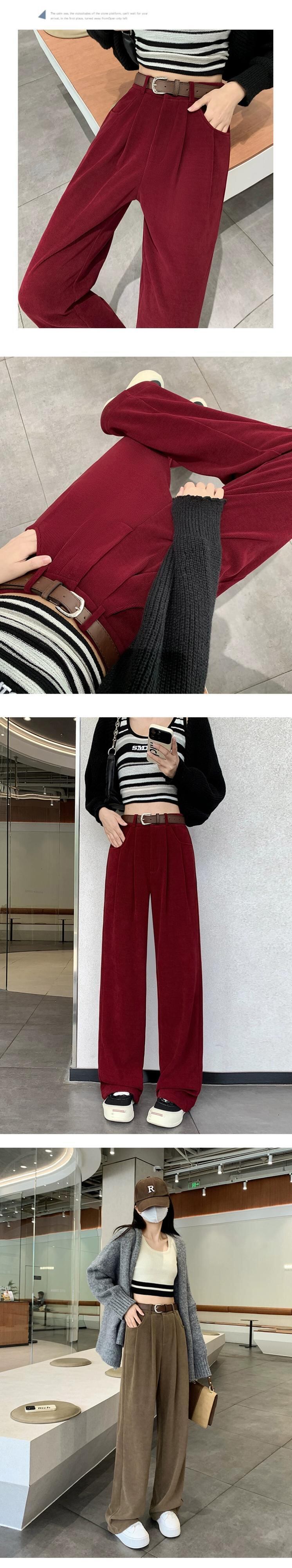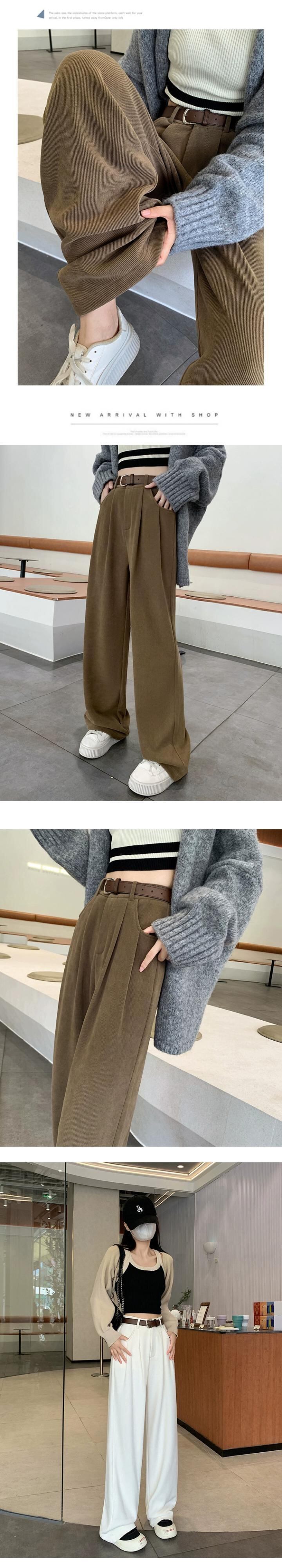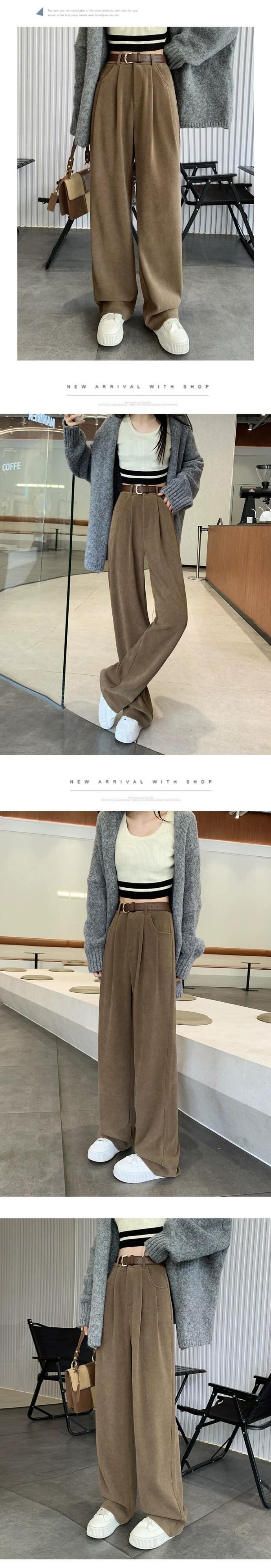 ブラウンベルベットハイウエストワイドレッグパンツレディース、秋冬コーデュロイパンツ、ストレート、ルーズ、ドレープフロアレングスカジュアルスーツパンツ オータム 秋物 ウィンター 冬物 74600535969776 | framboise21
