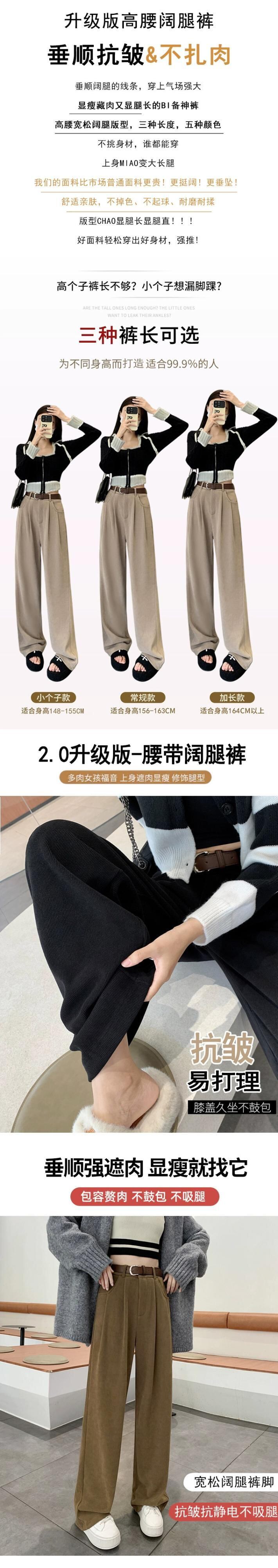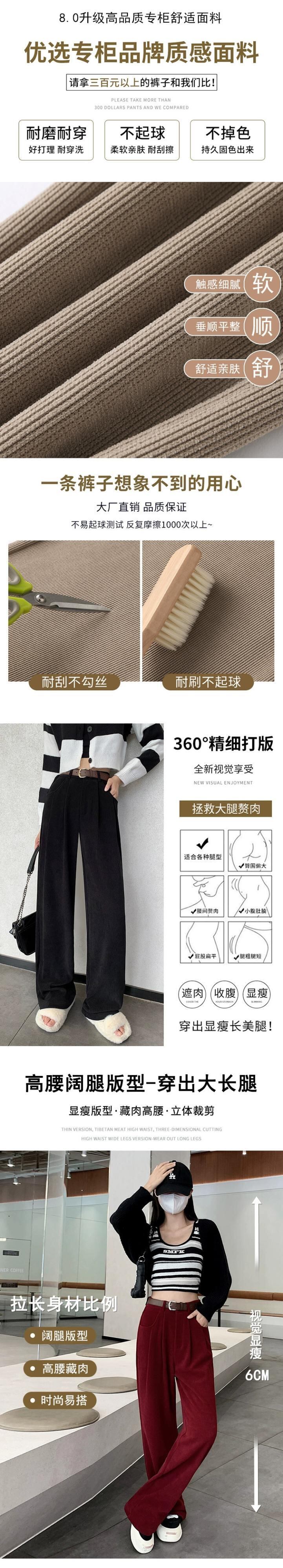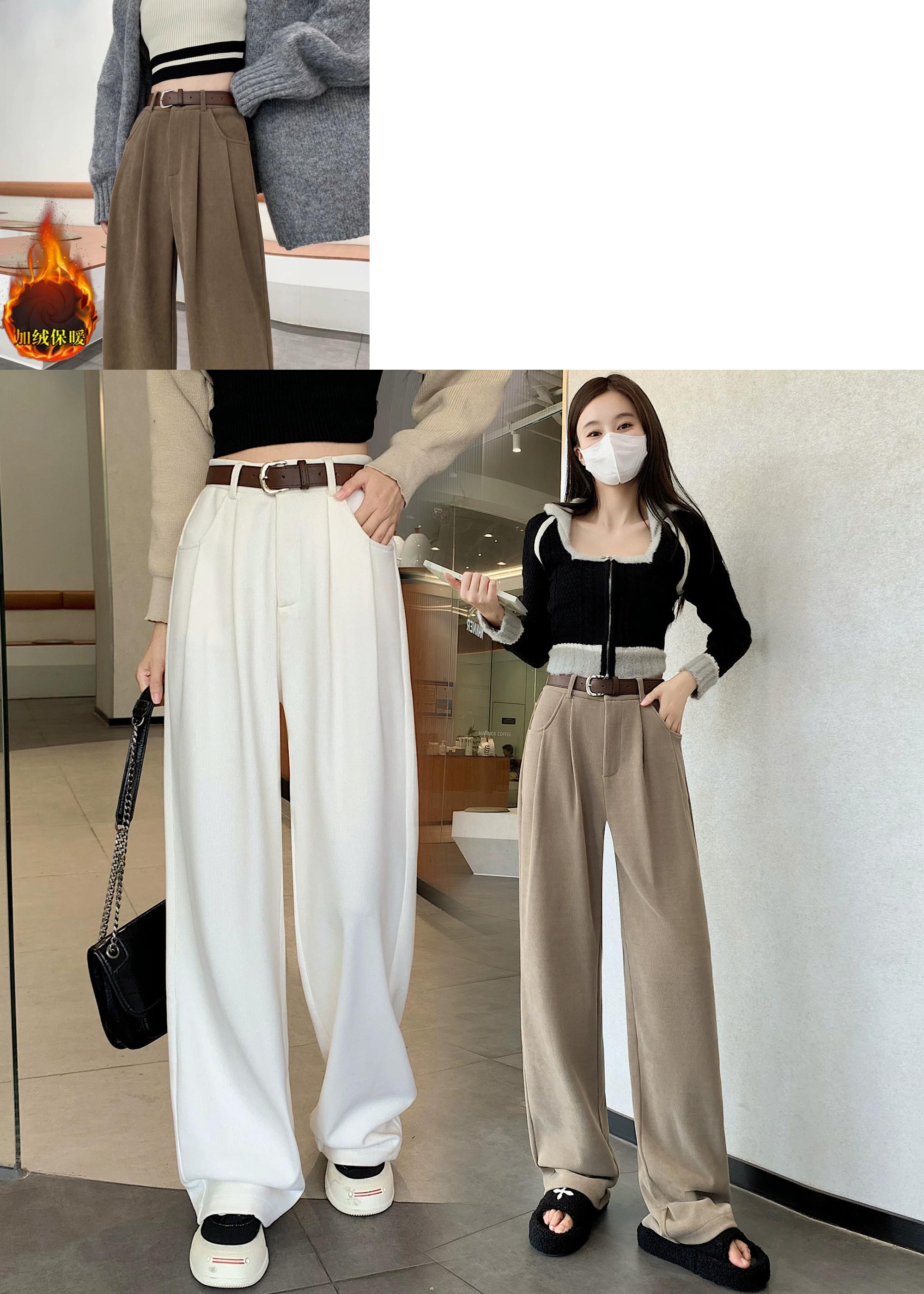 ブラウンベルベットハイウエストワイドレッグパンツレディース、秋冬コーデュロイパンツ、ストレート、ルーズ、ドレープフロアレングスカジュアルスーツパンツ オータム 秋物 ウィンター 冬物 74600535969776 | framboise21