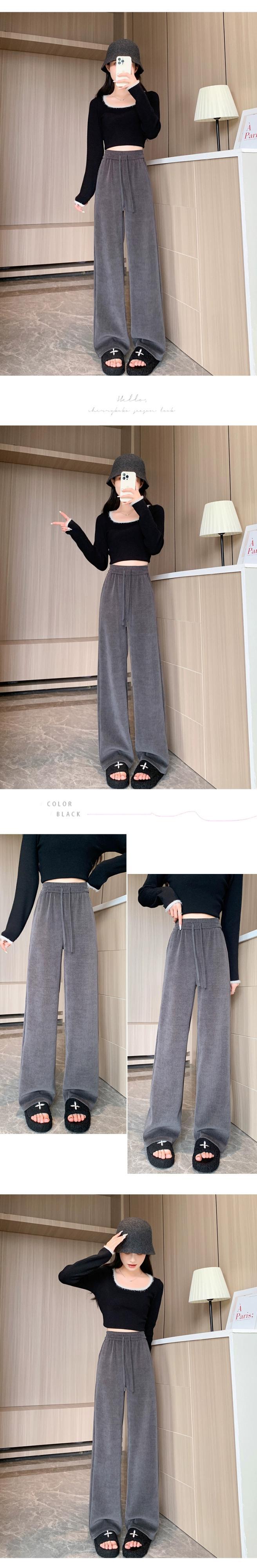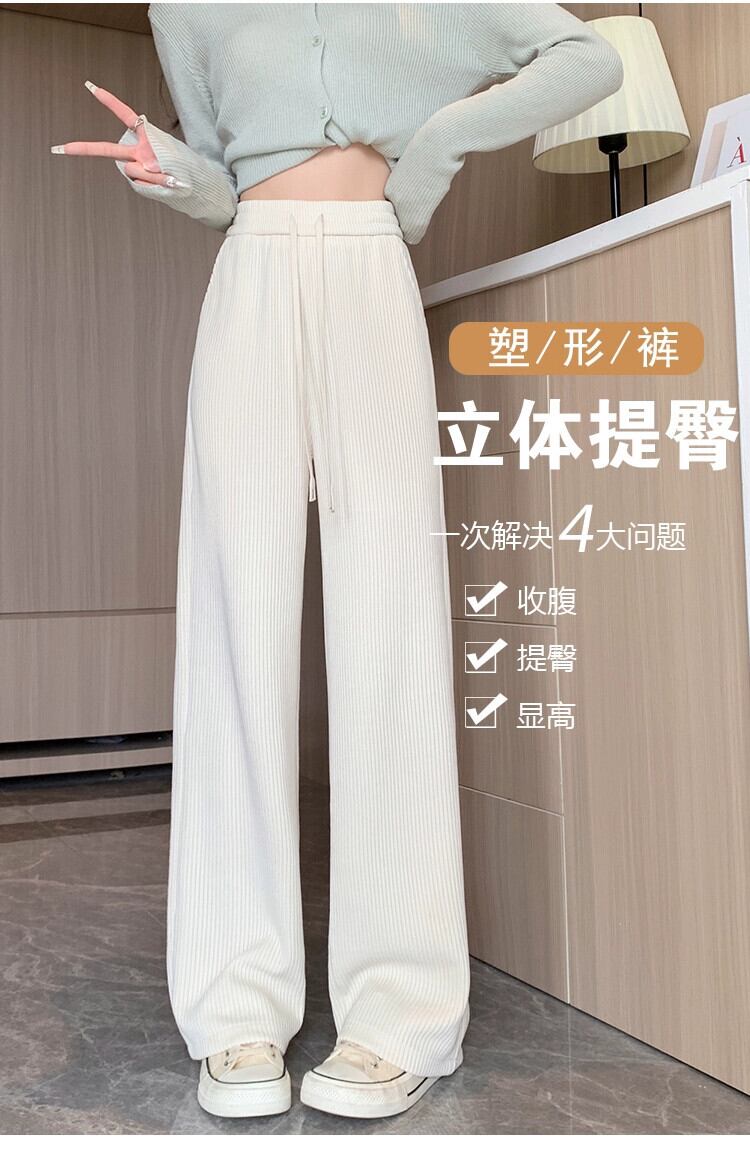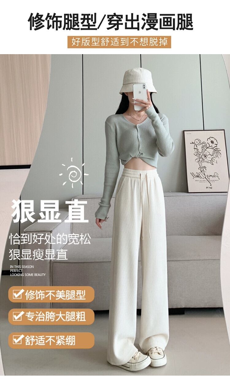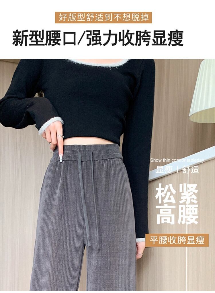オフホワイトの狭いシェニールワイドレッグパンツの女性の秋と冬のハイウエストルーズストレートカジュアルコーデュロイパンツ オータム 秋物 ウィンター 冬物 7460036799998803 | framboise21