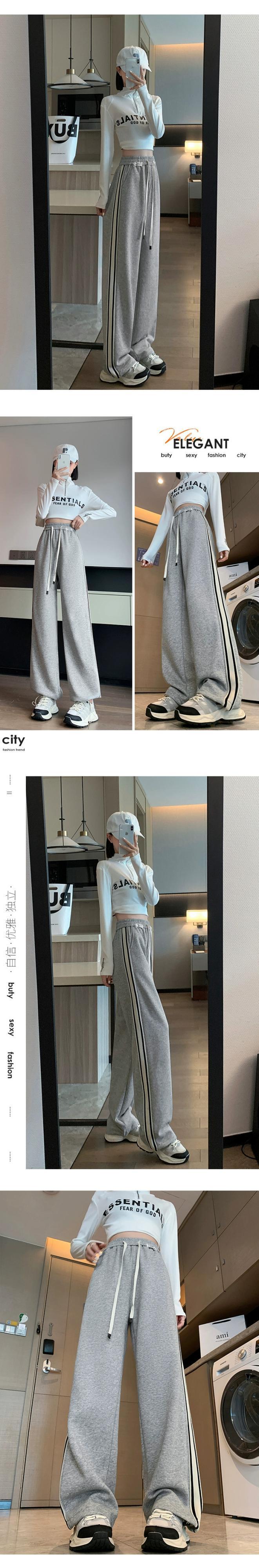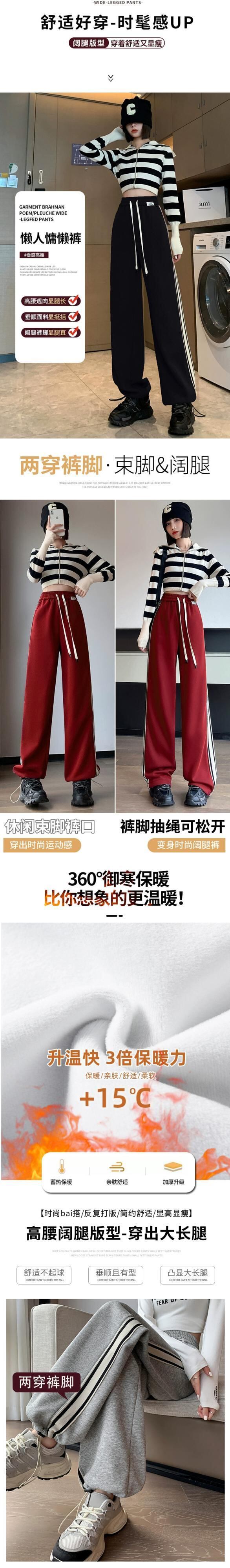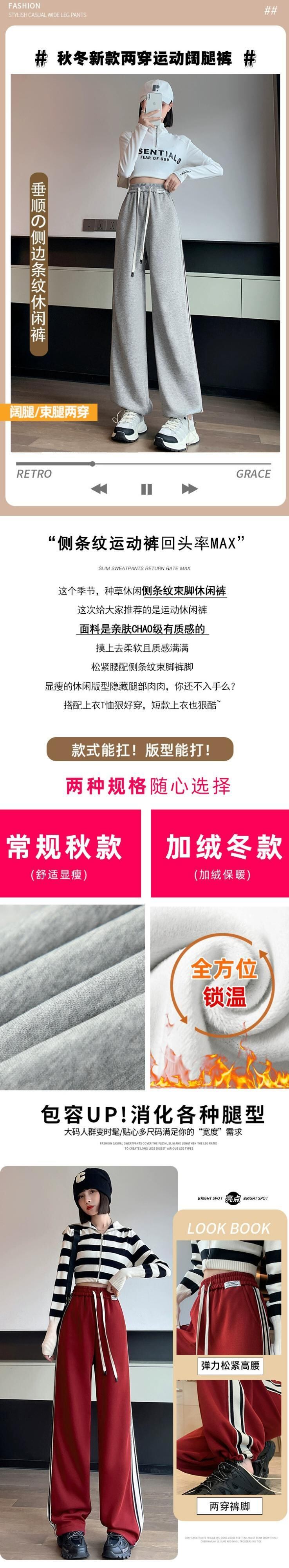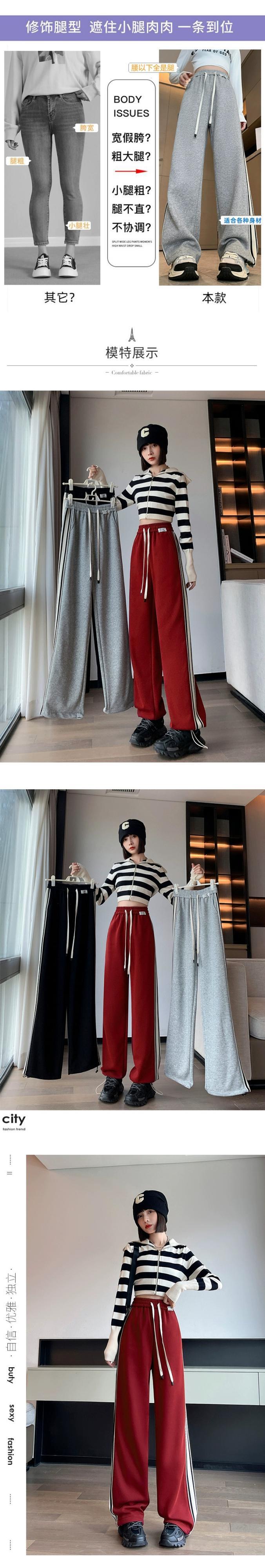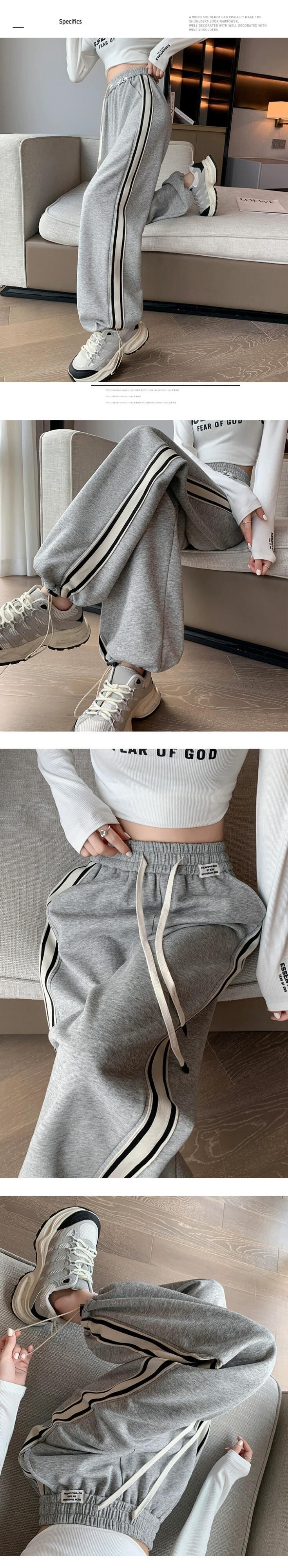 アメリカングレーのレギンススウェットパンツ、秋と冬の小柄な女性、さらにベルベットと厚みのあるパンツ、ゆったりとしたカジュアルなストレートレッグスウェットパンツ オータム 秋物 ウィンター 冬物 7460083141271150 | framboise21