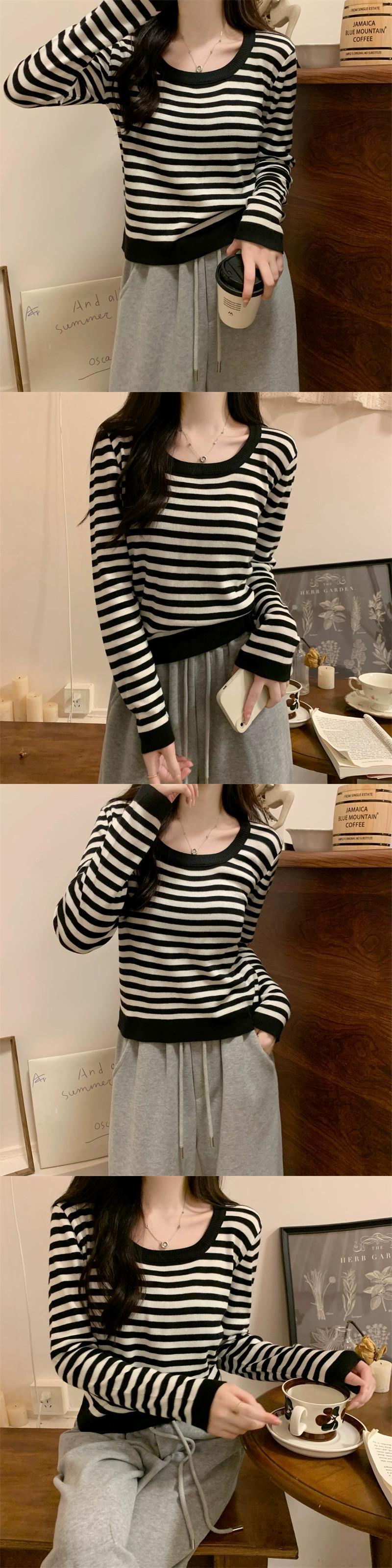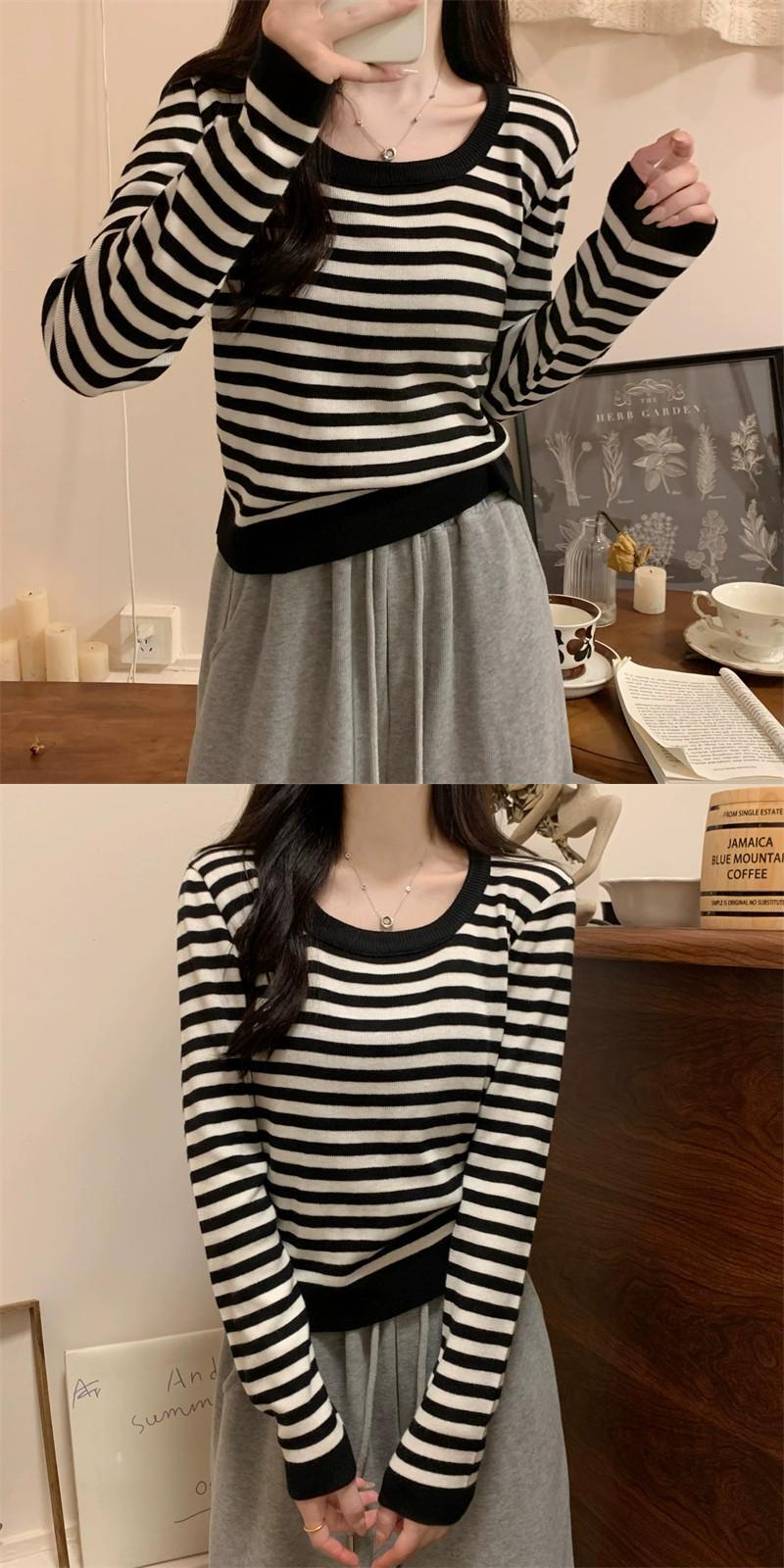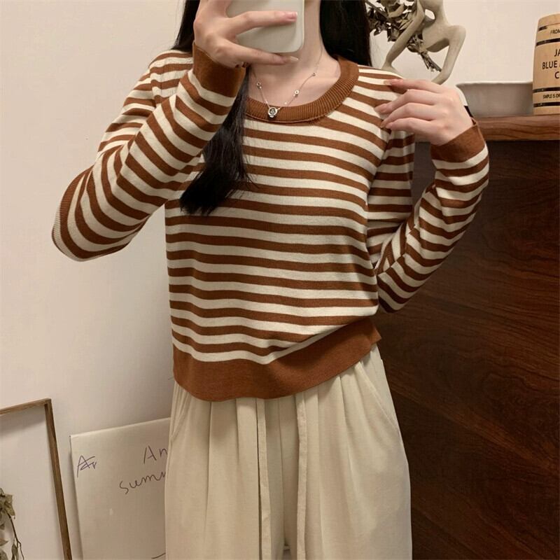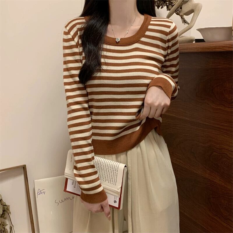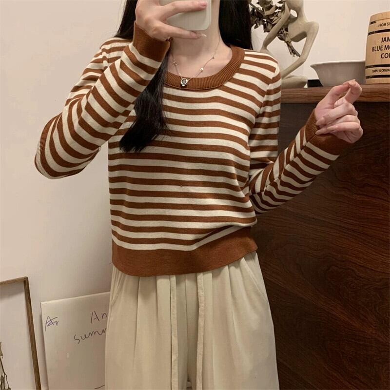 黒のストライプのボトリングシャツ 2023 新しい女性の秋と冬のフレンチスタイルのスリムフィットインナーニットショートセーター ブラック オータム 秋物 ウィンター 冬物 7460076896877993 | framboise21