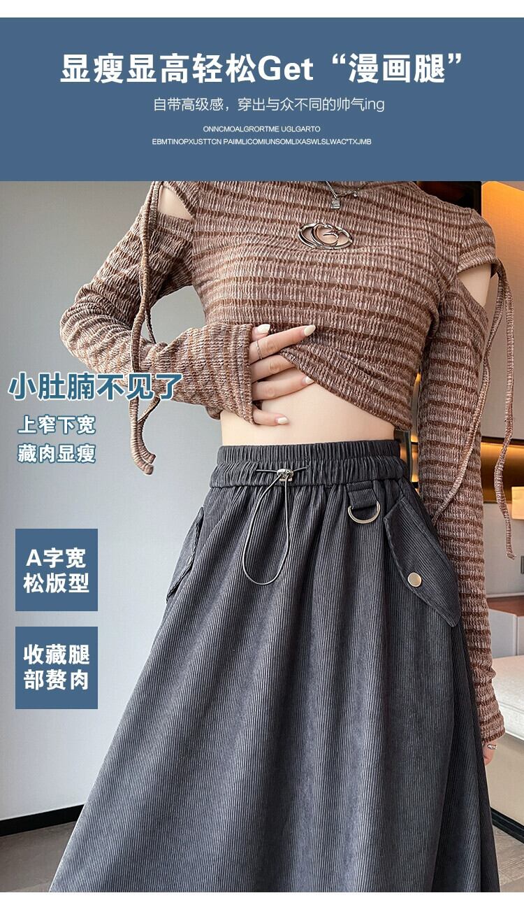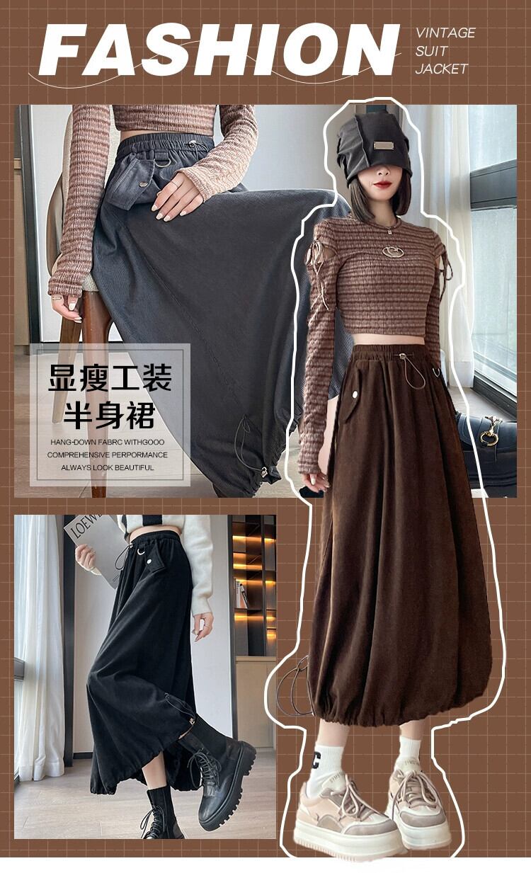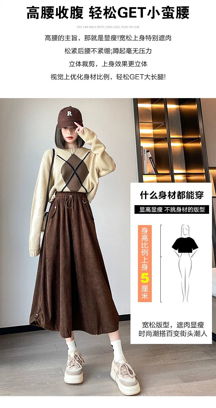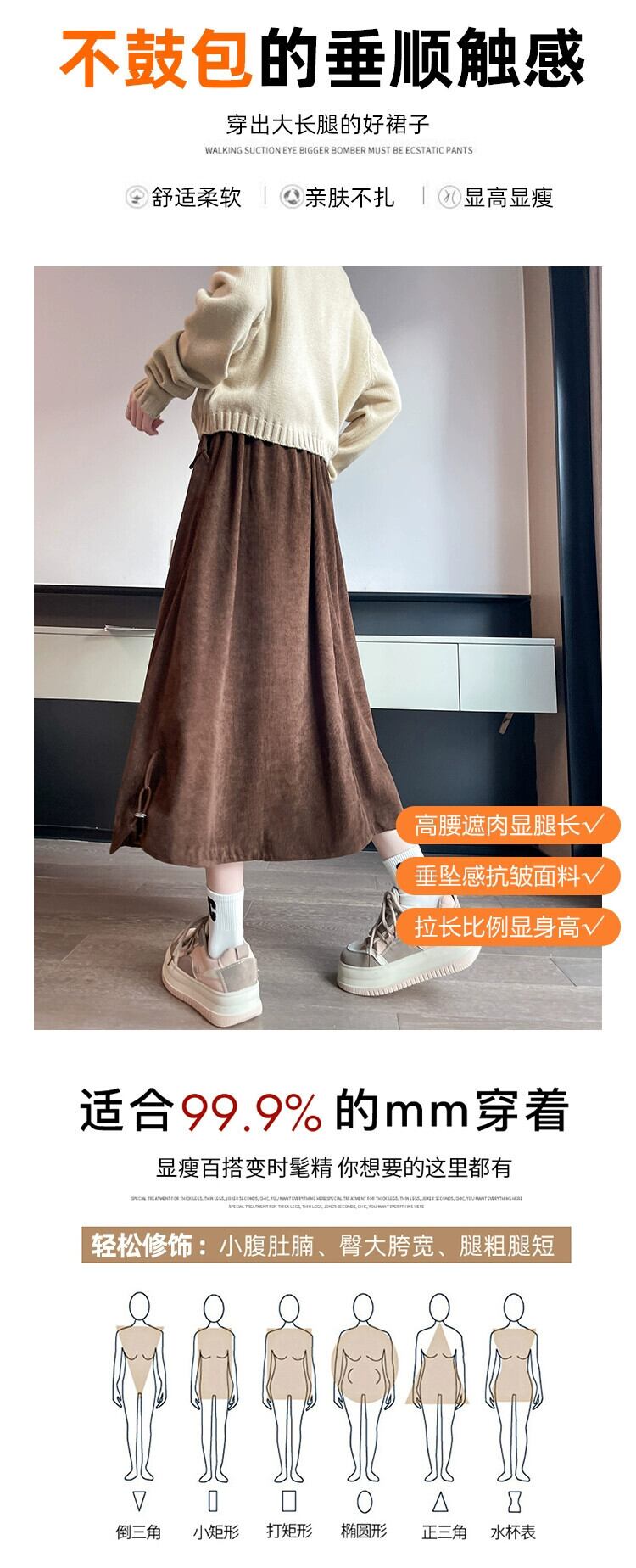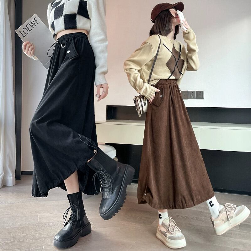 レトロコーデュロイスカート女性の秋冬 2023 アメリカンワークウェアスカートカバースリムウエスト A ラインスカート オータム 秋物 ウィンター 冬物 Aライン 7460073104673234 | framboise21