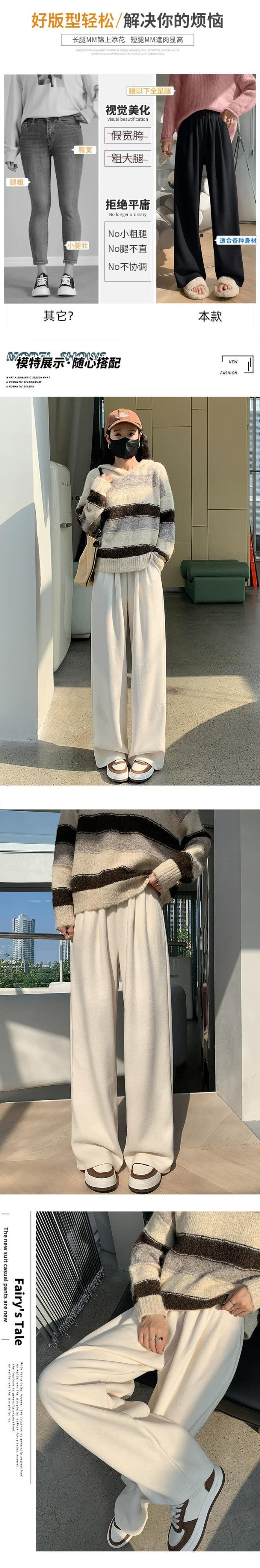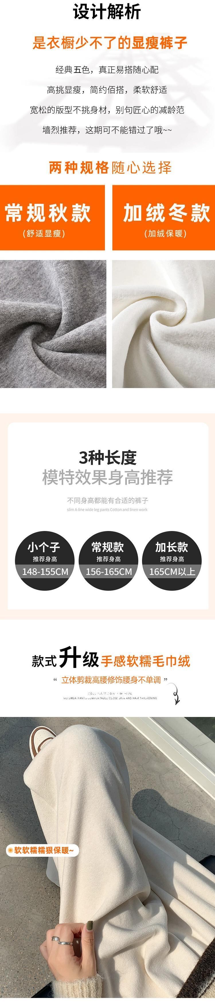 怠惰なスタイルのベルベット肥厚パンツ女性の秋と冬のナローバージョンもち米タオルワイドレッグパンツハイウエストドレープストレートカジュアルパンツ ハイウェスト オータム 秋物 ウィンター 冬物 ワイドパンツ 7460083580450648 | framboise21