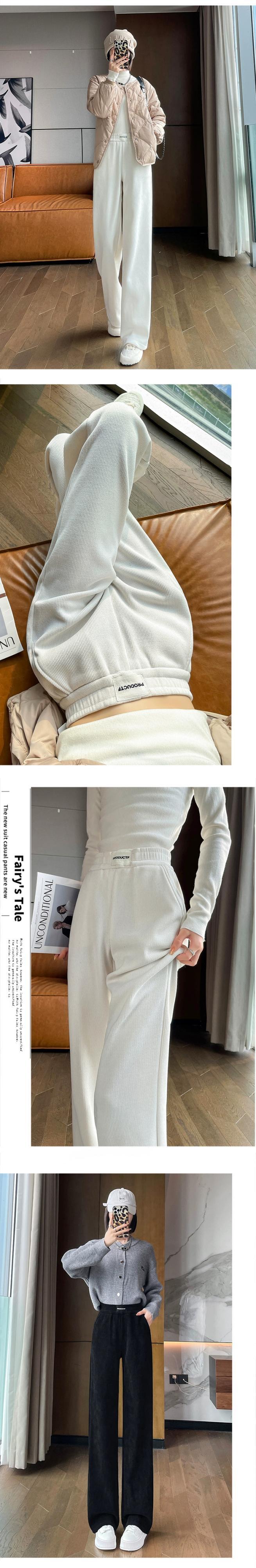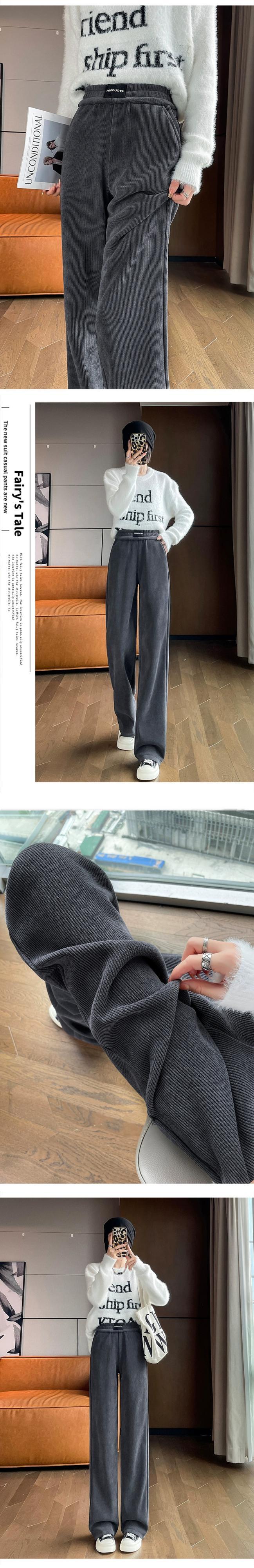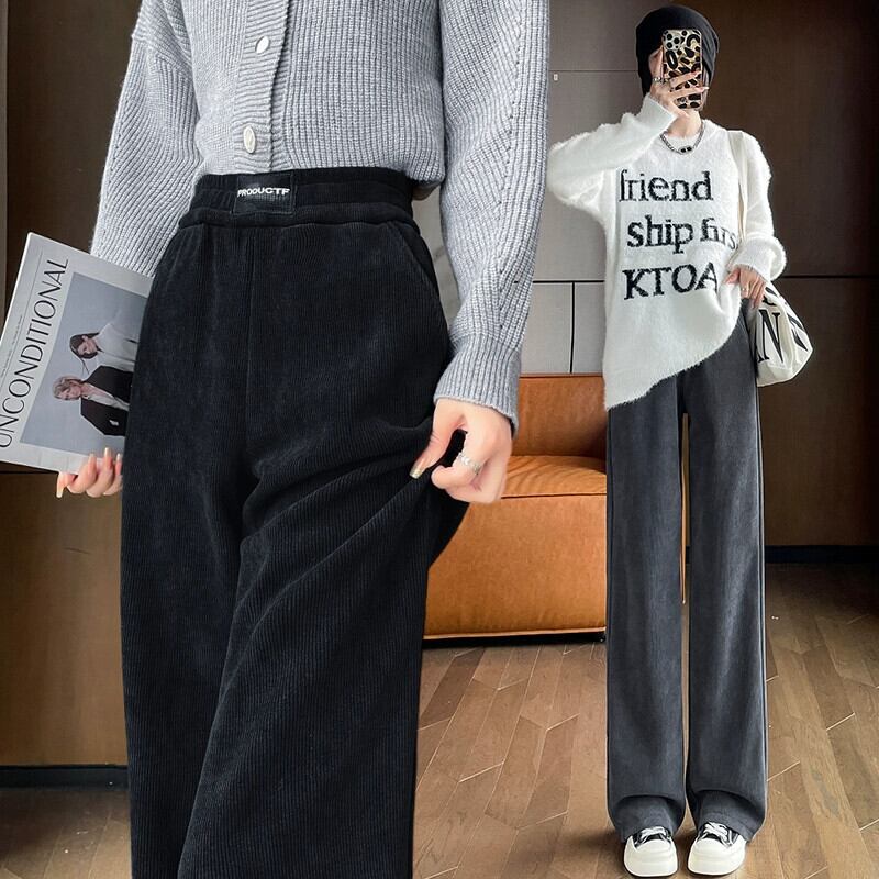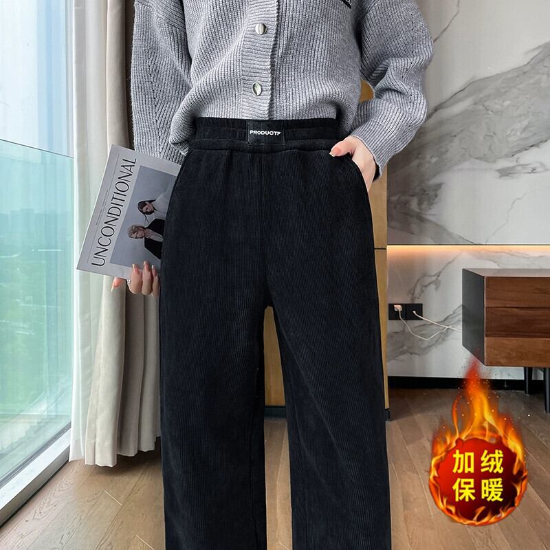 秋冬の黒のコーデュロイカジュアルパンツレディース、ゆったりと多用途、ストレート、ハイウエスト、ベルベットシェニールワイドレッグパンツ ブラック オータム 秋物 ウィンター 冬物 7460070256907997 | framboise21