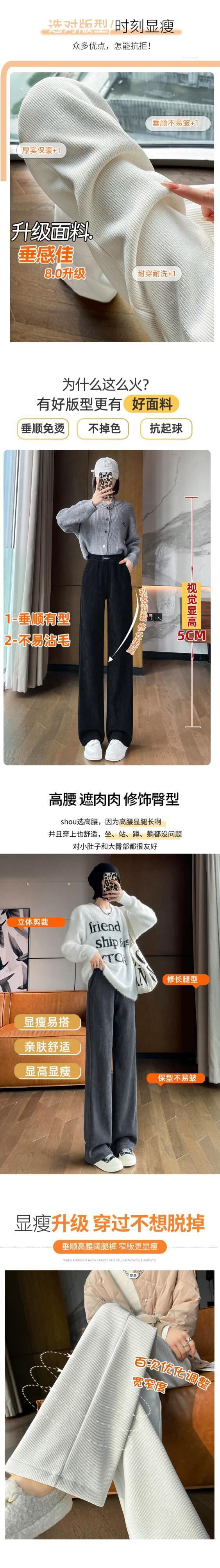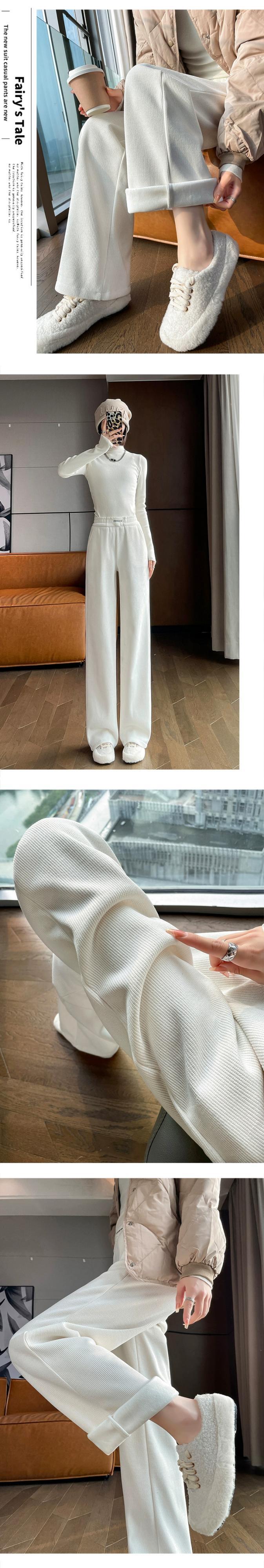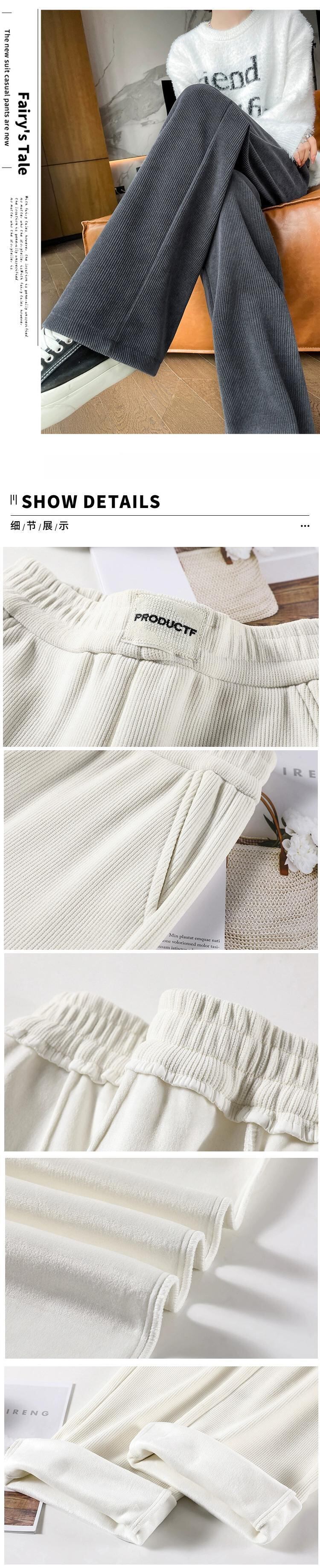 秋冬の黒のコーデュロイカジュアルパンツレディース、ゆったりと多用途、ストレート、ハイウエスト、ベルベットシェニールワイドレッグパンツ ブラック オータム 秋物 ウィンター 冬物 7460070256907997 | framboise21