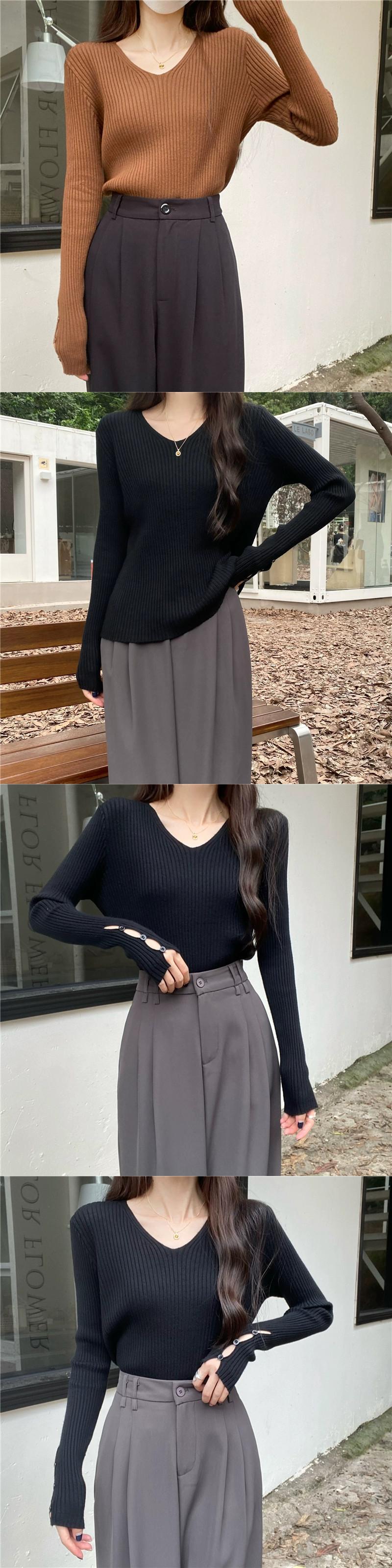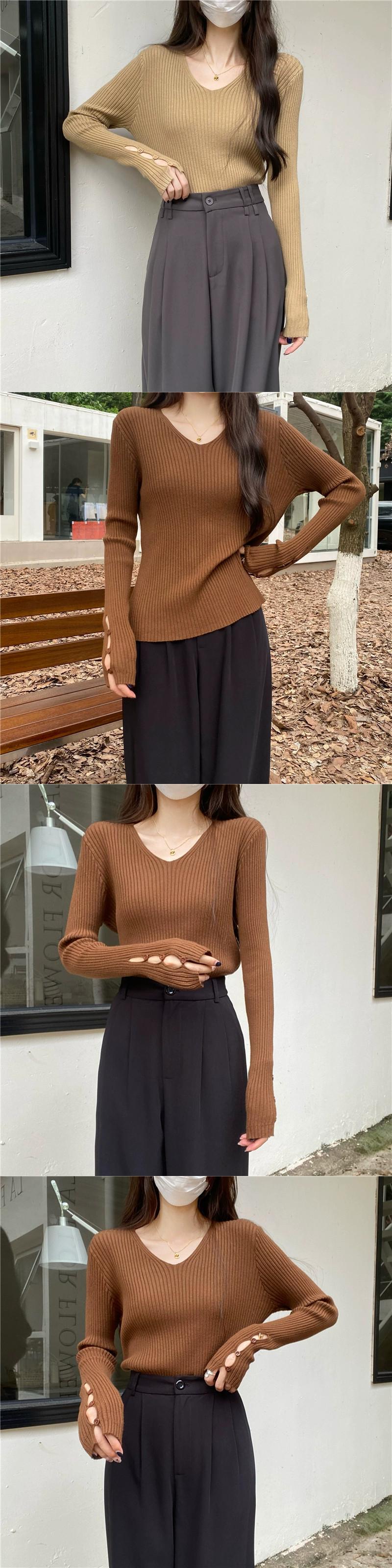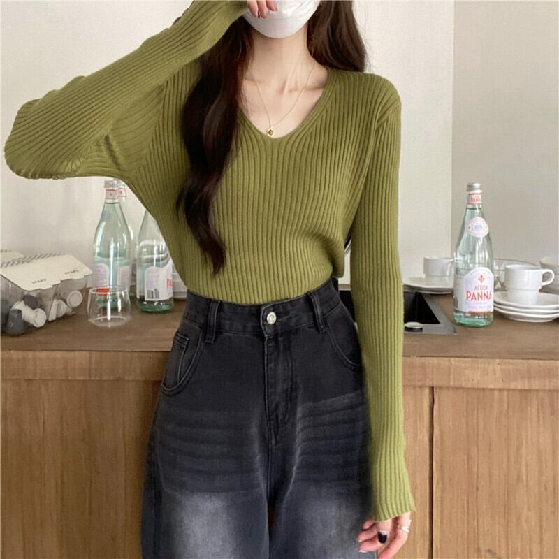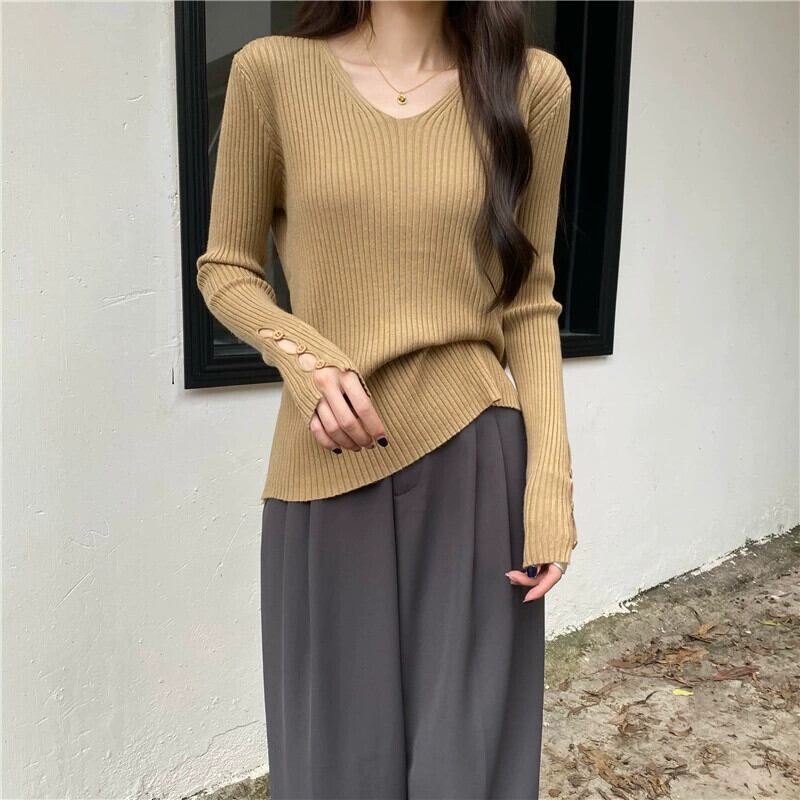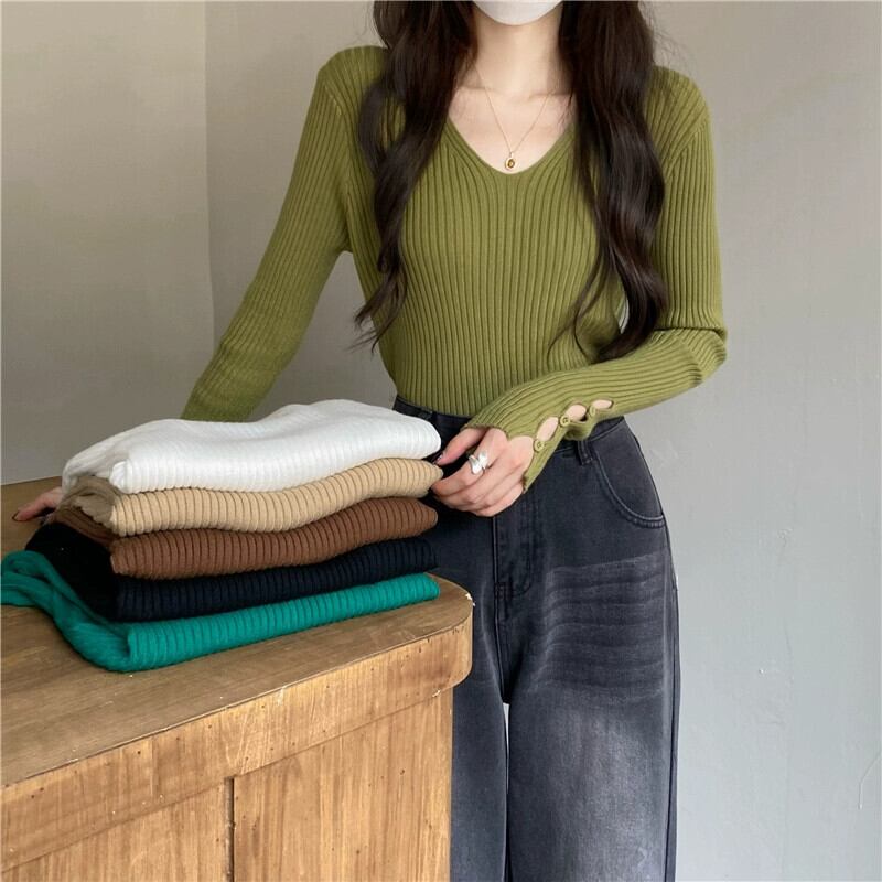 秋冬の白いショートVネックボトリングシャツ女性、ファッショナブルでスタイリッシュなインナースタイル、スリムフィット、中空長袖セーター ロング ホワイト オータム 秋物 ウィンター 冬物 7460025359613661 | framboise21