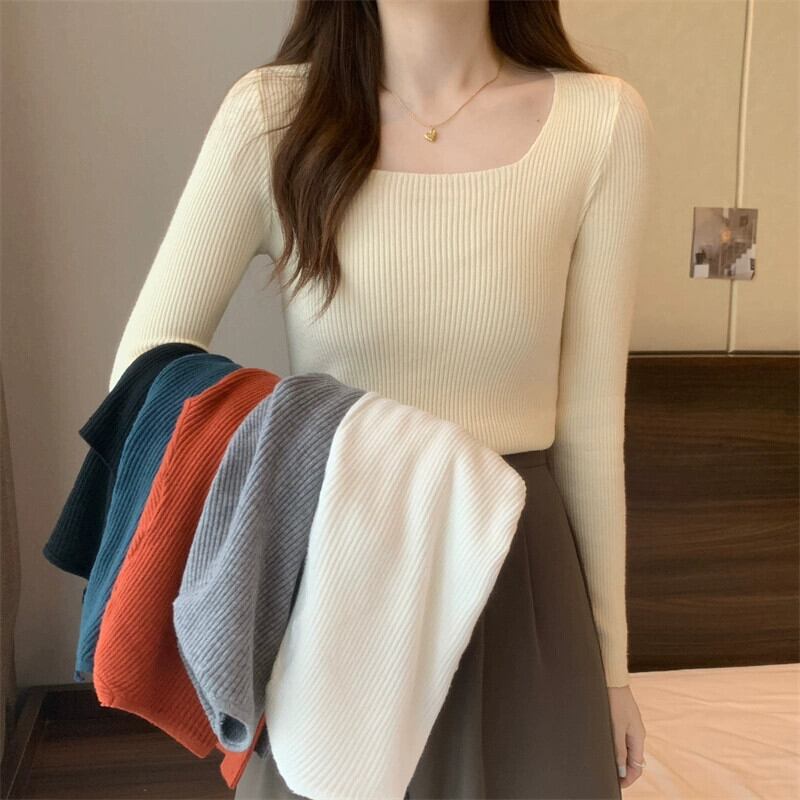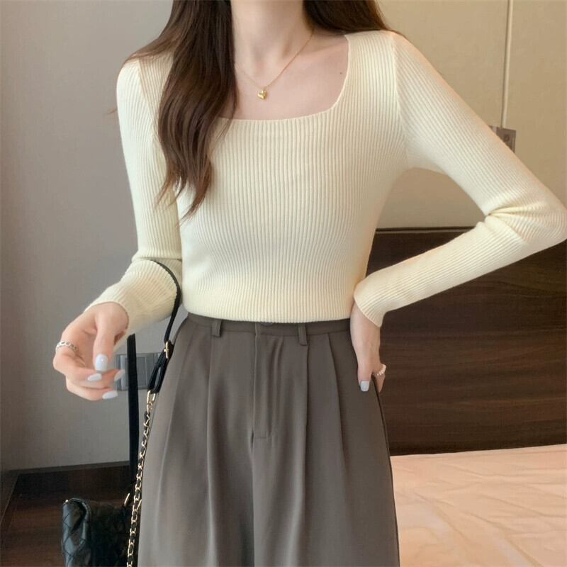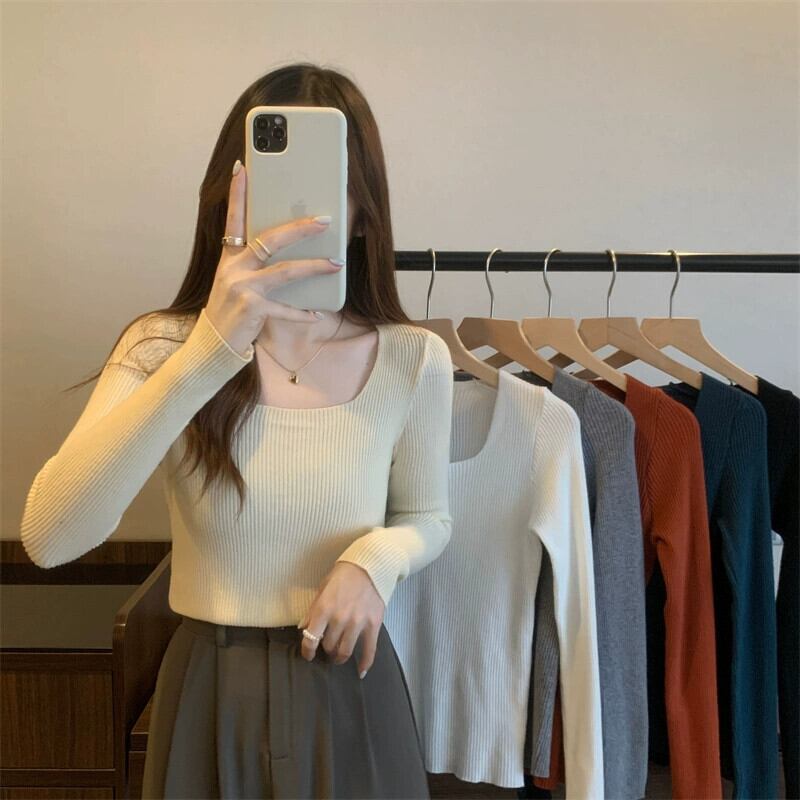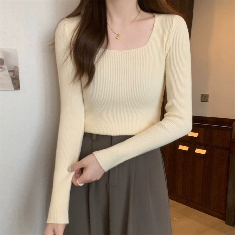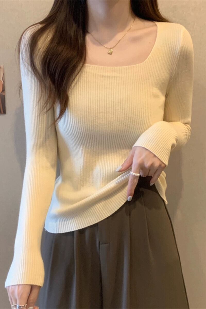 アプリコットスクエアネックボトリングシャツ 2023 新しいスタイルの女性の秋冬の人気スタイルスリムフィットインナーショート長袖ニットセーター ロング オータム 秋物 ウィンター 冬物 スクウェア 7460015960584165 | framboise21