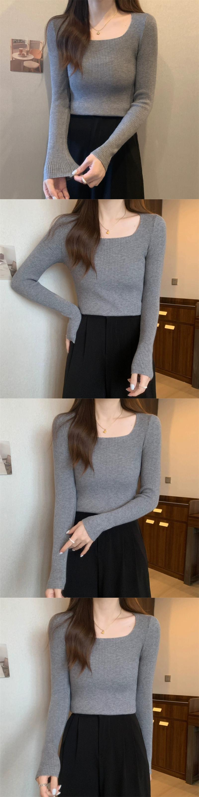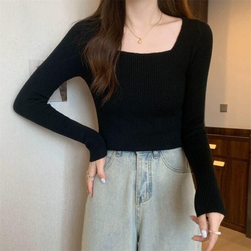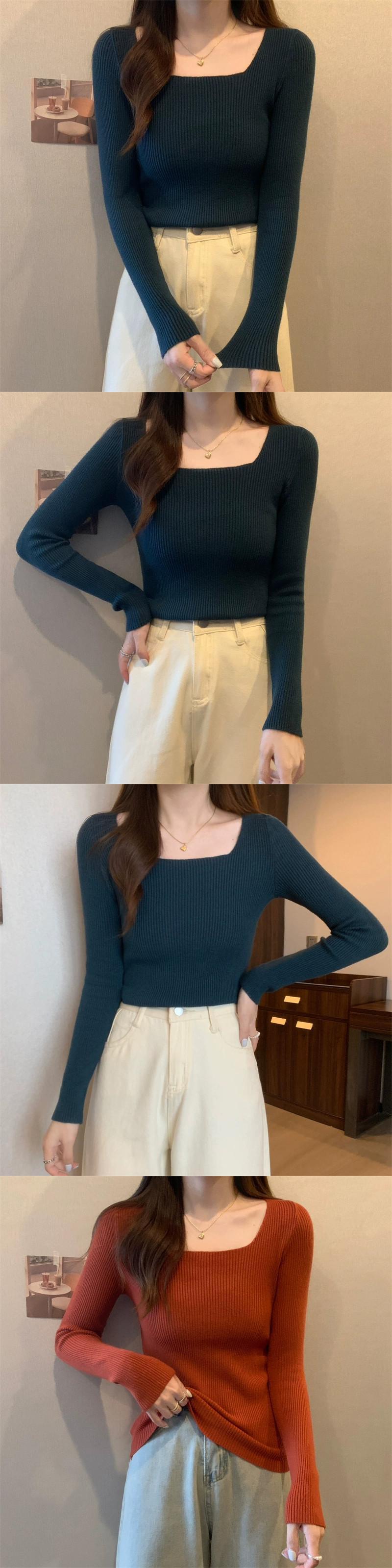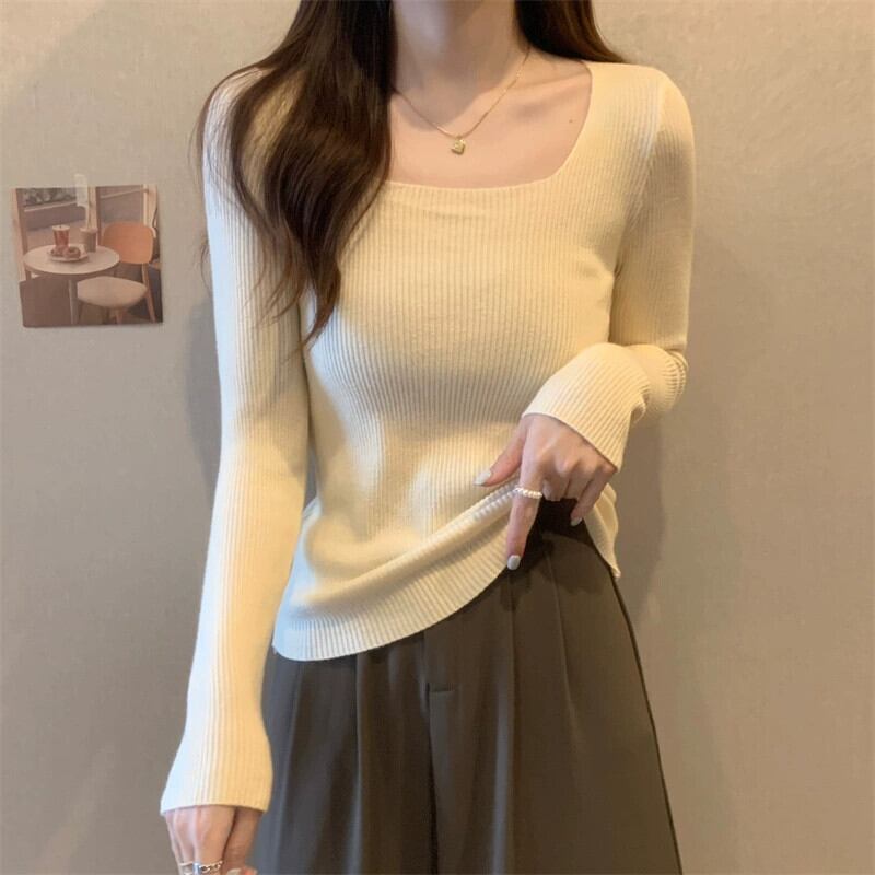 アプリコットスクエアネックボトリングシャツ 2023 新しいスタイルの女性の秋冬の人気スタイルスリムフィットインナーショート長袖ニットセーター ロング オータム 秋物 ウィンター 冬物 スクウェア 7460015960584165 | framboise21