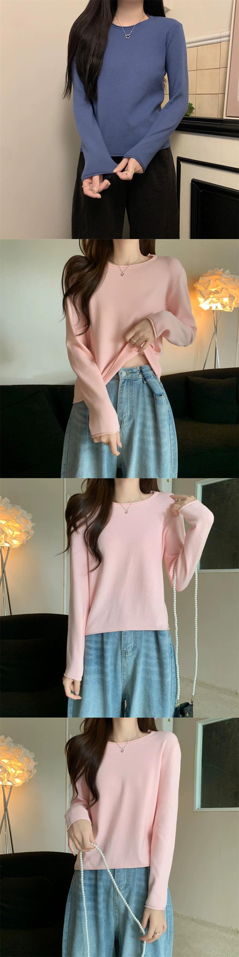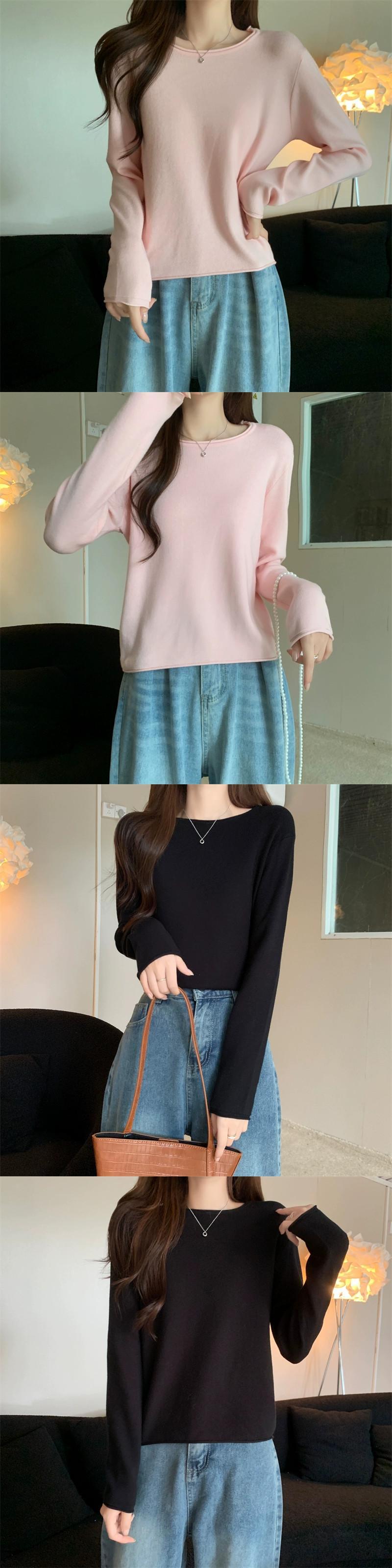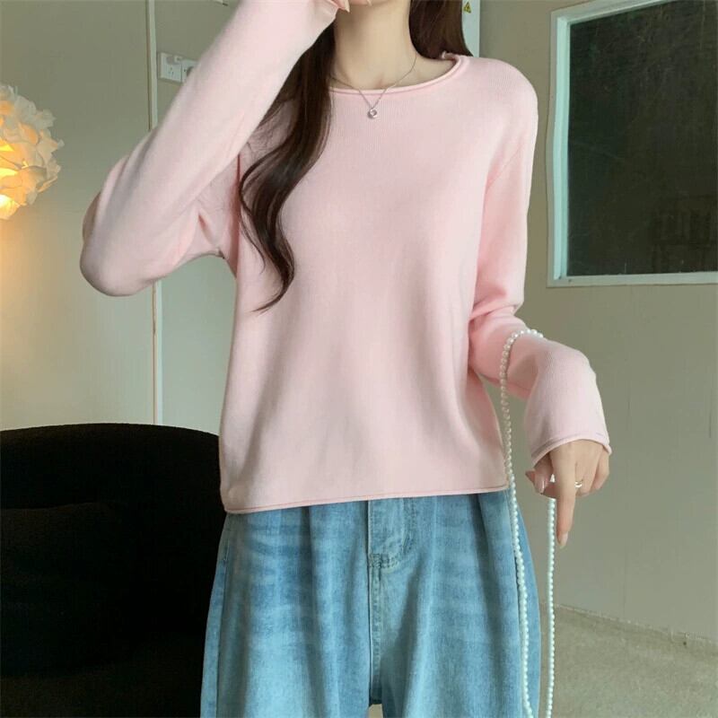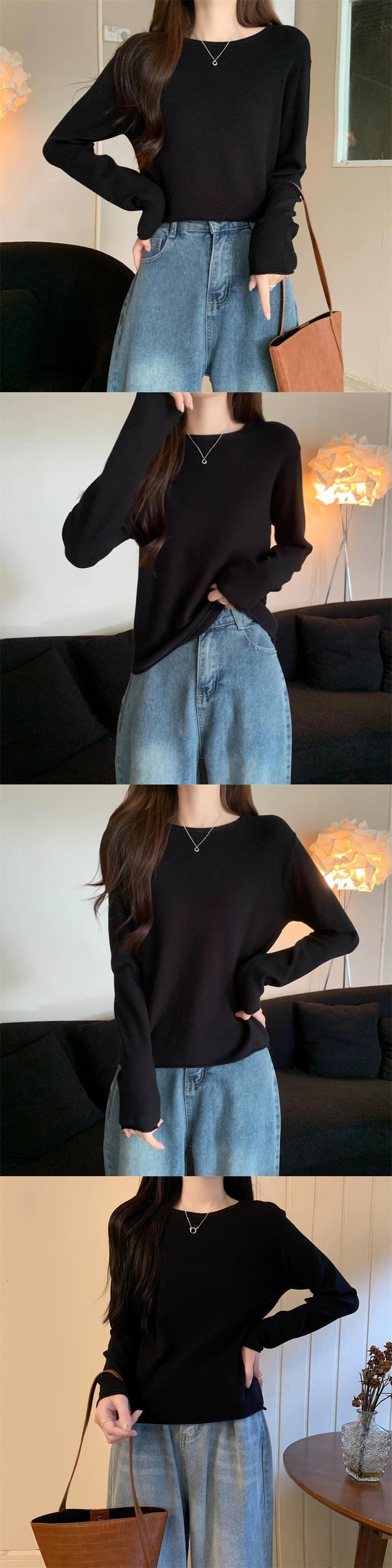 秋冬の白いショートインナーニットボトムセーターレディース、ファッショナブルなカーリング、スリムフィット、万能ラウンドネック長袖セーター ロング ホワイト オータム 秋物 ウィンター 冬物 Oネック 7460048809969480 | framboise21
