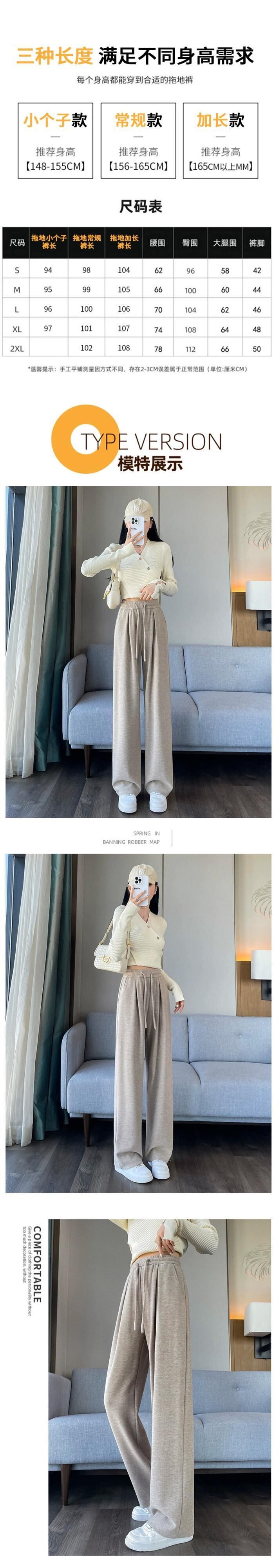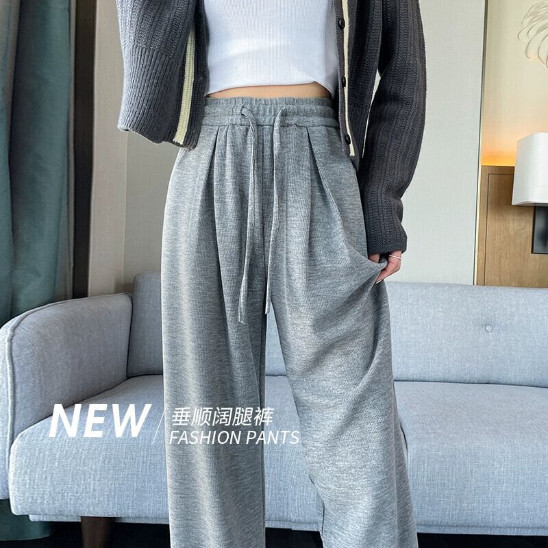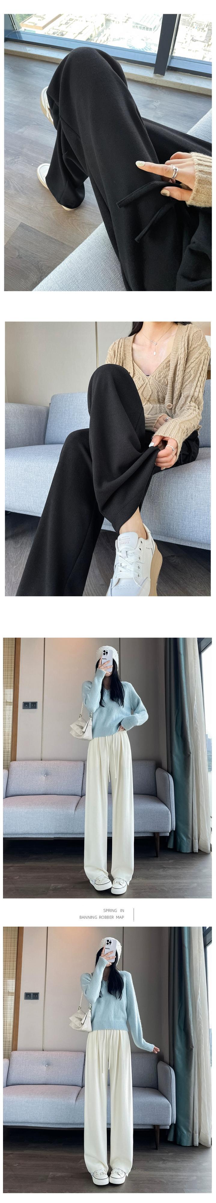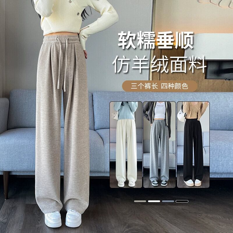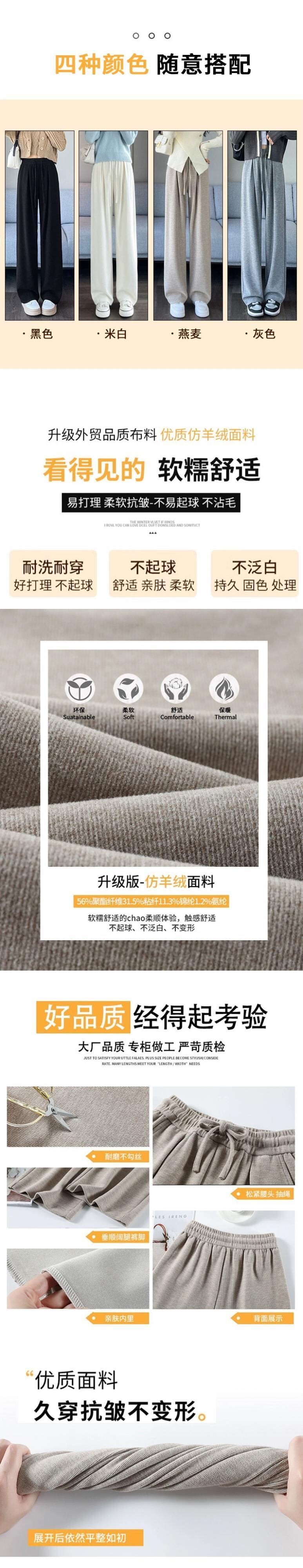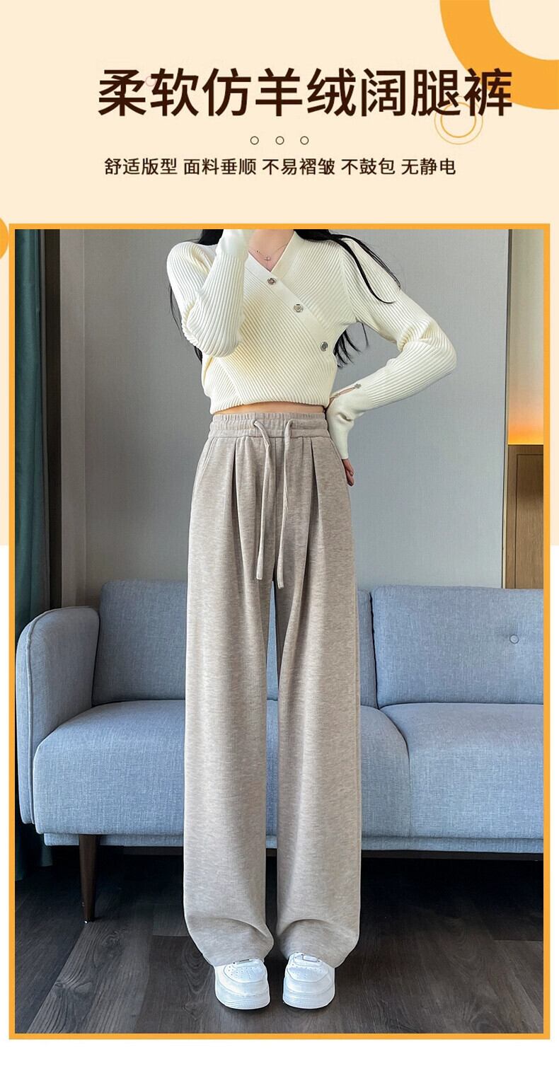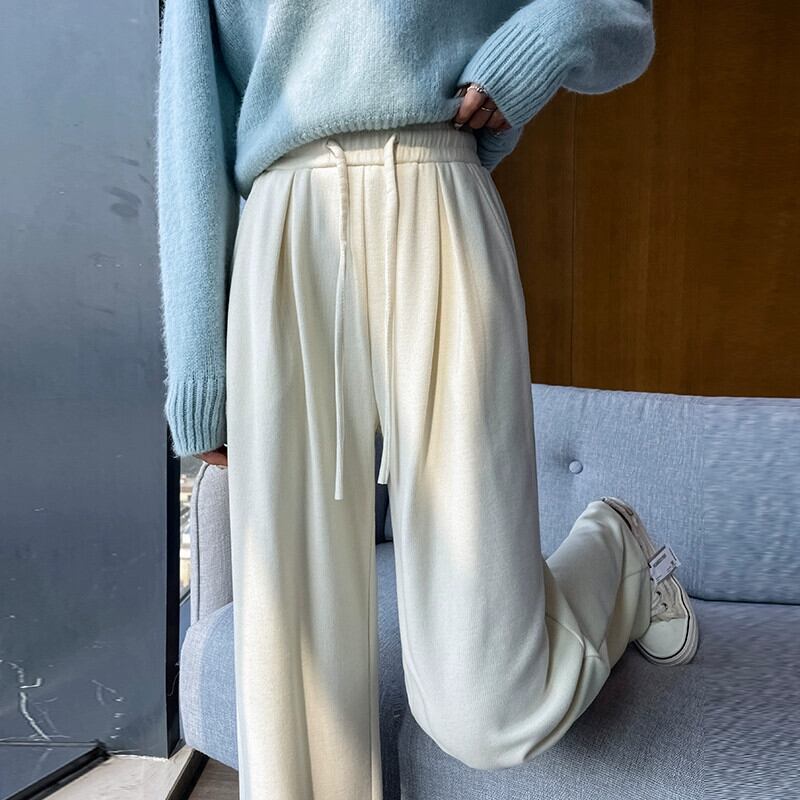 秋冬のイミテーションカシミアオートミールワイドレッグパンツレディース、ソフトでワックス状のニットフロアレングスパンツ、伸縮性ウエスト、カジュアルストレートパンツ エラスティック オータム 秋物 ウィンター 冬物 7460049380139614 | framboise21