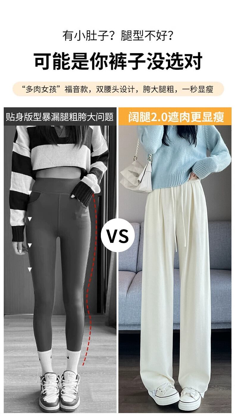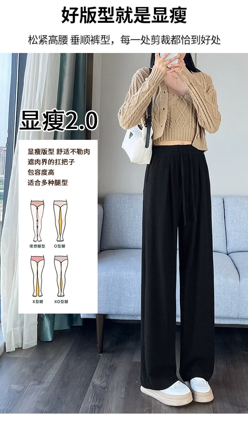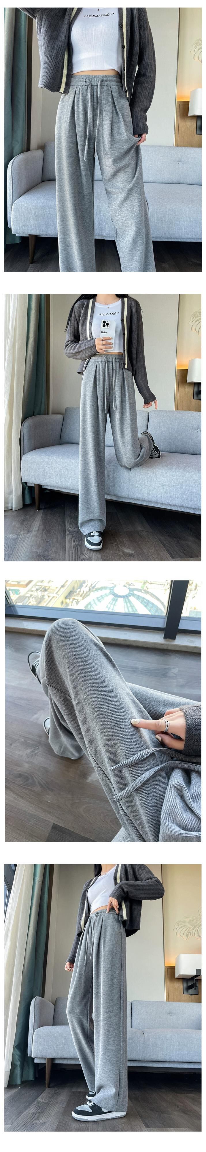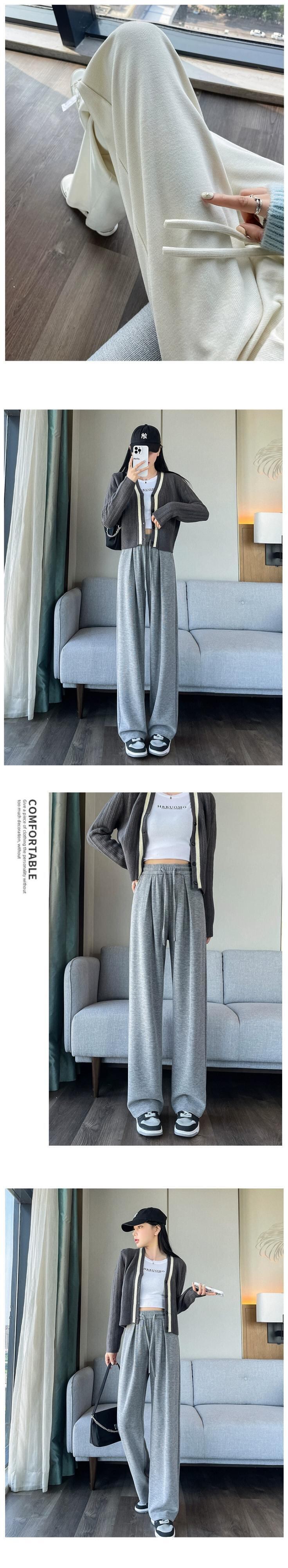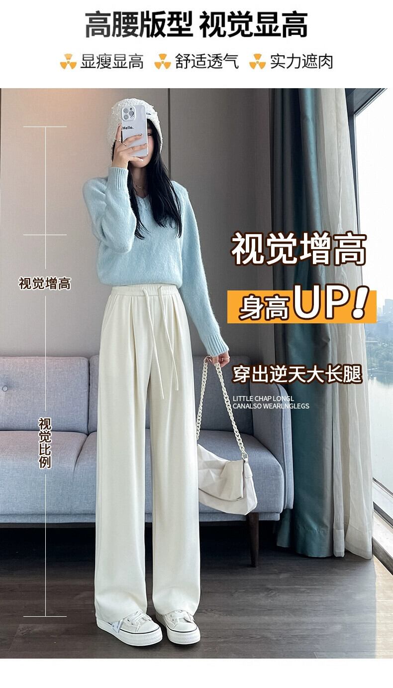 秋冬のイミテーションカシミアオートミールワイドレッグパンツレディース、ソフトでワックス状のニットフロアレングスパンツ、伸縮性ウエスト、カジュアルストレートパンツ エラスティック オータム 秋物 ウィンター 冬物 7460049380139614 | framboise21