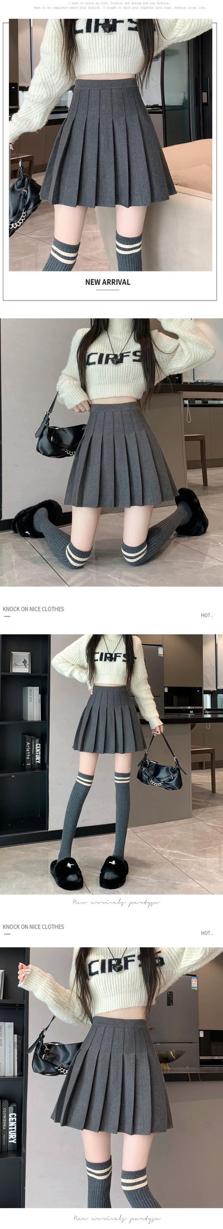 肥厚ウールスカート女性の秋と冬のグレーjkハイウエストプリーツスカート小人ハイウエスト痩身Aラインショートスカート オータム 秋物 ウィンター 冬物 7460094921266946 | framboise21