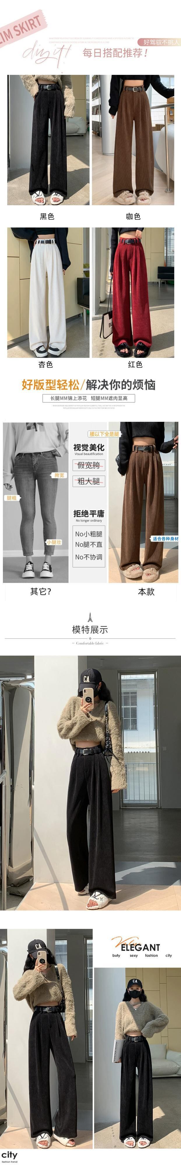 白い狭いシェニールワイドレッグパンツの女性の秋と冬のハイウエストカジュアルベルベット肥厚コーデュロイパンツ ホワイト オータム 秋物 ウィンター 冬物 7460047198548884 | framboise21
