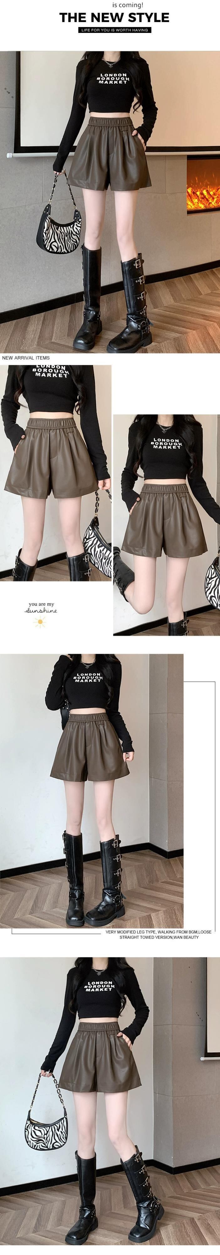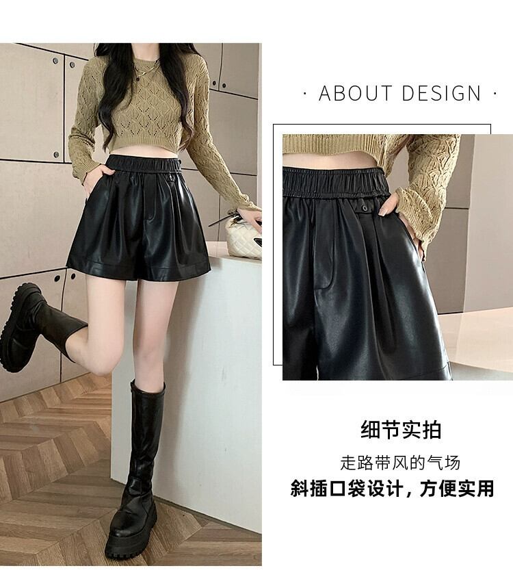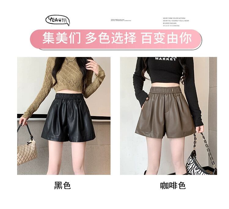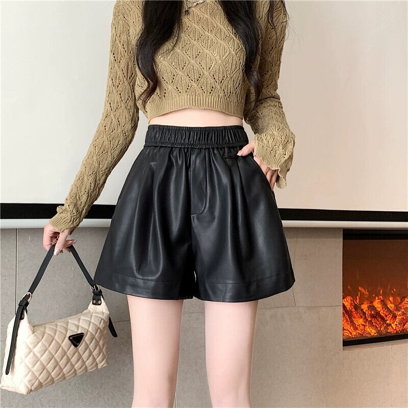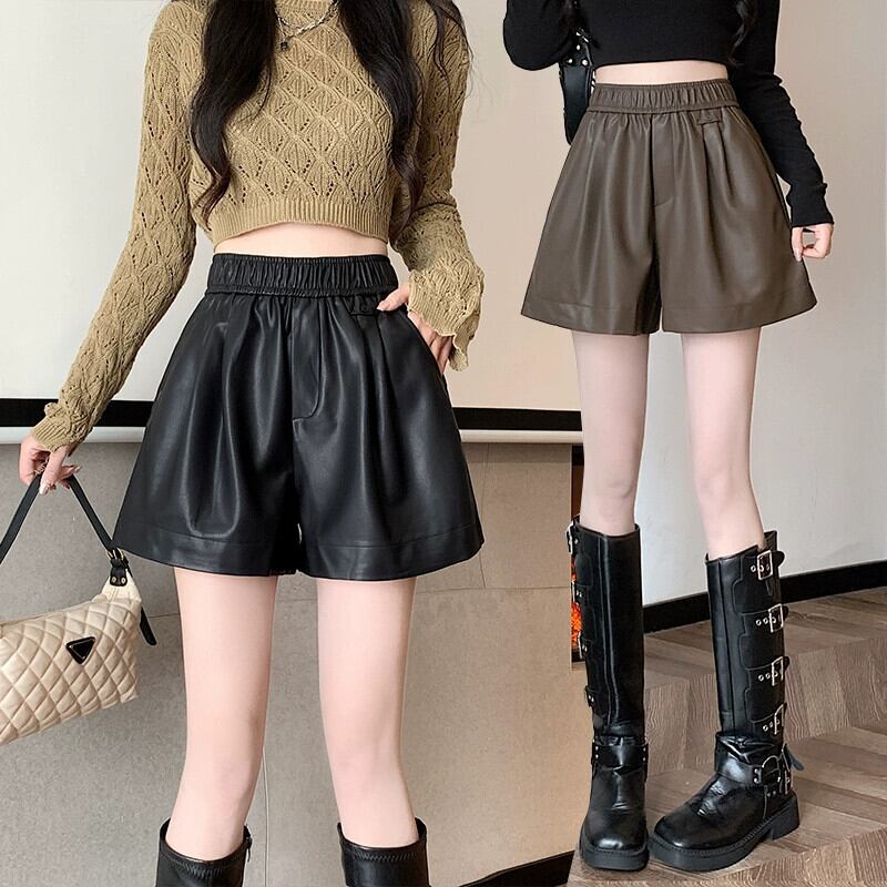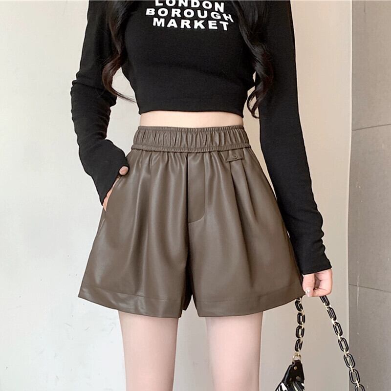 ブラウン pu レザーパンツショートパンツ女性の秋と冬のカジュアルワイドレッグパンツスリムで多用途なアウターウェア弾性ハイウエスト A ラインブーツパンツ エラスティック 伸縮 オータム 秋物 ウィンター 冬物 ショーツ ブルマー Aライン 7460010535049424 | framboise21