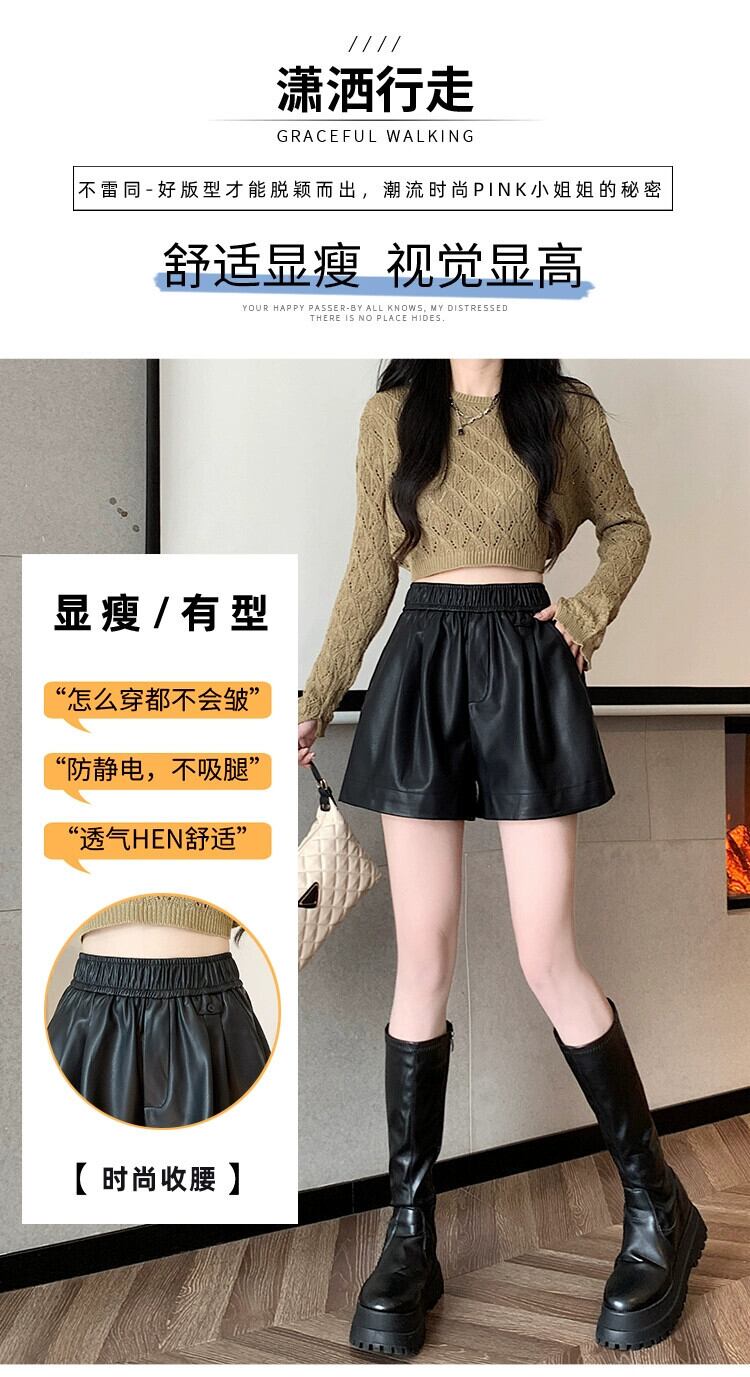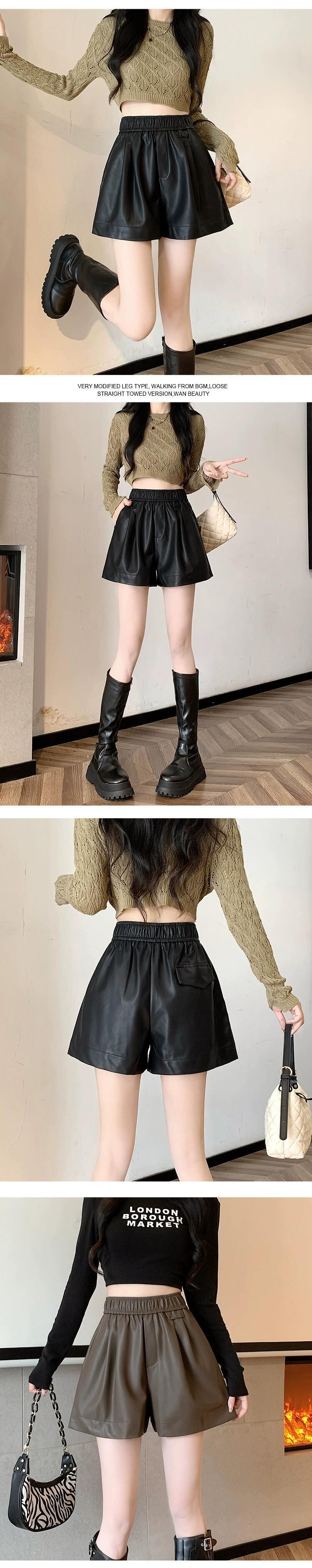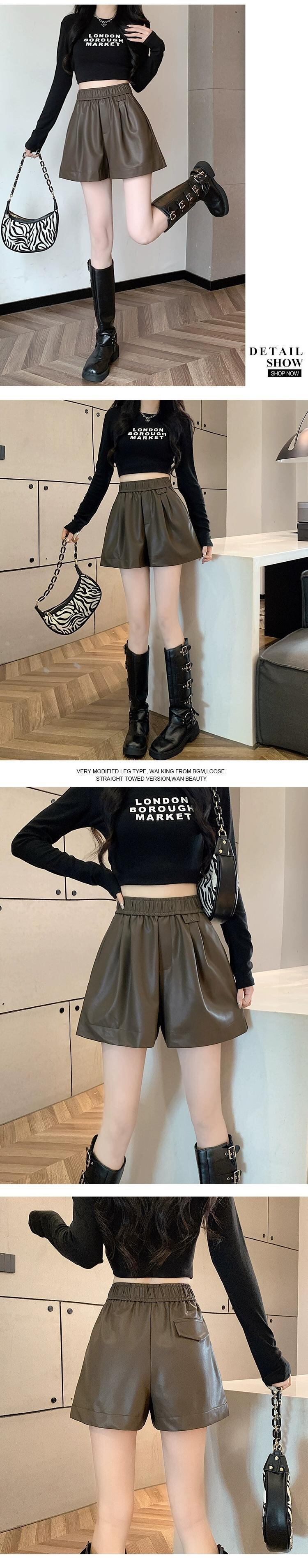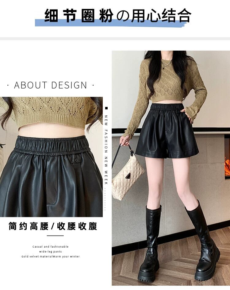 ブラウン pu レザーパンツショートパンツ女性の秋と冬のカジュアルワイドレッグパンツスリムで多用途なアウターウェア弾性ハイウエスト A ラインブーツパンツ エラスティック 伸縮 オータム 秋物 ウィンター 冬物 ショーツ ブルマー Aライン 7460010535049424 | framboise21