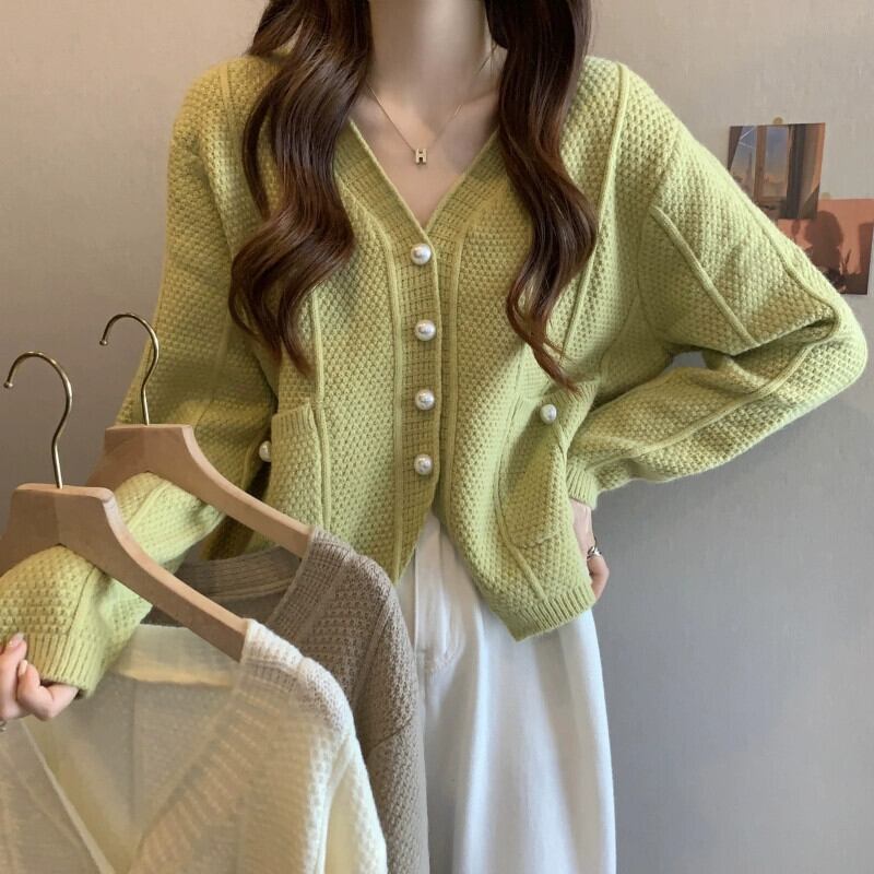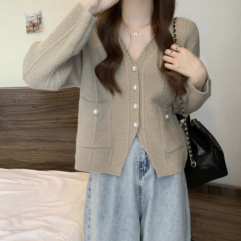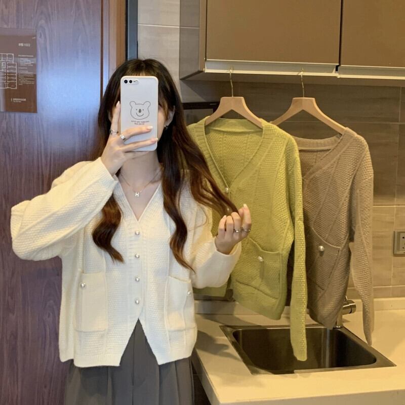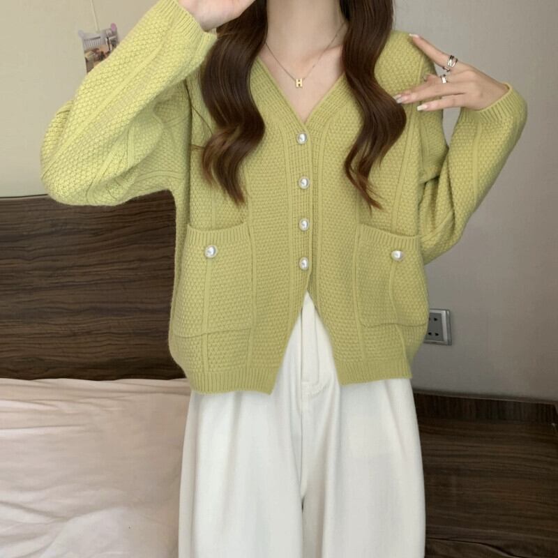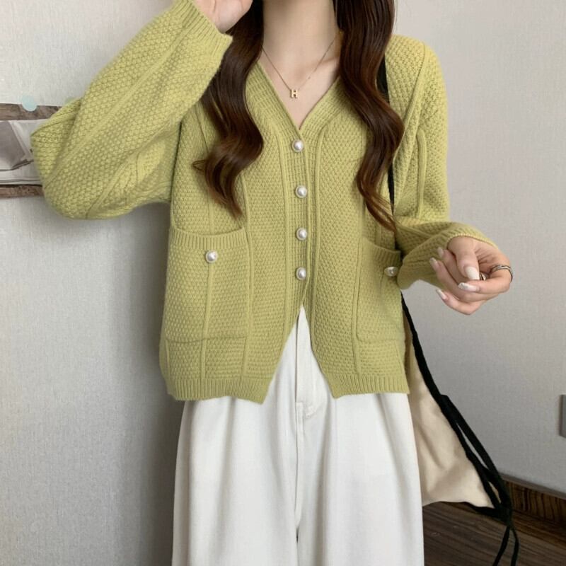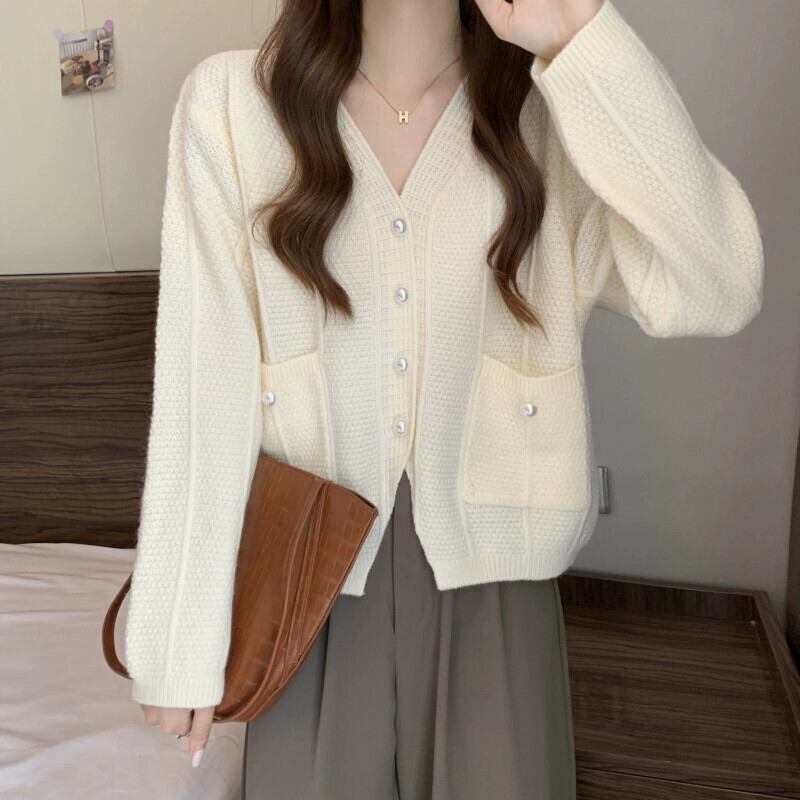 ショート V ネックセータージャケット女性 2023 新しい秋と冬のルーズアウタースリミングスリット長袖ニットカーディガン ロング オータム 秋物 ウィンター 冬物 Vネック 7460071902531794 | framboise21