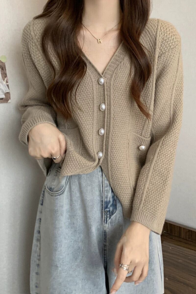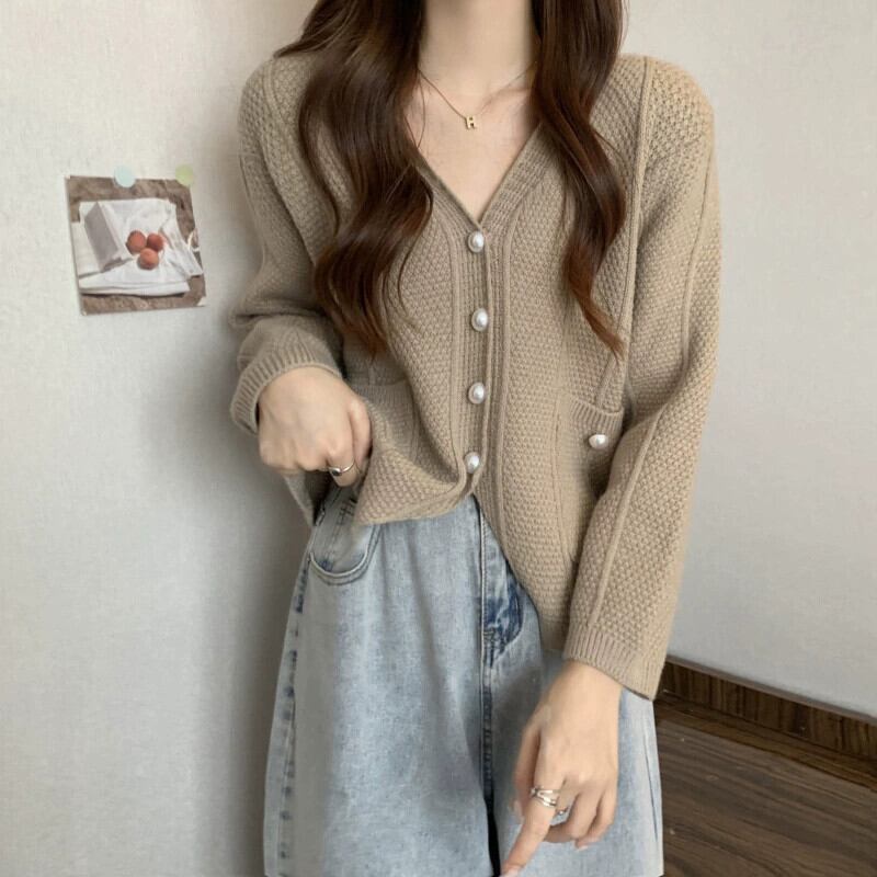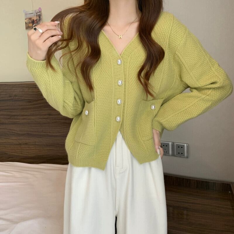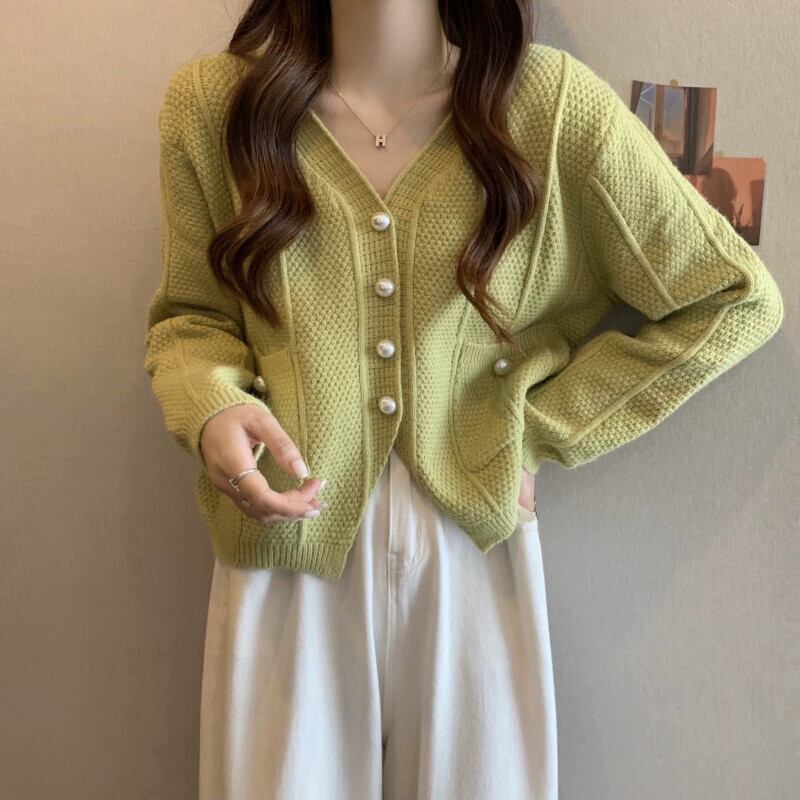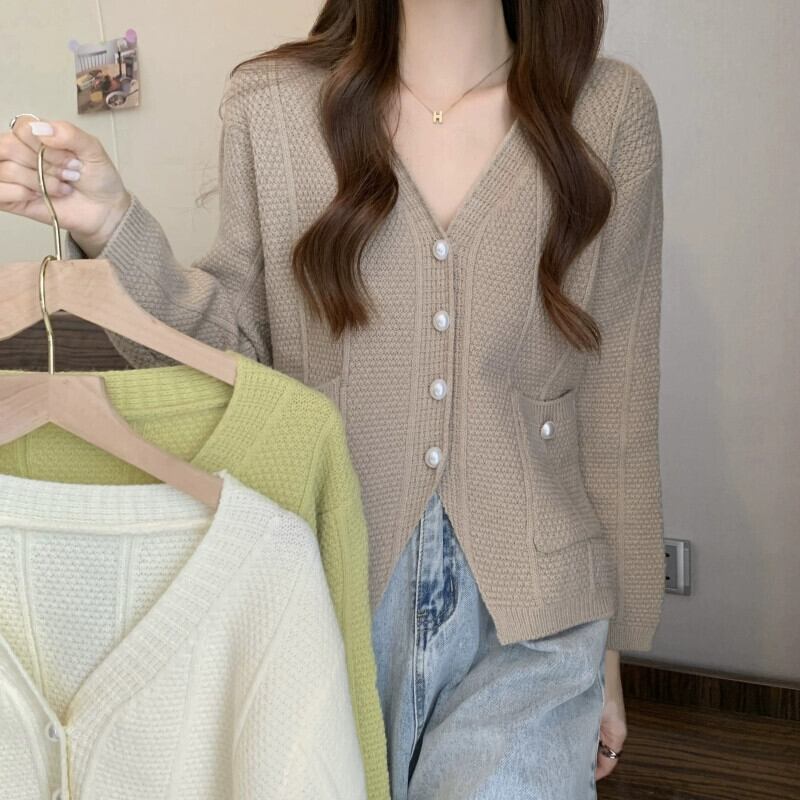 ショート V ネックセータージャケット女性 2023 新しい秋と冬のルーズアウタースリミングスリット長袖ニットカーディガン ロング オータム 秋物 ウィンター 冬物 Vネック 7460071902531794 | framboise21