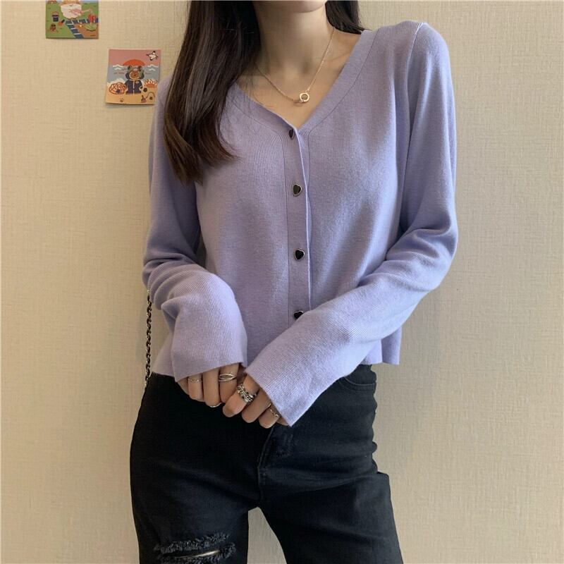 V ネックニットカーディガンジャケット女性秋冬ファッショナブルでルーズなアウターウェア痩身ショートショート長袖セーター ロング オータム 秋物 ウィンター 冬物 Vネック 7460061534043288 | framboise21