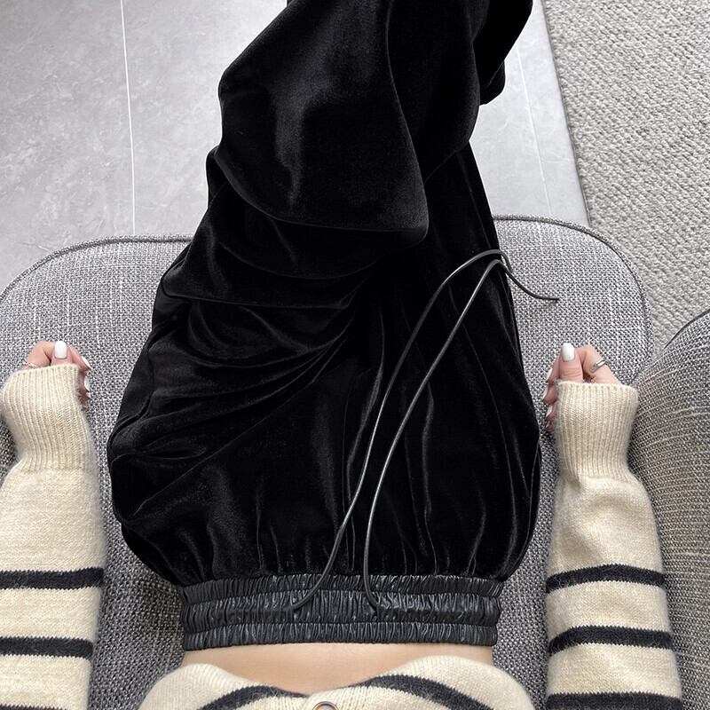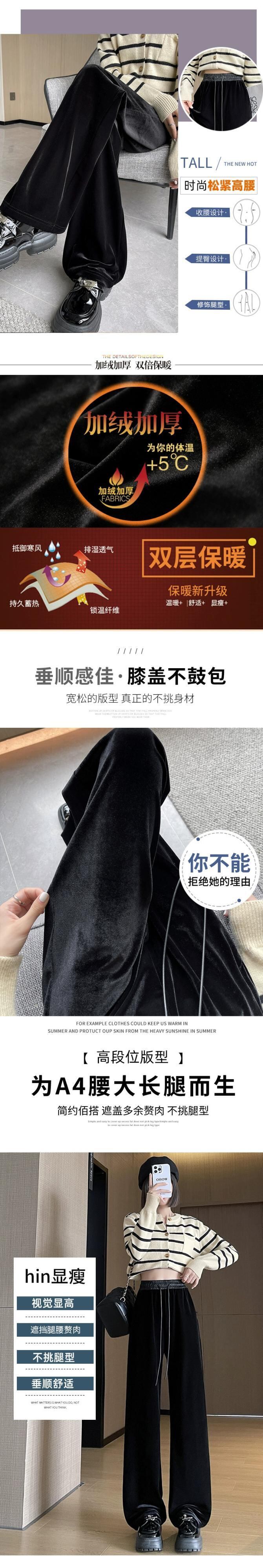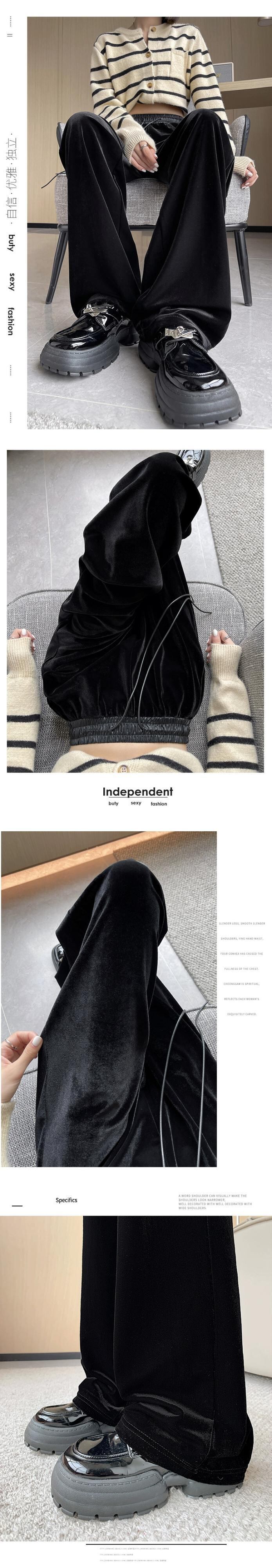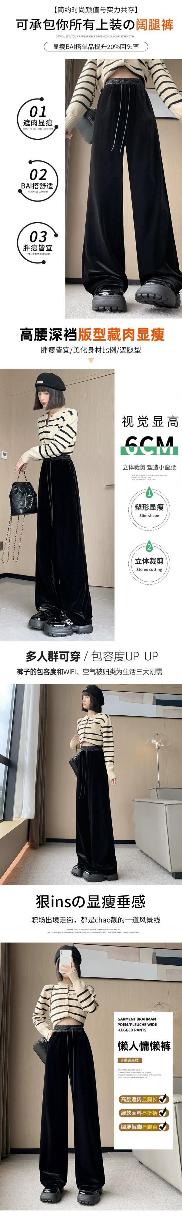 秋冬のナローゴールドベルベットワイドレッグパンツレディース、厚みのあるベルベットパンツ、ハイウエストドレープ、ストレートレッグフロアレングスカジュアルパンツレディース オータム 秋物 ウィンター 冬物 7460019637550765 | framboise21
