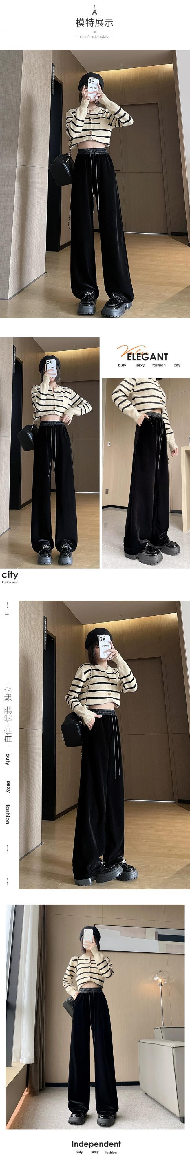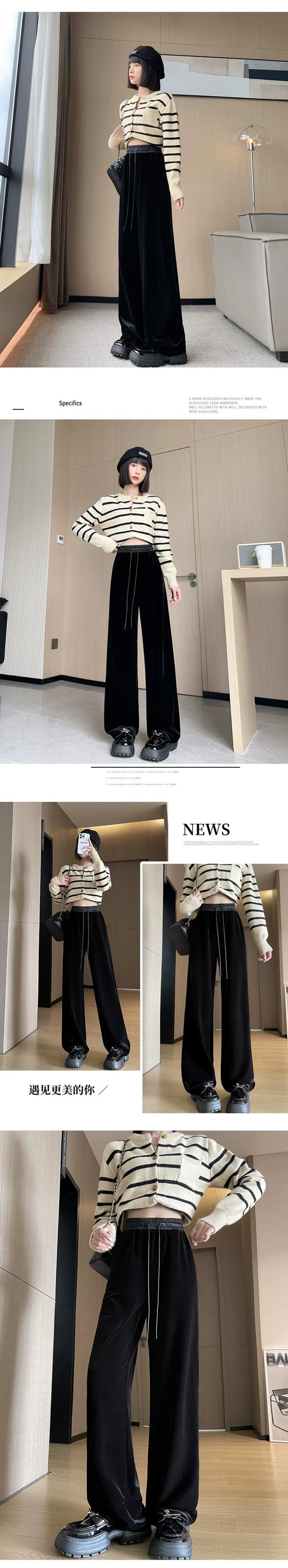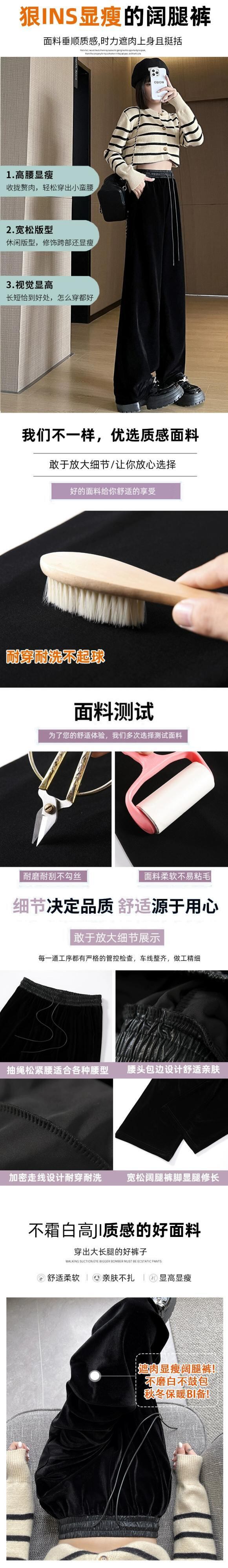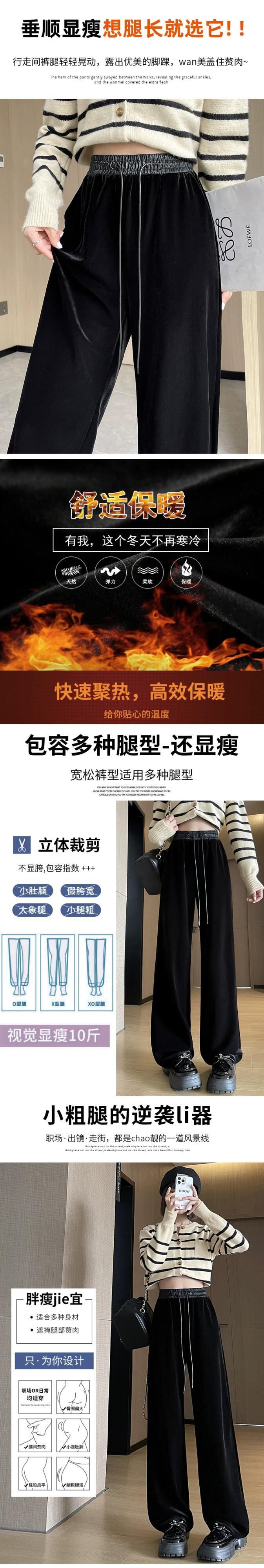 秋冬のナローゴールドベルベットワイドレッグパンツレディース、厚みのあるベルベットパンツ、ハイウエストドレープ、ストレートレッグフロアレングスカジュアルパンツレディース オータム 秋物 ウィンター 冬物 7460019637550765 | framboise21