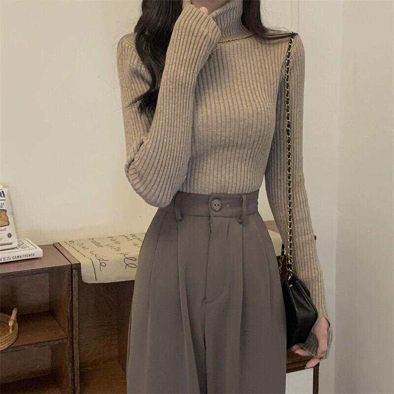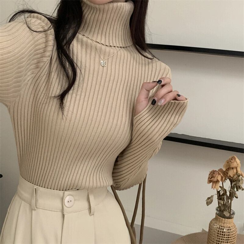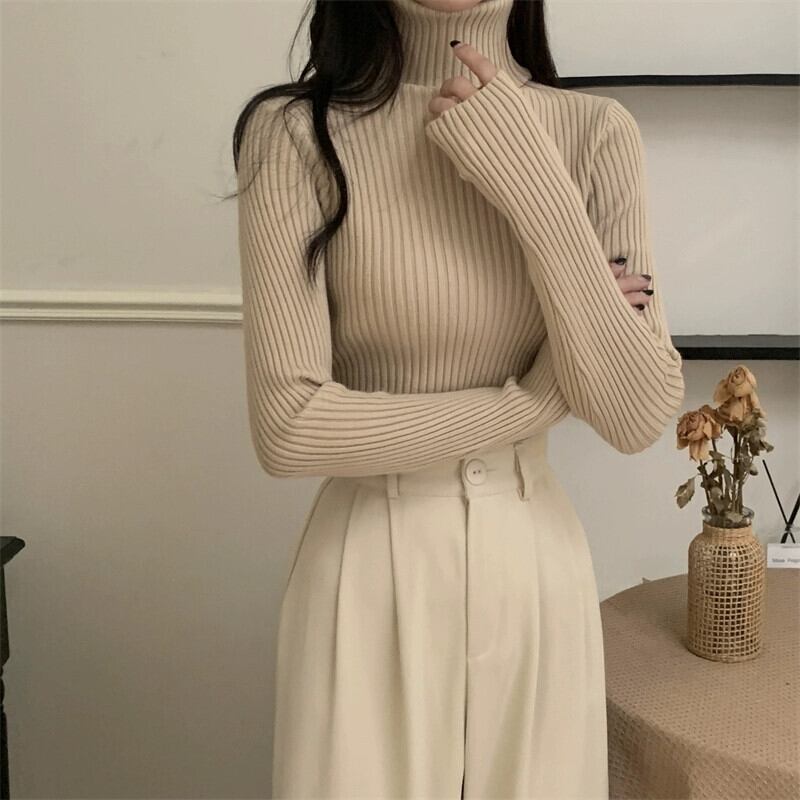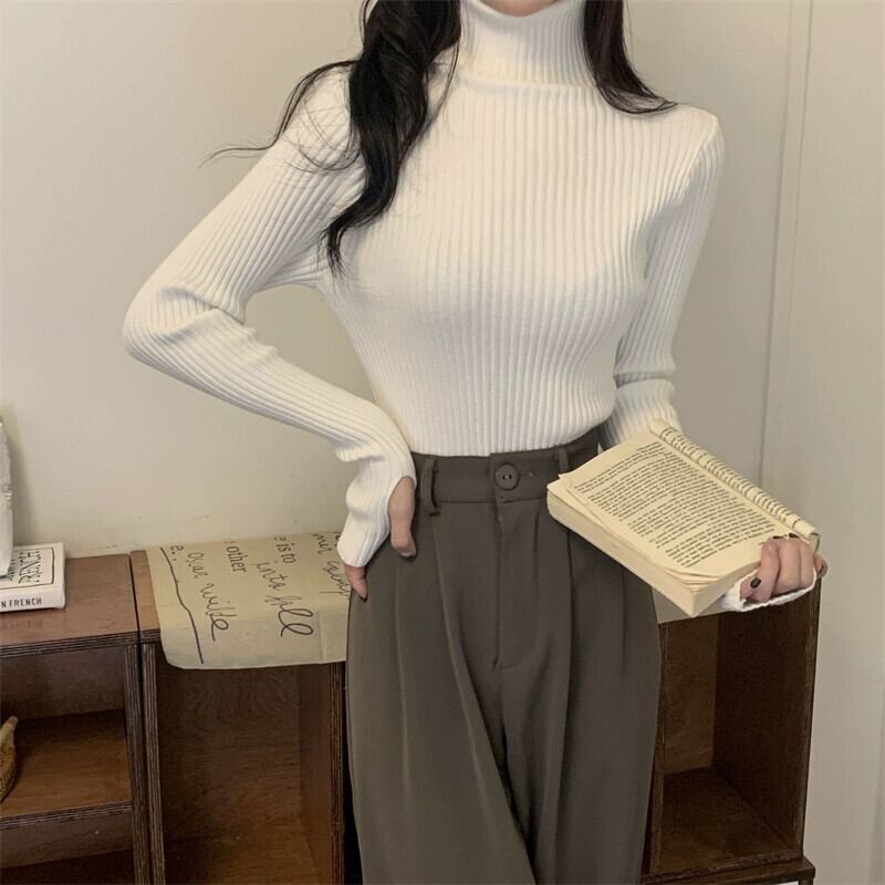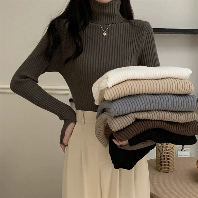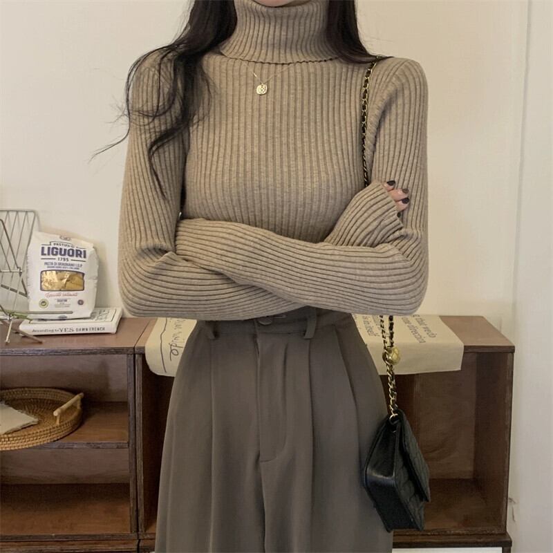 厚みのあるタートルネックボトミングシャツ 2023 新しい女性の秋と冬のファッショナブルなスタイルのインナースリムショート長袖ニットセーター ロング オータム 秋物 ウィンター 冬物 7460069512502805 | framboise21