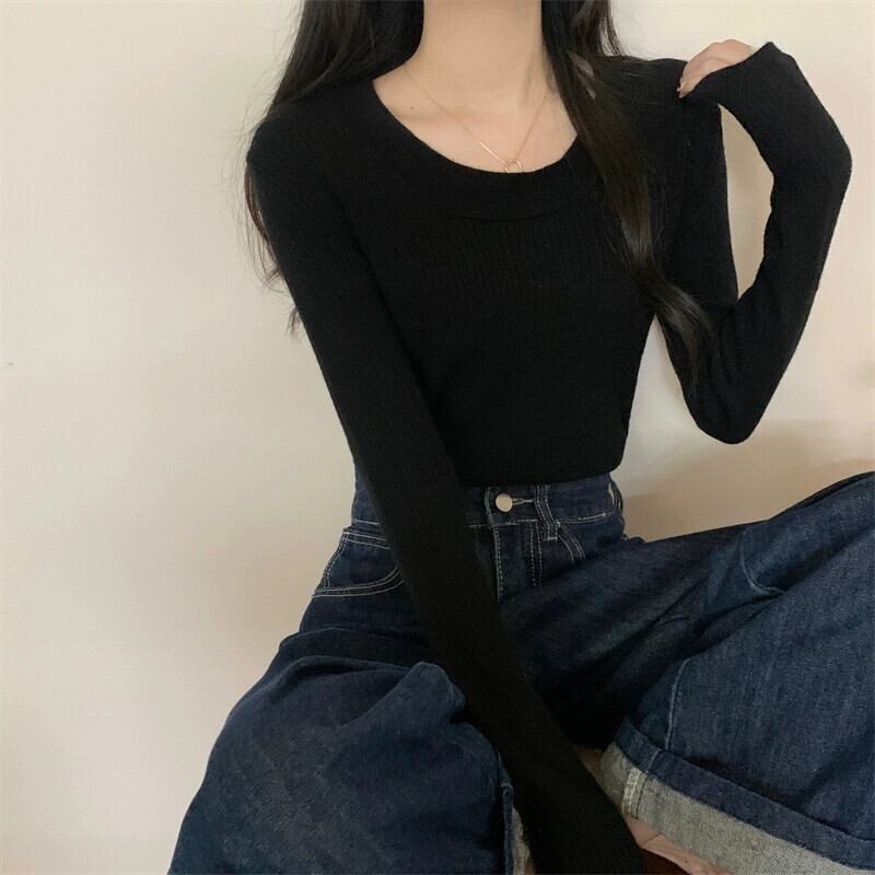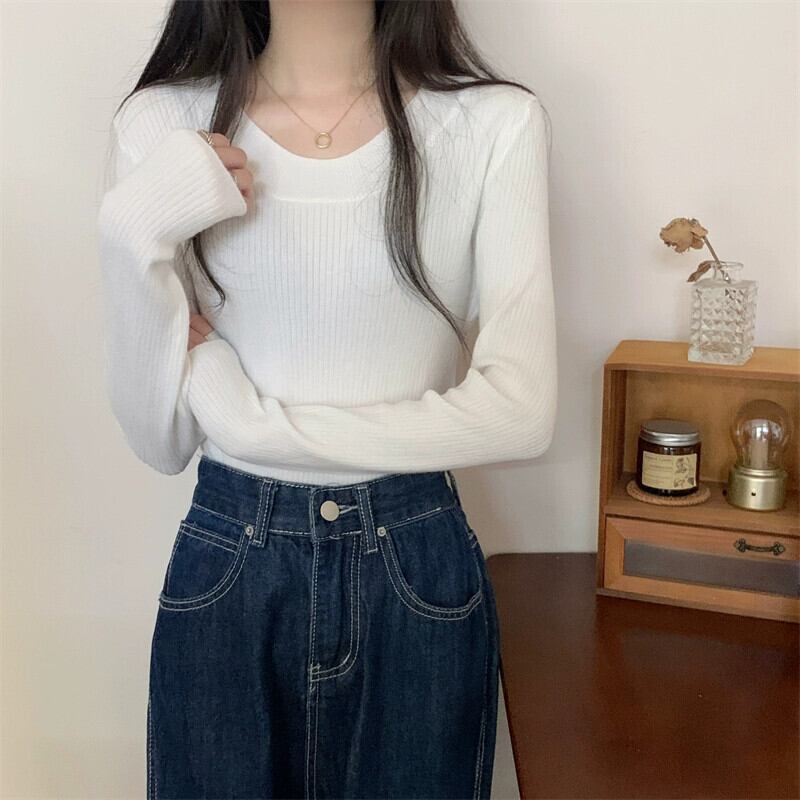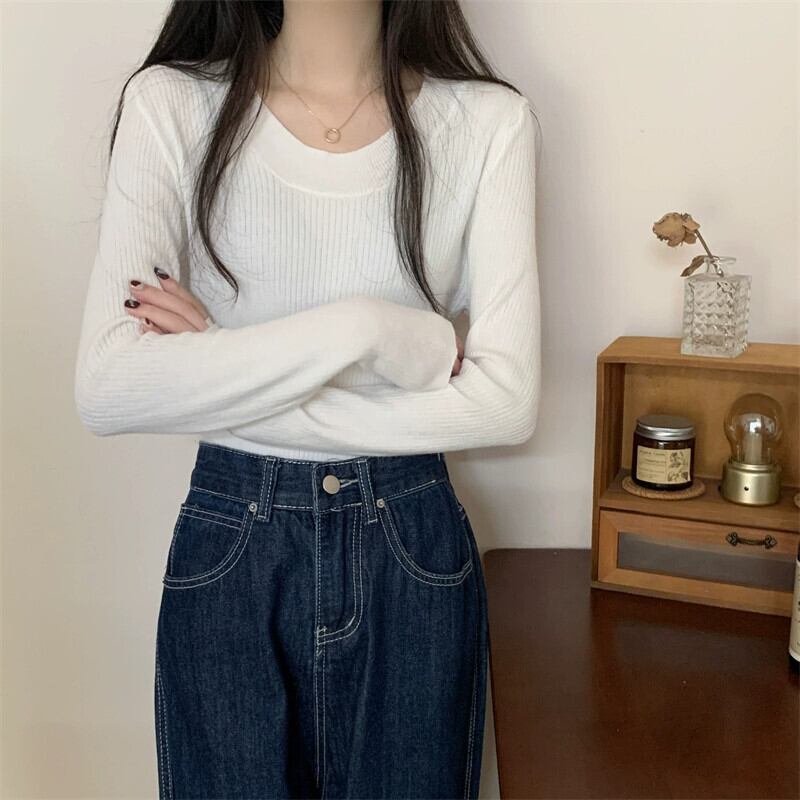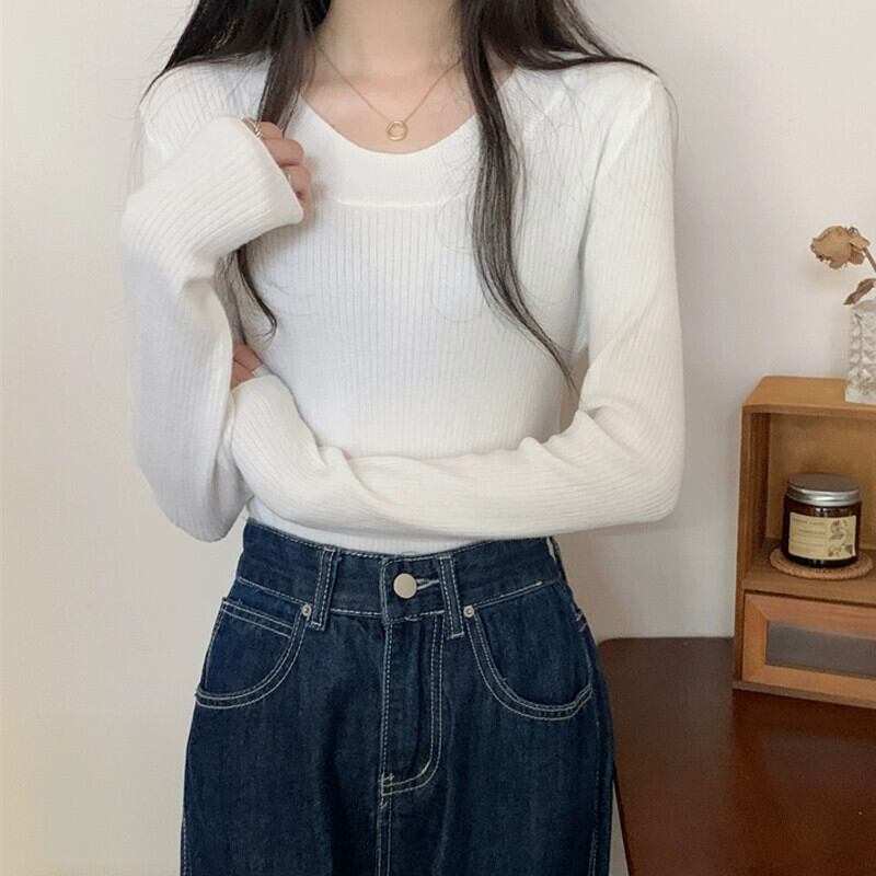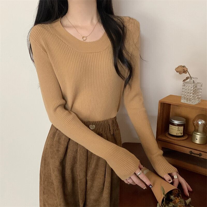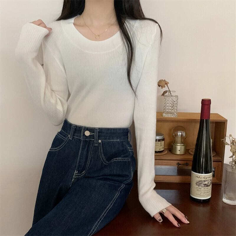 ラウンドネックニットボトムシャツ2023新作レディース秋冬ファッショナブルでファッショナブルなインナースタイル痩身と万能長袖セーター ロング オータム 秋物 ウィンター 冬物 Oネック 7460033047957214 | framboise21