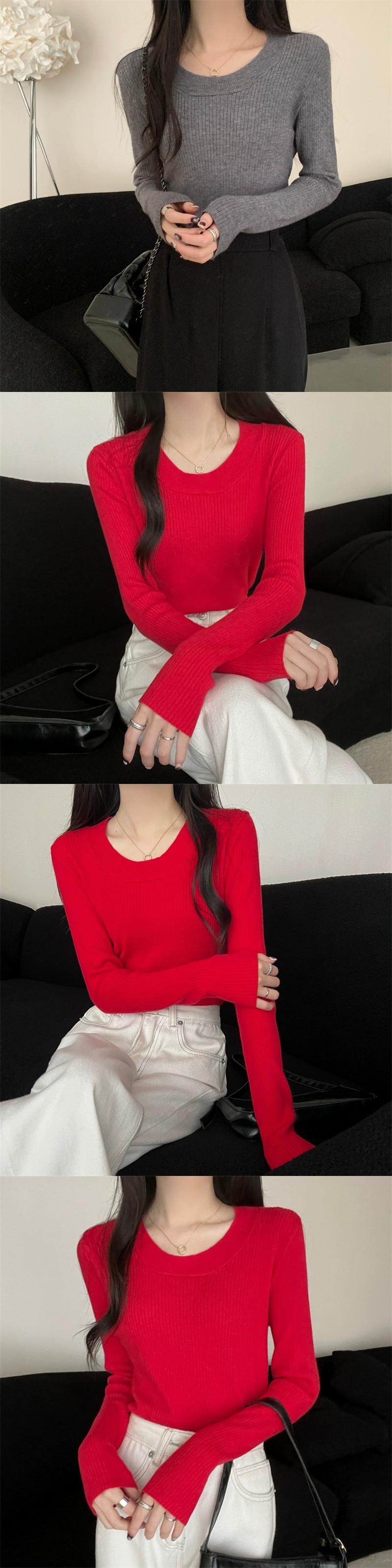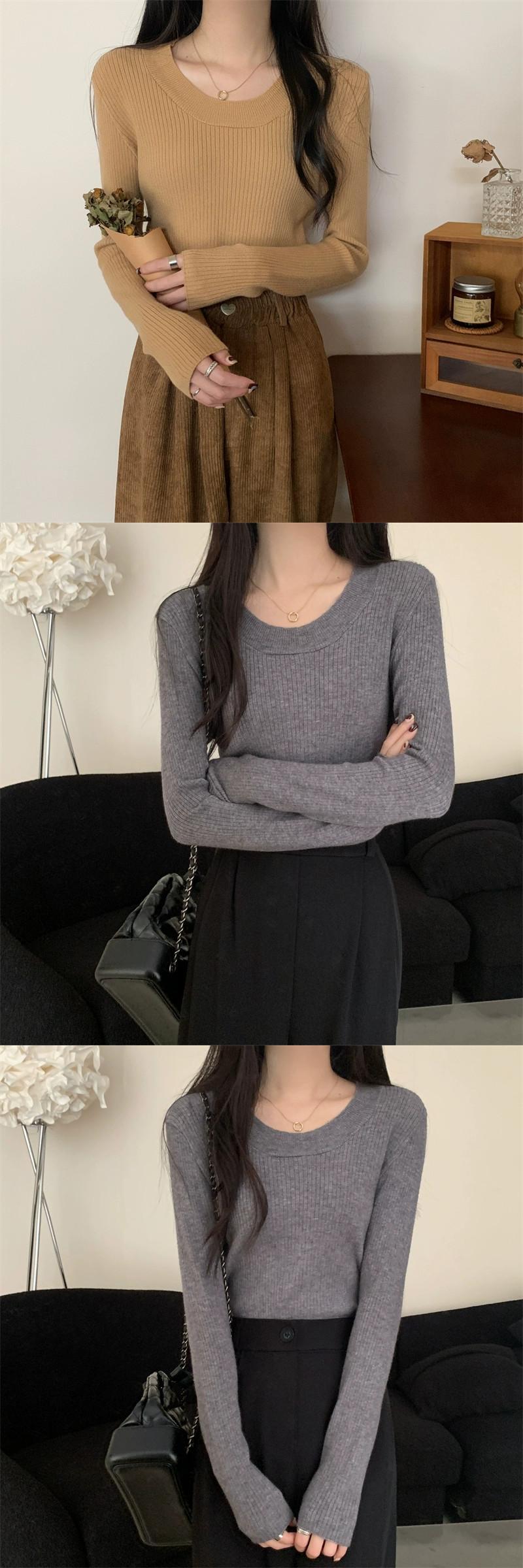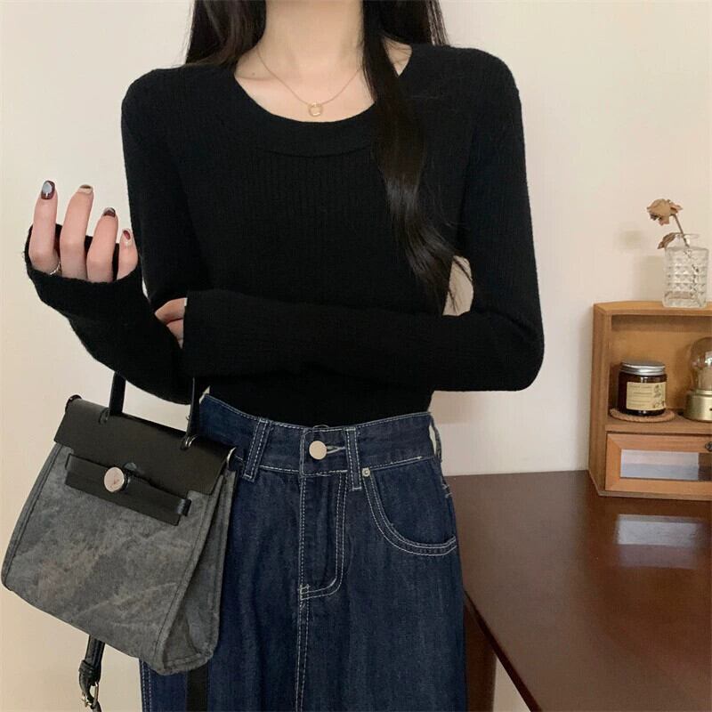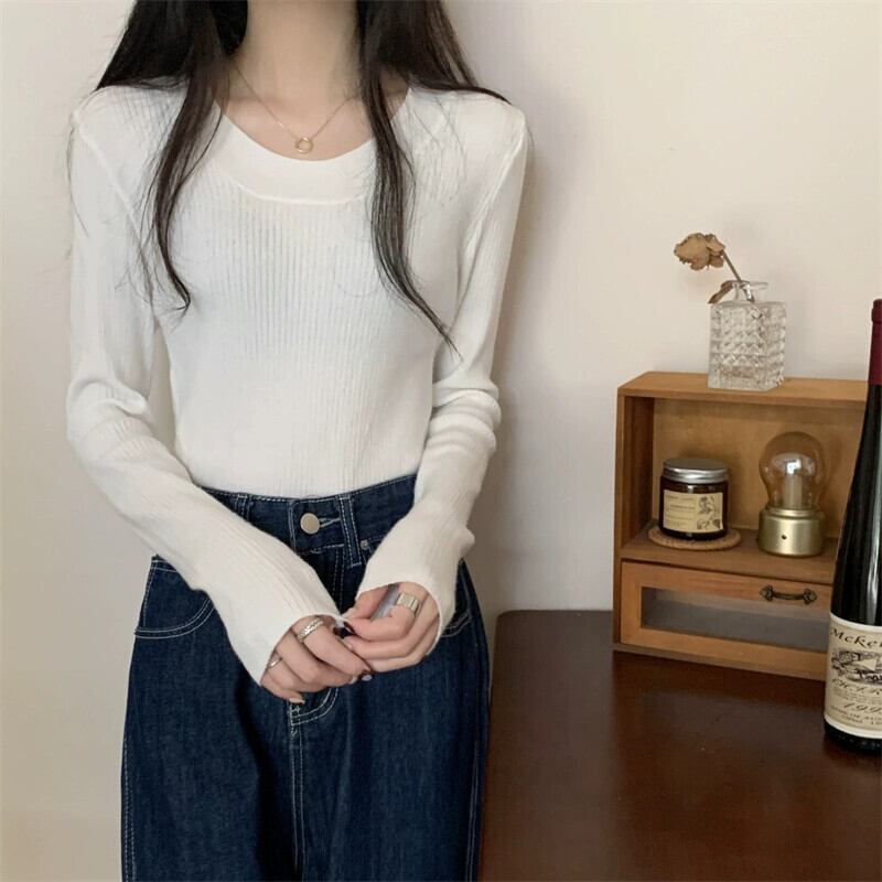 ラウンドネックニットボトムシャツ2023新作レディース秋冬ファッショナブルでファッショナブルなインナースタイル痩身と万能長袖セーター ロング オータム 秋物 ウィンター 冬物 Oネック 7460033047957214 | framboise21